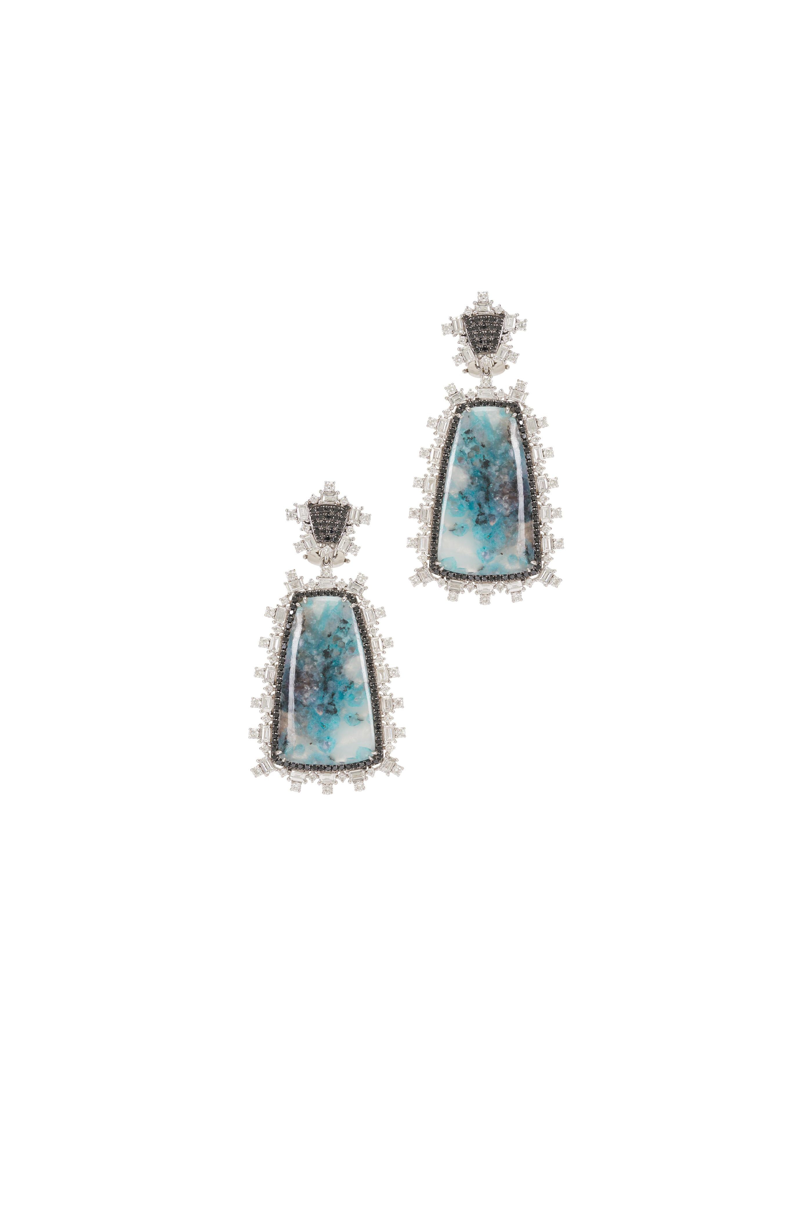 18k White Gold. 33.92 ct Paraiba Slice. 4.46 ct Diamond. 1.16 Black Diamond.