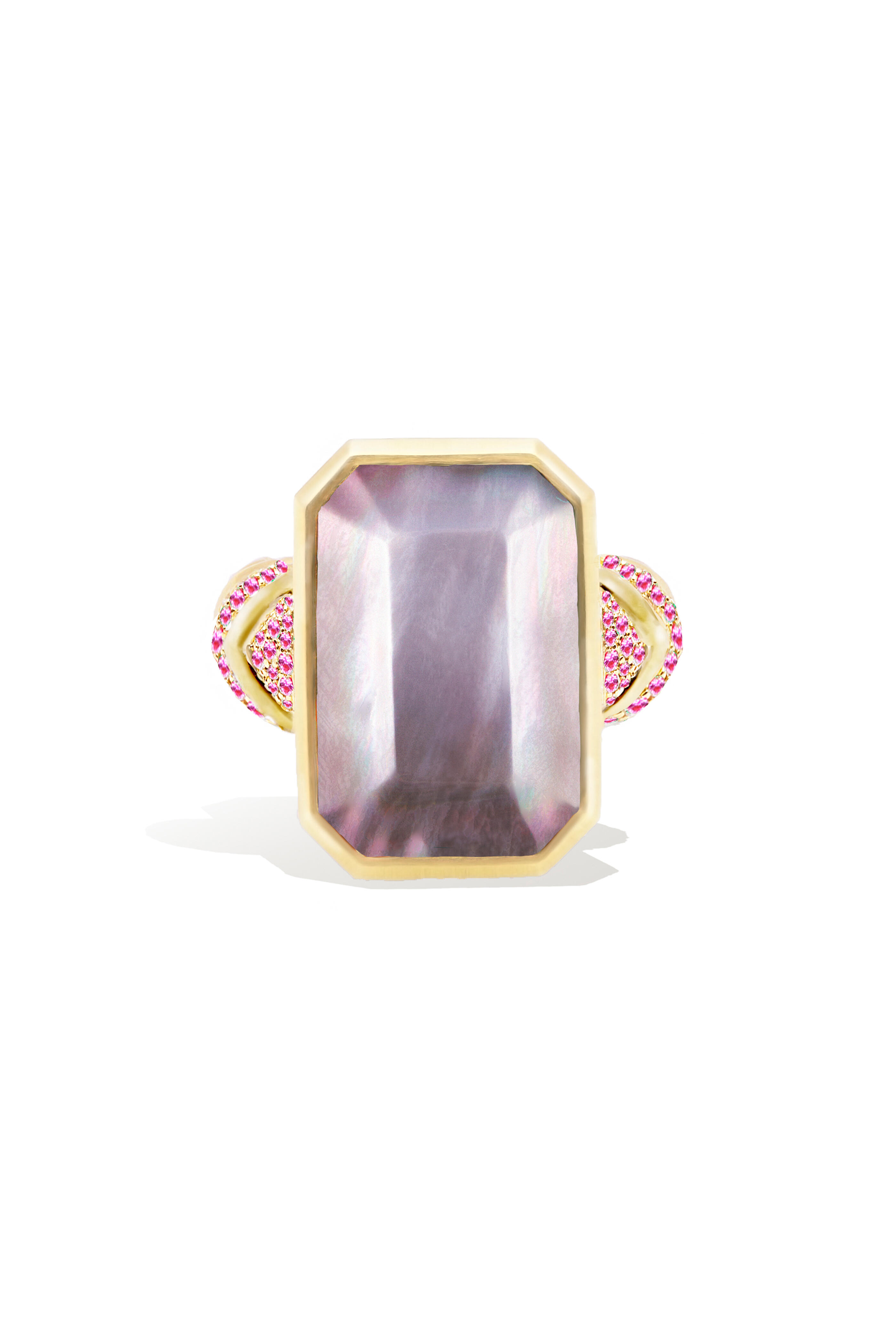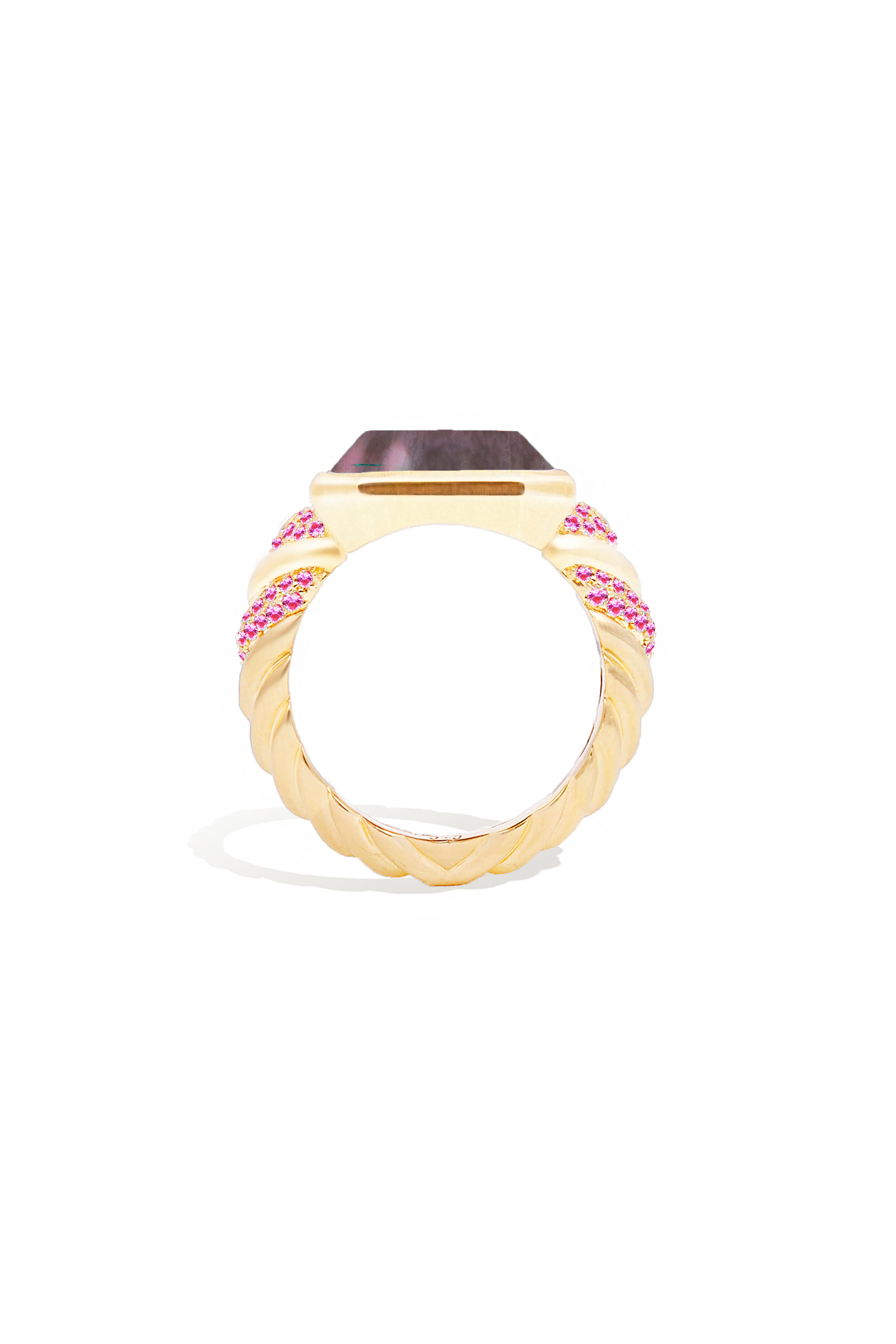 14k Gold. Black Mother of Pearl. Pink Sapphire.
