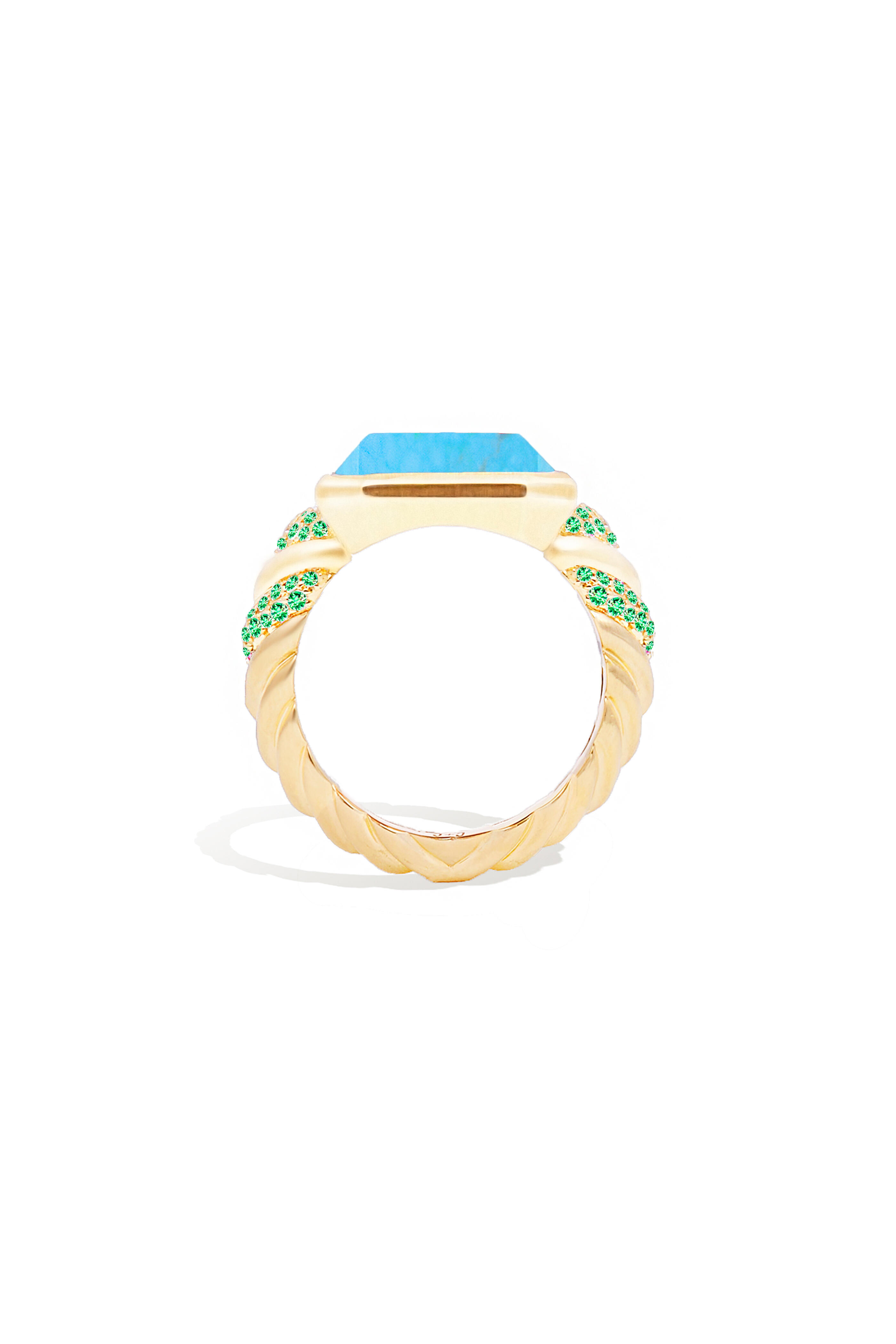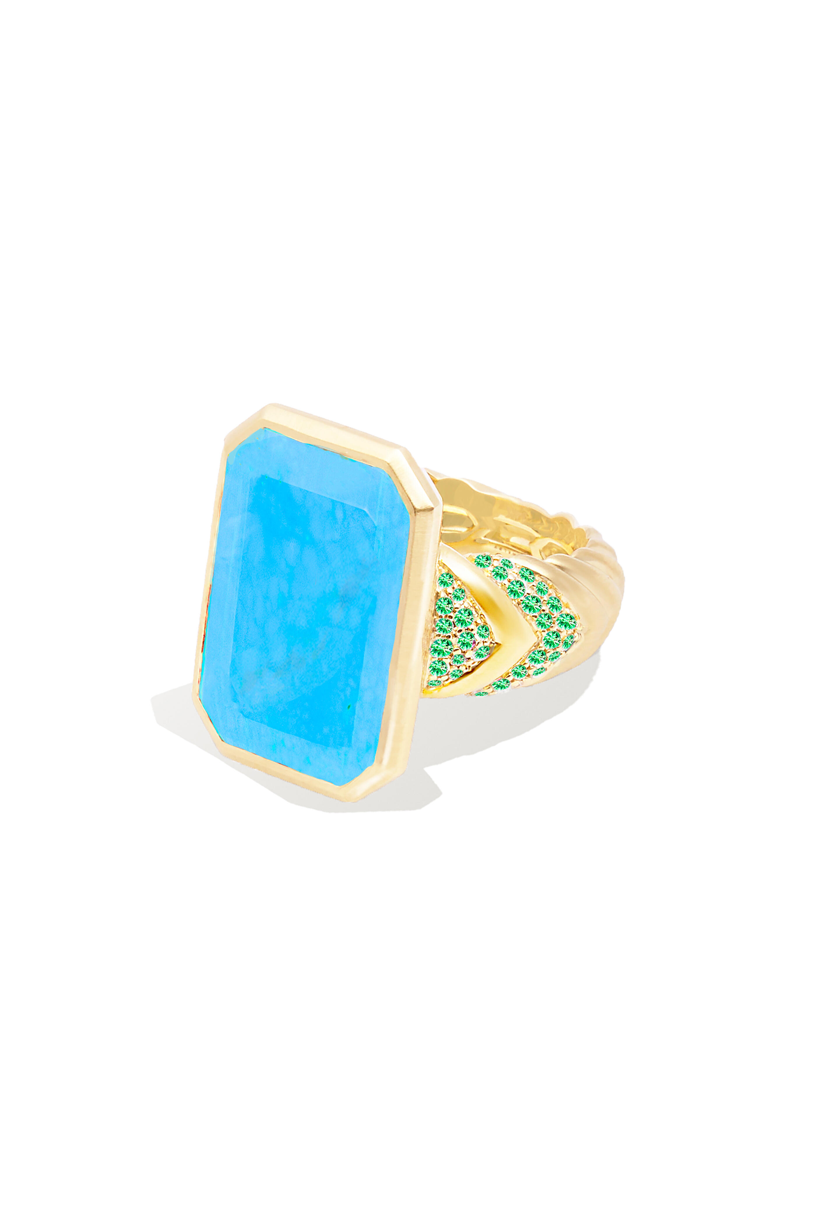 14k Gold Turquoise & Emerald Spark Chevron Ring