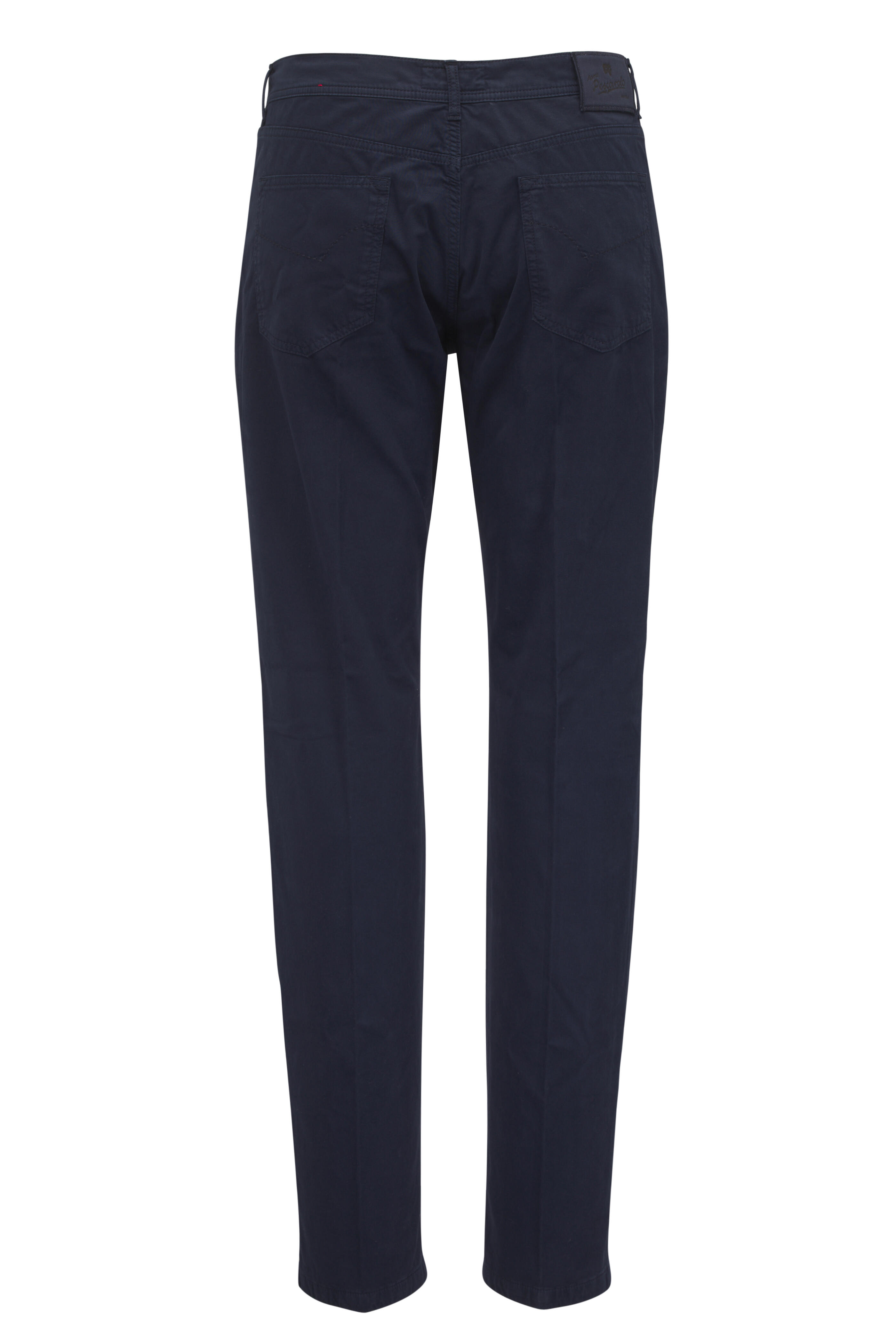Zip fly with button closure. Banded waistband; belt loops. Five-pocket styling. Straight hem. Made in Italy. 98% cotton, 2% elastane. Dry clean.