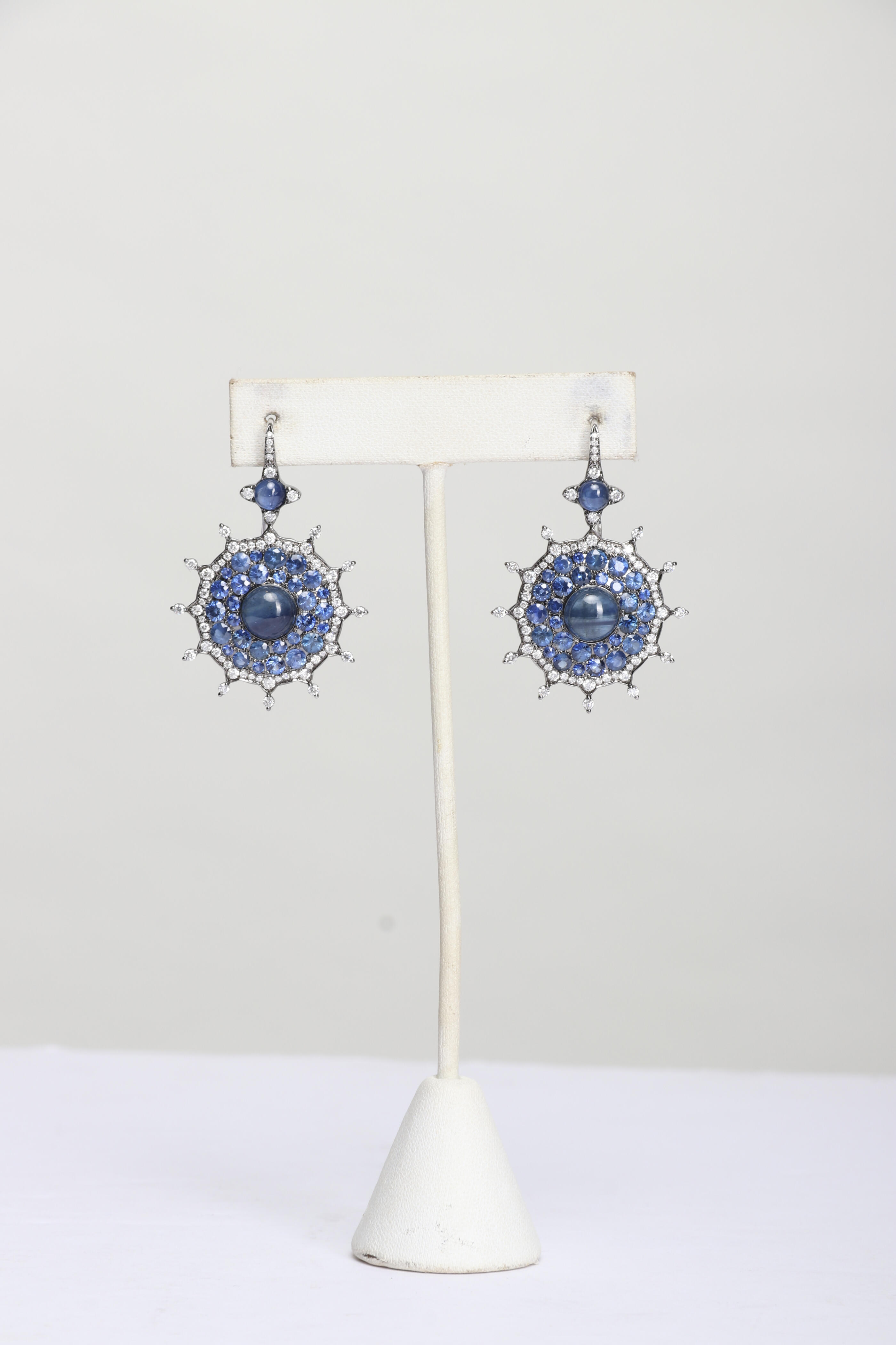 18K White Gold. Grey and White Rhodium. White Diamond = 1.902 CT. Blue Sapphire = 16.294 CT.