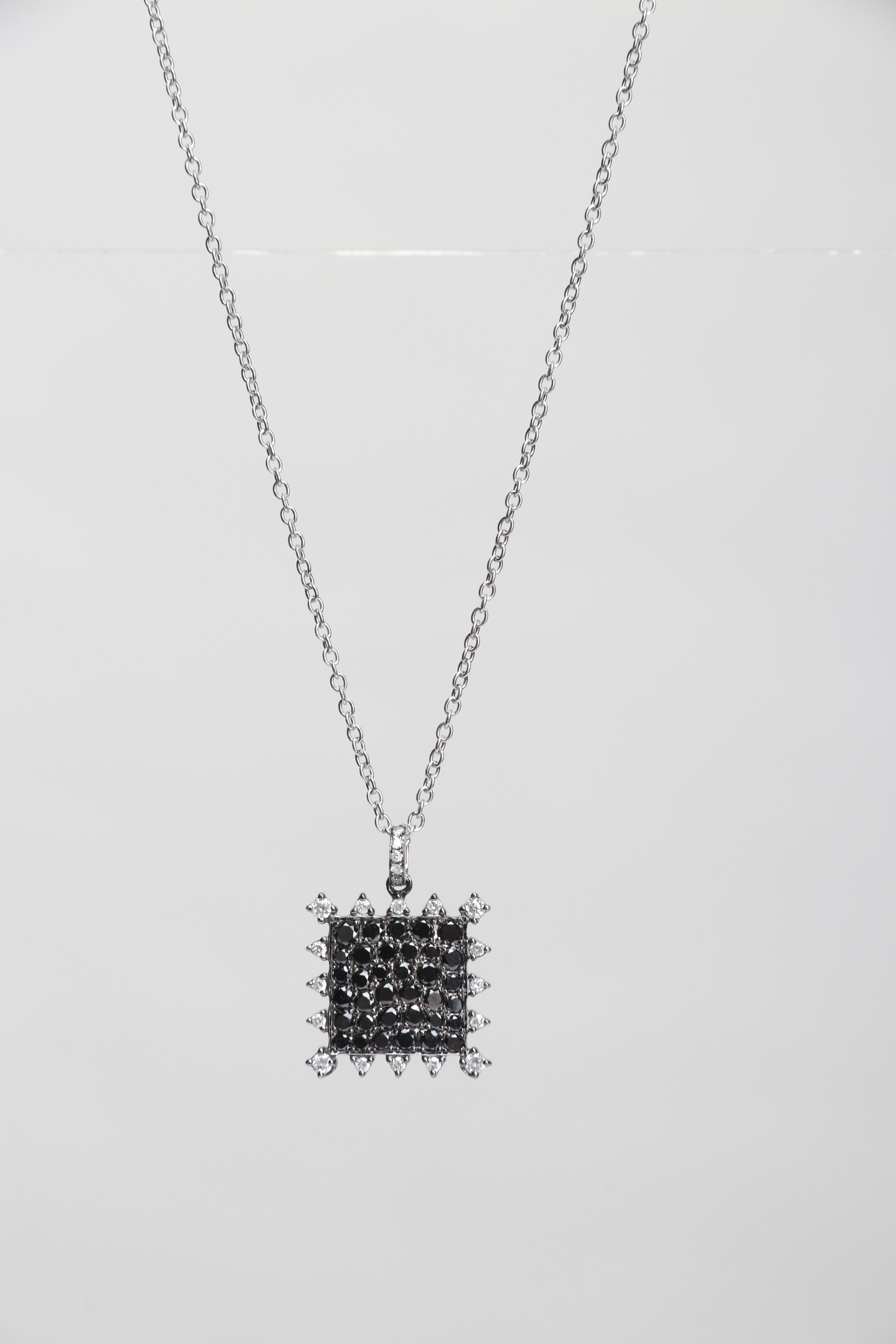 18K White Gold. Grey and White Rhodium. White Diamond = 0.324 CT. Black Diamond = 1.156 CT. 15/17 IN Chain.