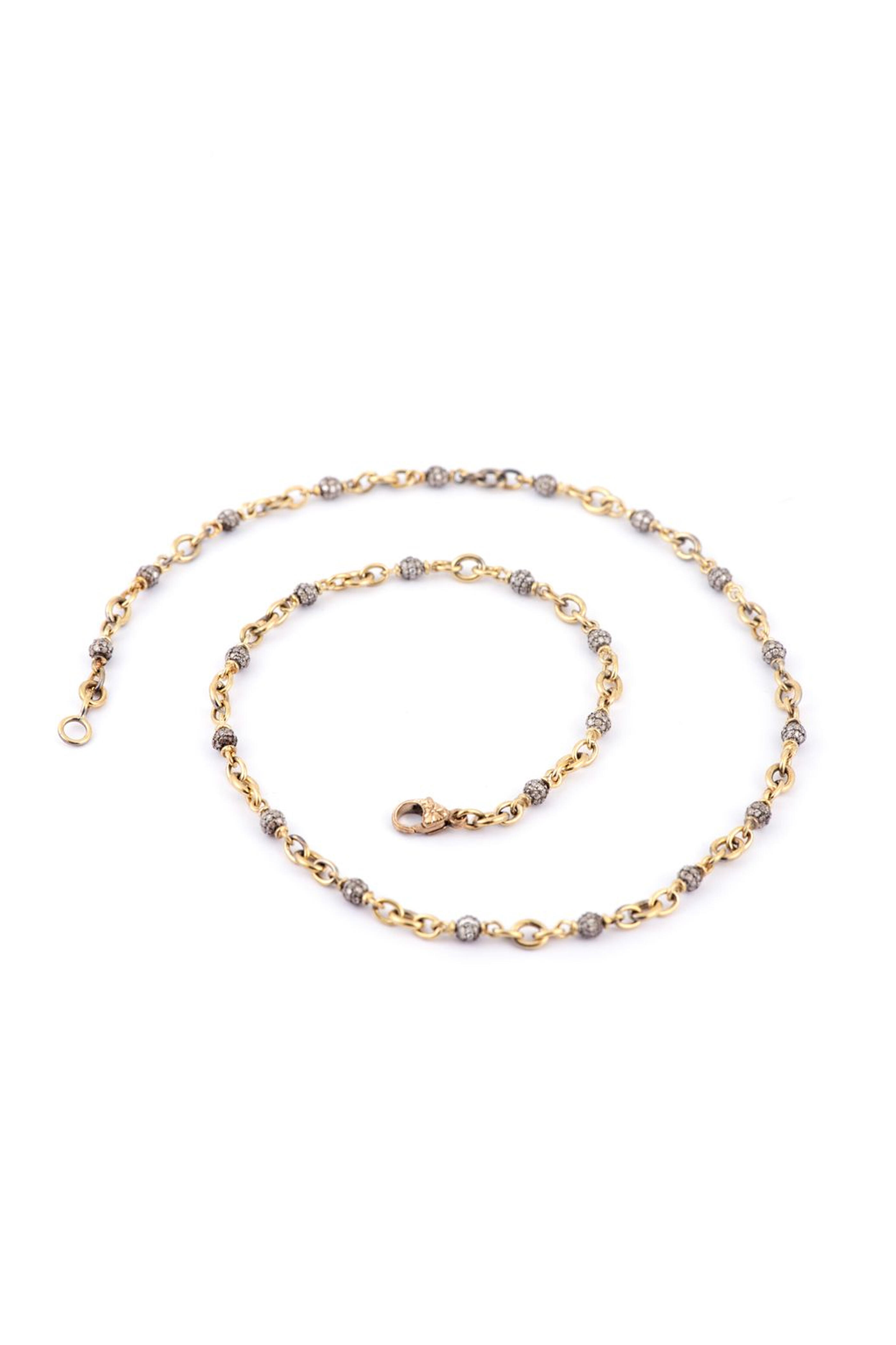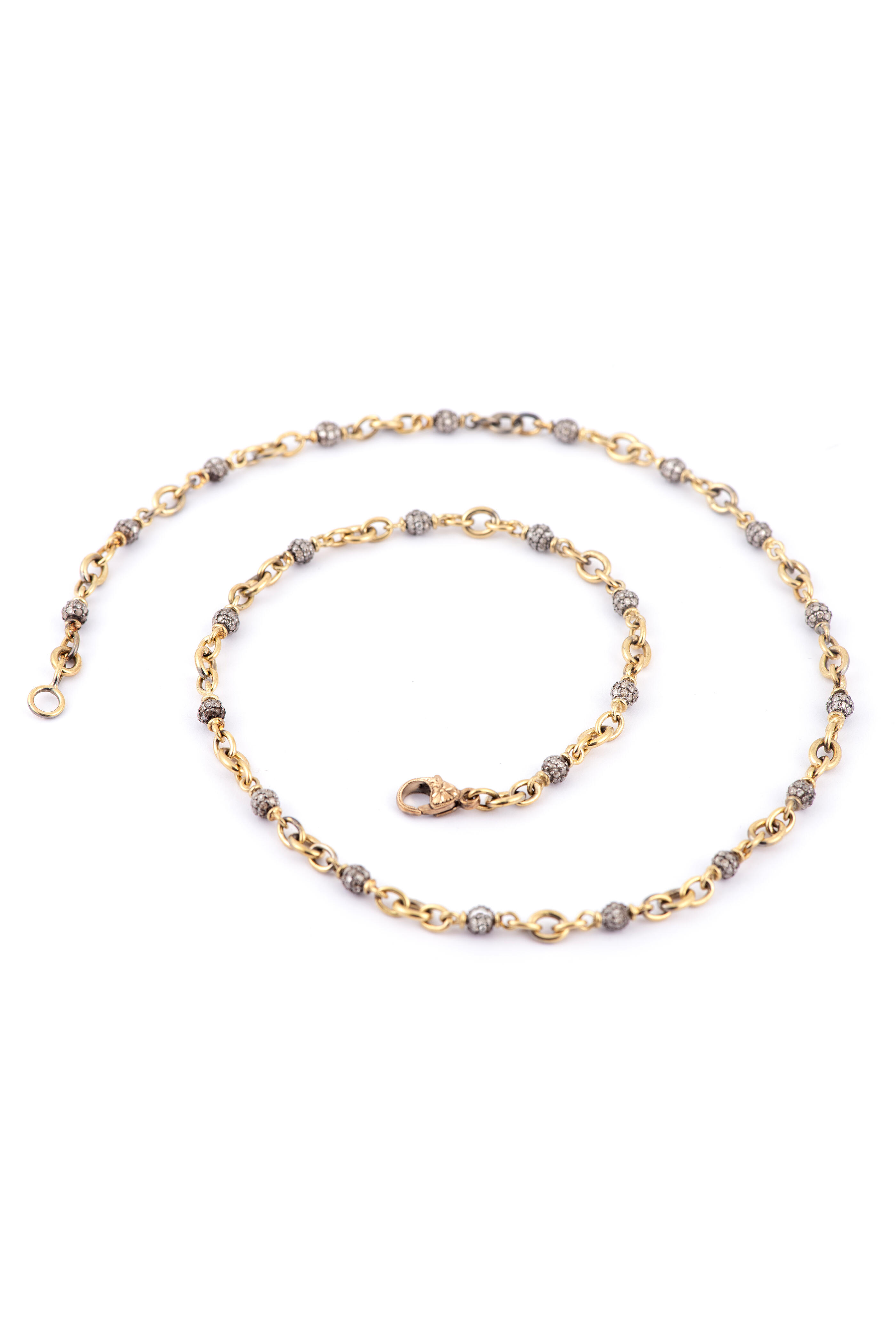 18k gold. Diamond. Chain link. Lobster claw clasps. Made in the USA. Length: 18".