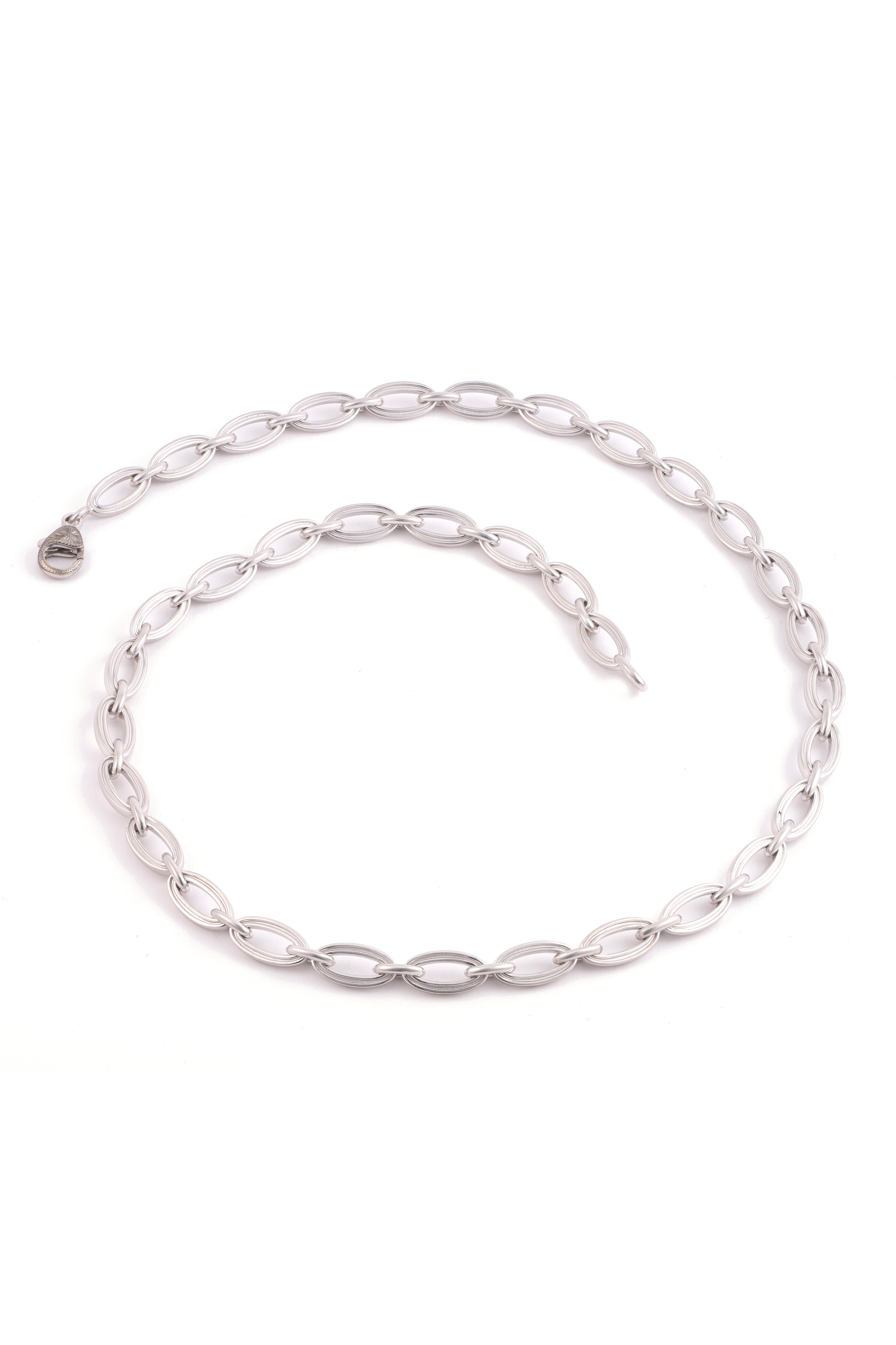 18k white gold. Chain link. Lobster claw clasps. Made in the USA. Length: 18".