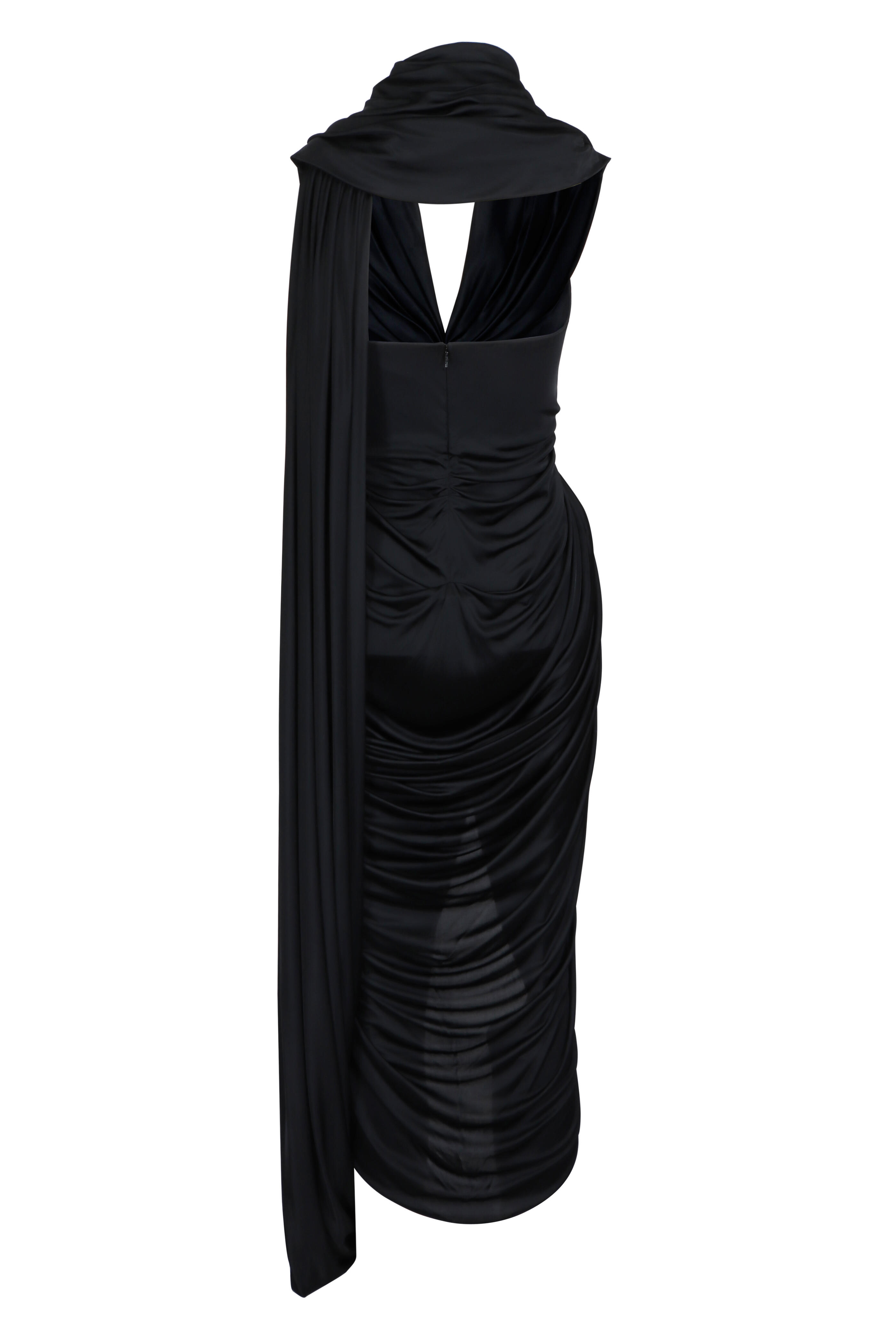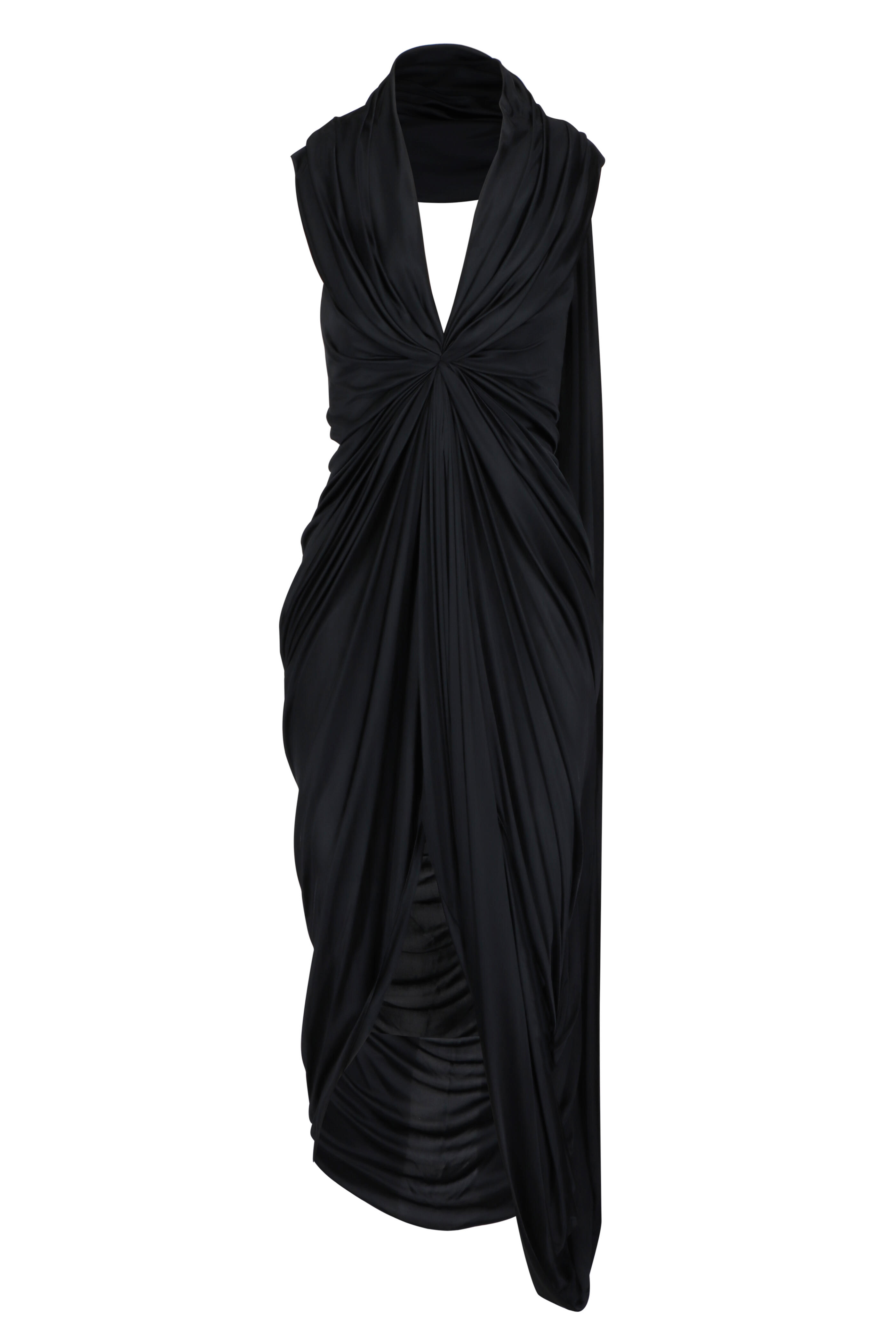 Deep V-neck. Rear zip fastening. Featuring a draped construction; asymmetric silhouette with a looped panel on one side. Made in Italy. Fitted silhouette.. 100% viscose. Dry clean.