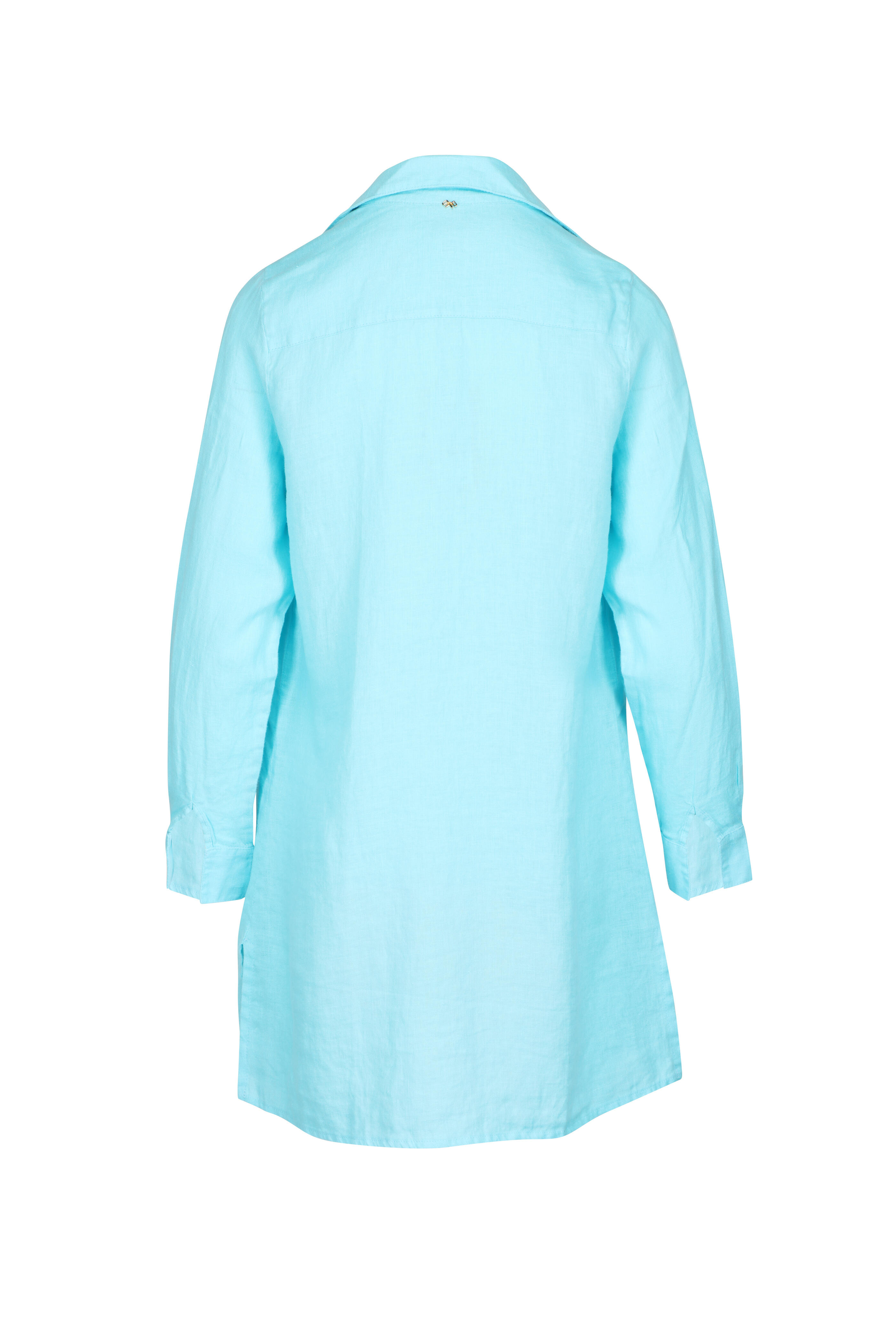 Spread collar. Long sleeves. Open side slit. Imported. Oversized fit.. 62% linen, 38% polyamide. Hand wash.