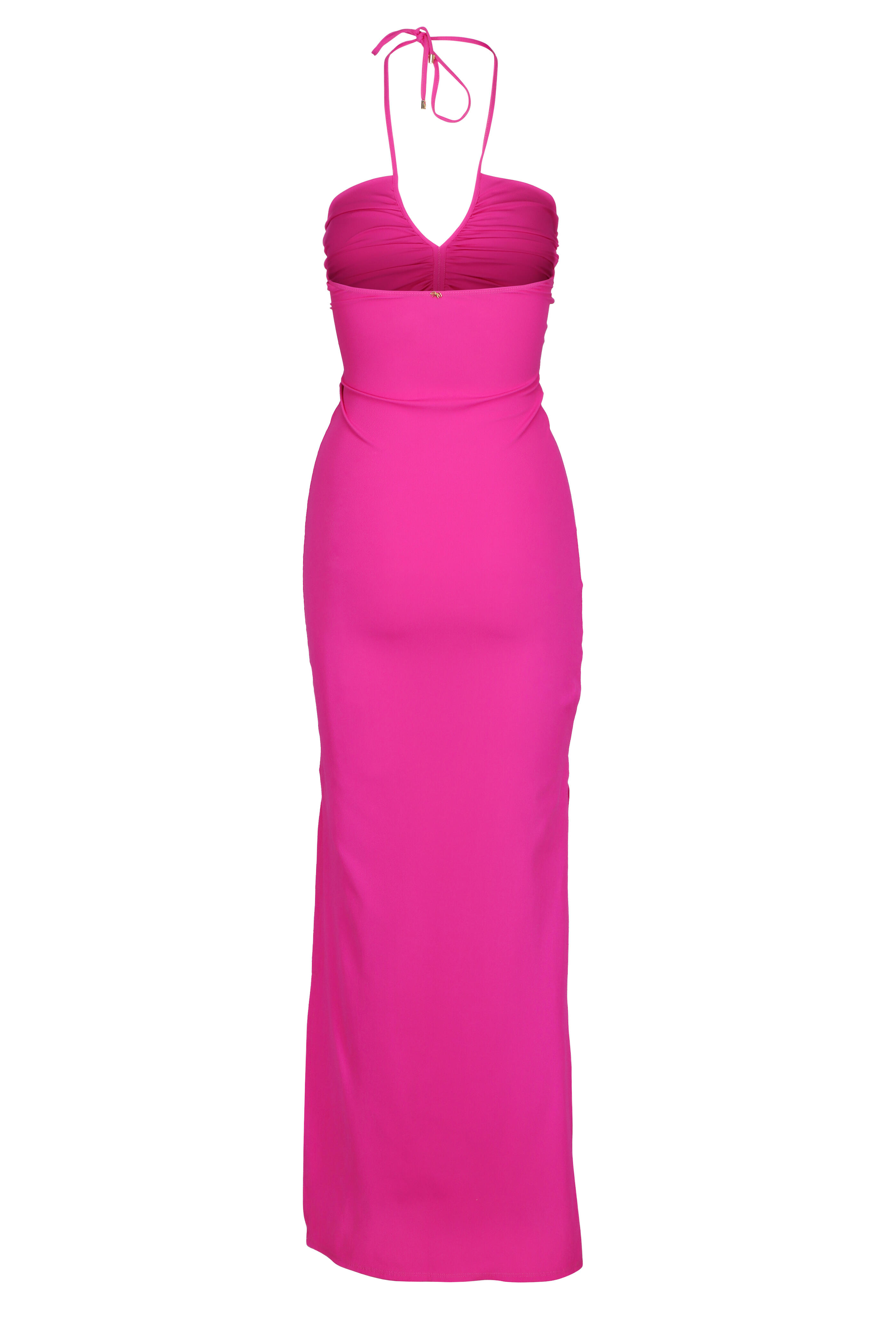 V-neck. Adjustable halter tie. Side slits. Imported. Falls 60" from shoulder. 92% Recycled Polyamide 8% Elastane. Hand wash.