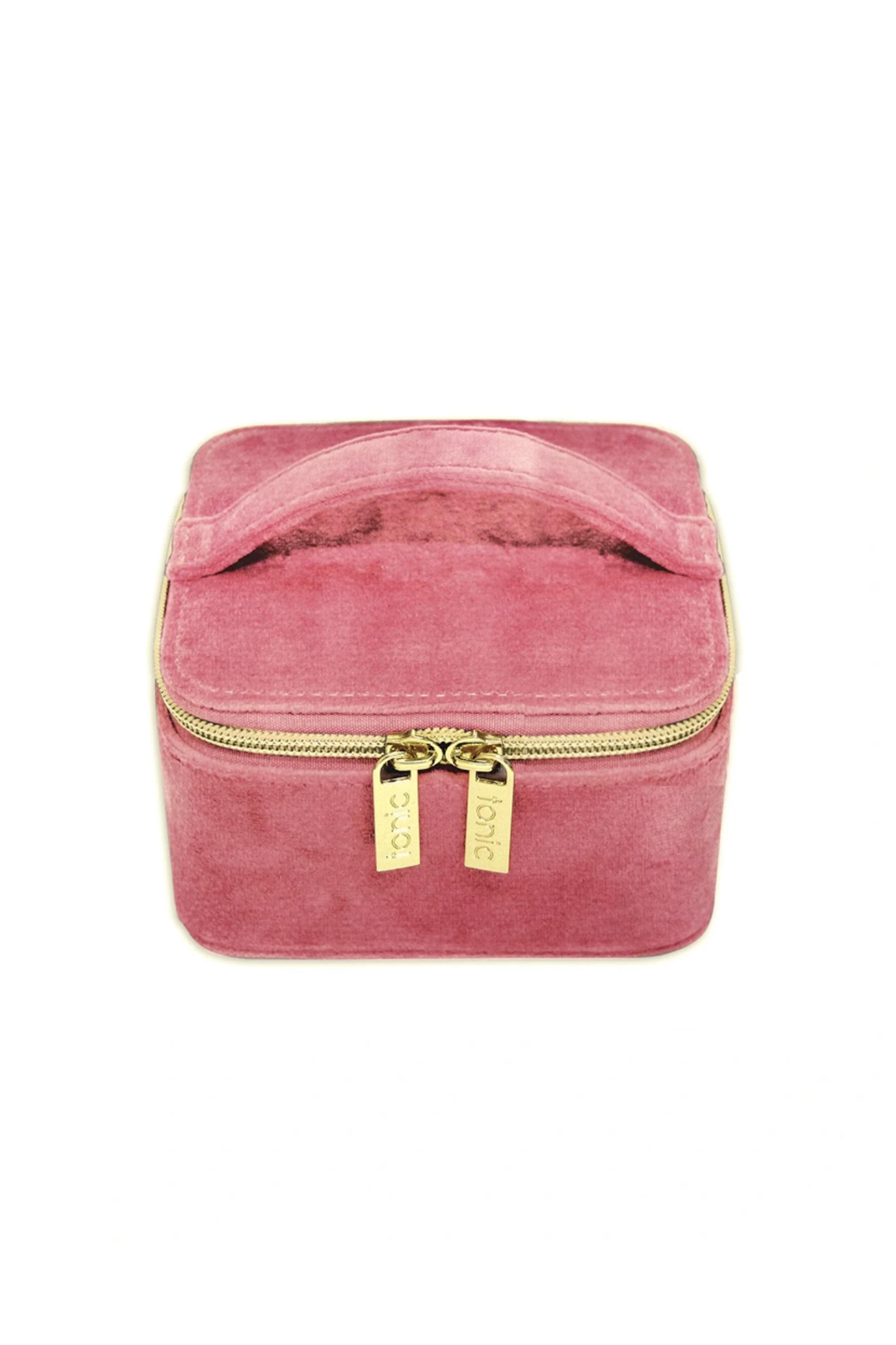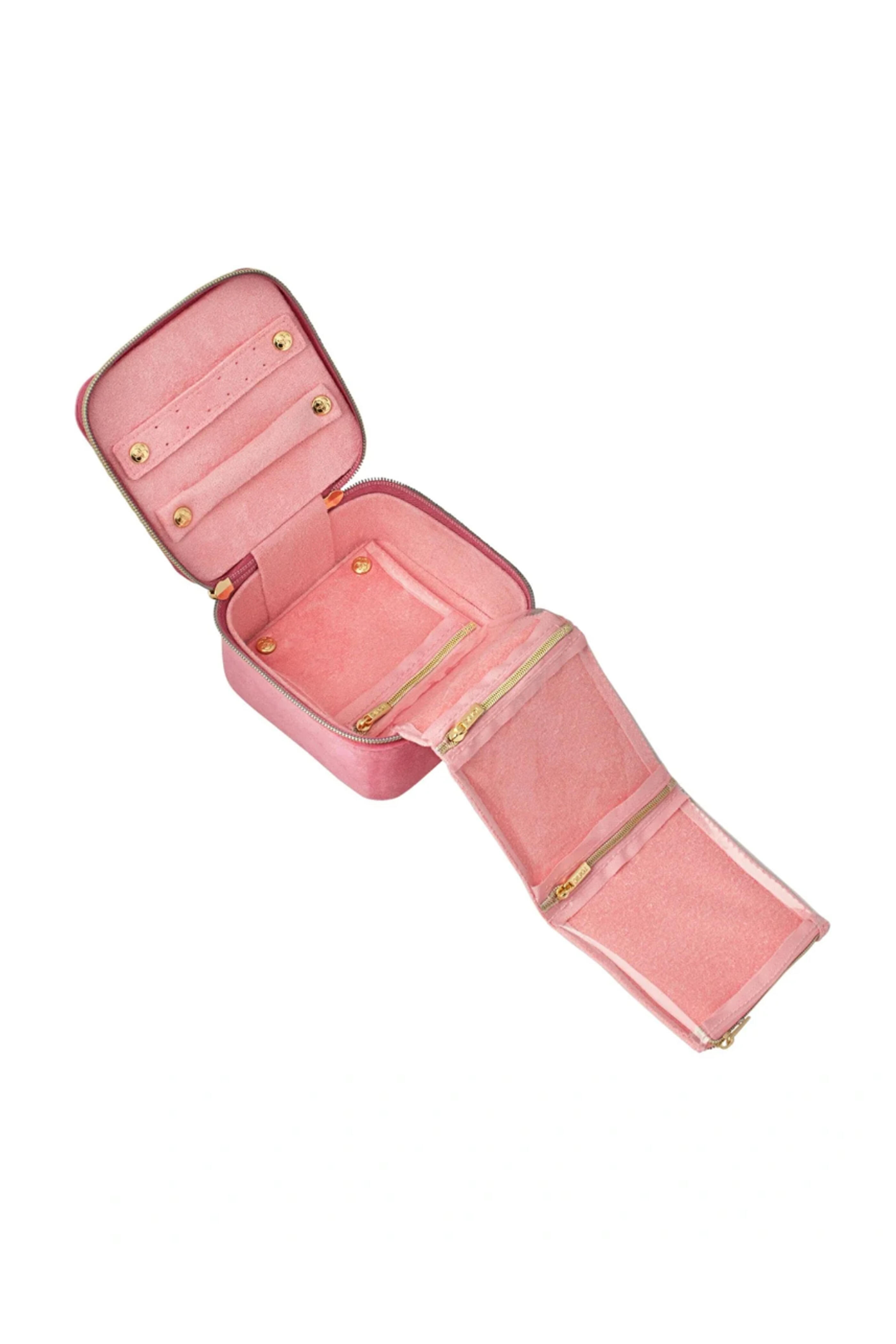Materials: Polyester Velvet Outer / Polyester Suedette Lining with EVA Pockets. The patented clever design has luxurious gold zips open to an inner detachable compartment with four individual zipped pockets with clear EVA windows, a ring holder and earring holder. Keeping your items all visible as you open your cube at home or while travelling. Imported. Dimensions: 4.72” x 4.72” x 2.75”.