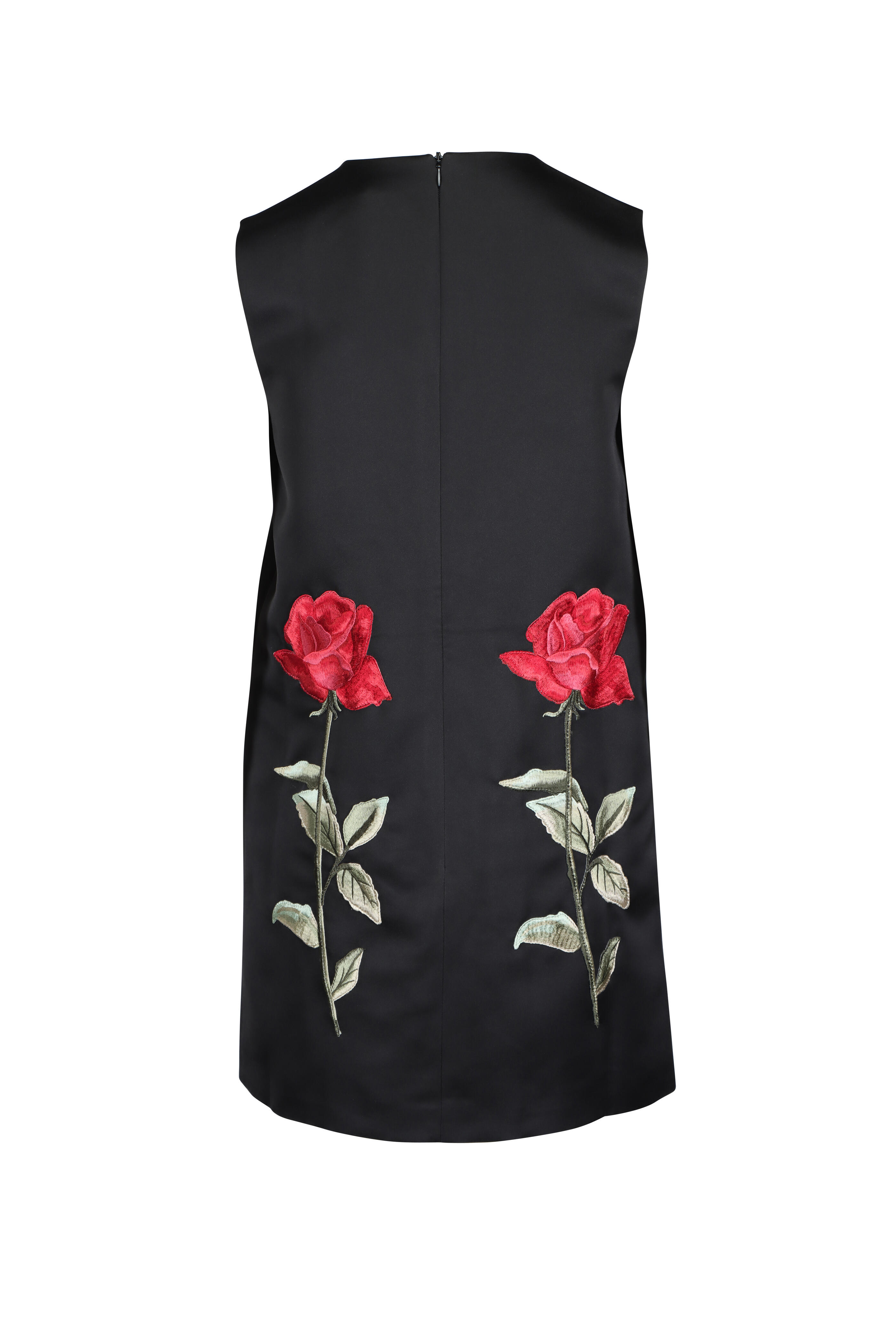 Round neckline. Sleeveless. Invisible back zip closure. A-line silhouette. Imported. Fits true to size.. 100% Polyester. Dry clean only.