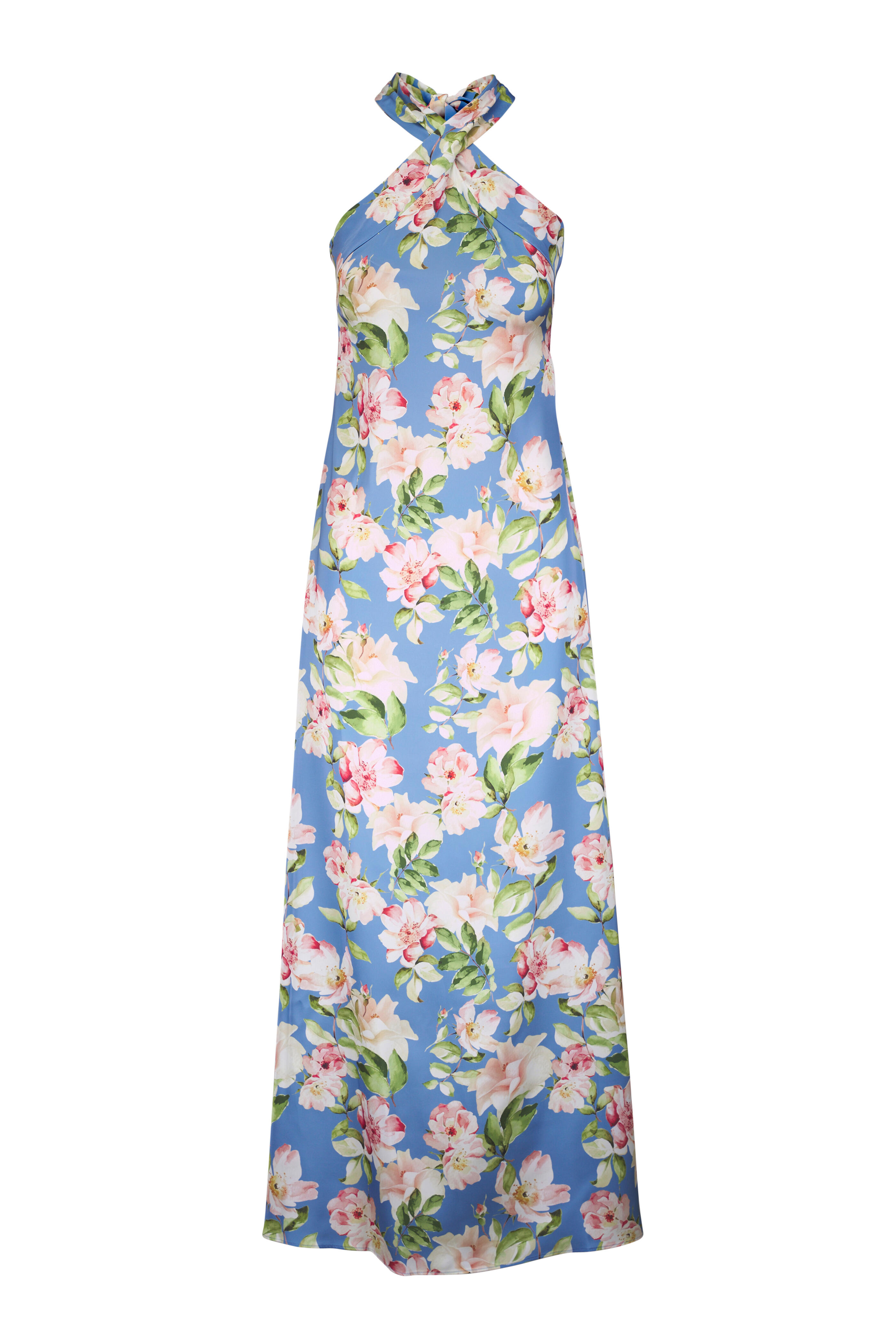 - Cross halter neckline