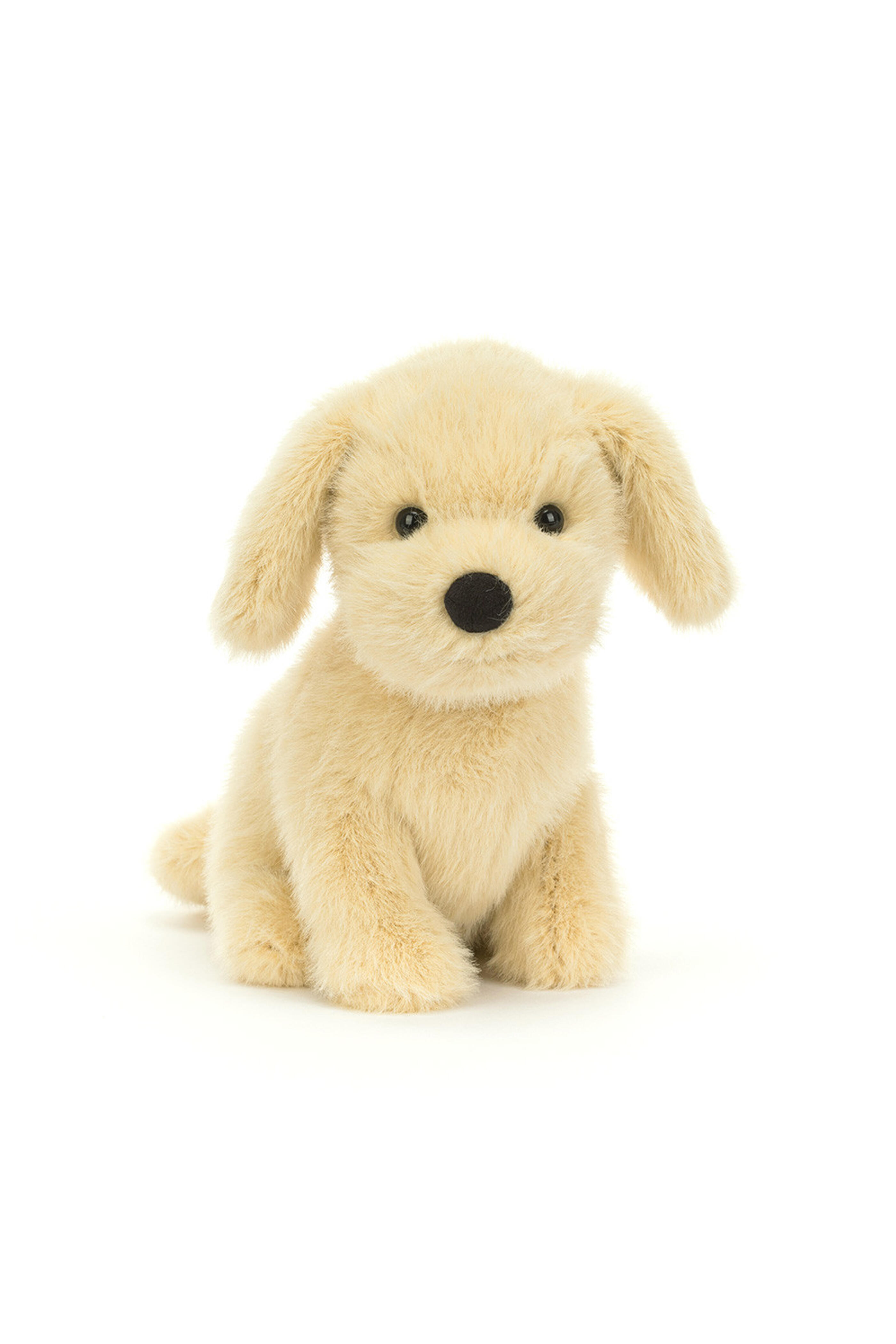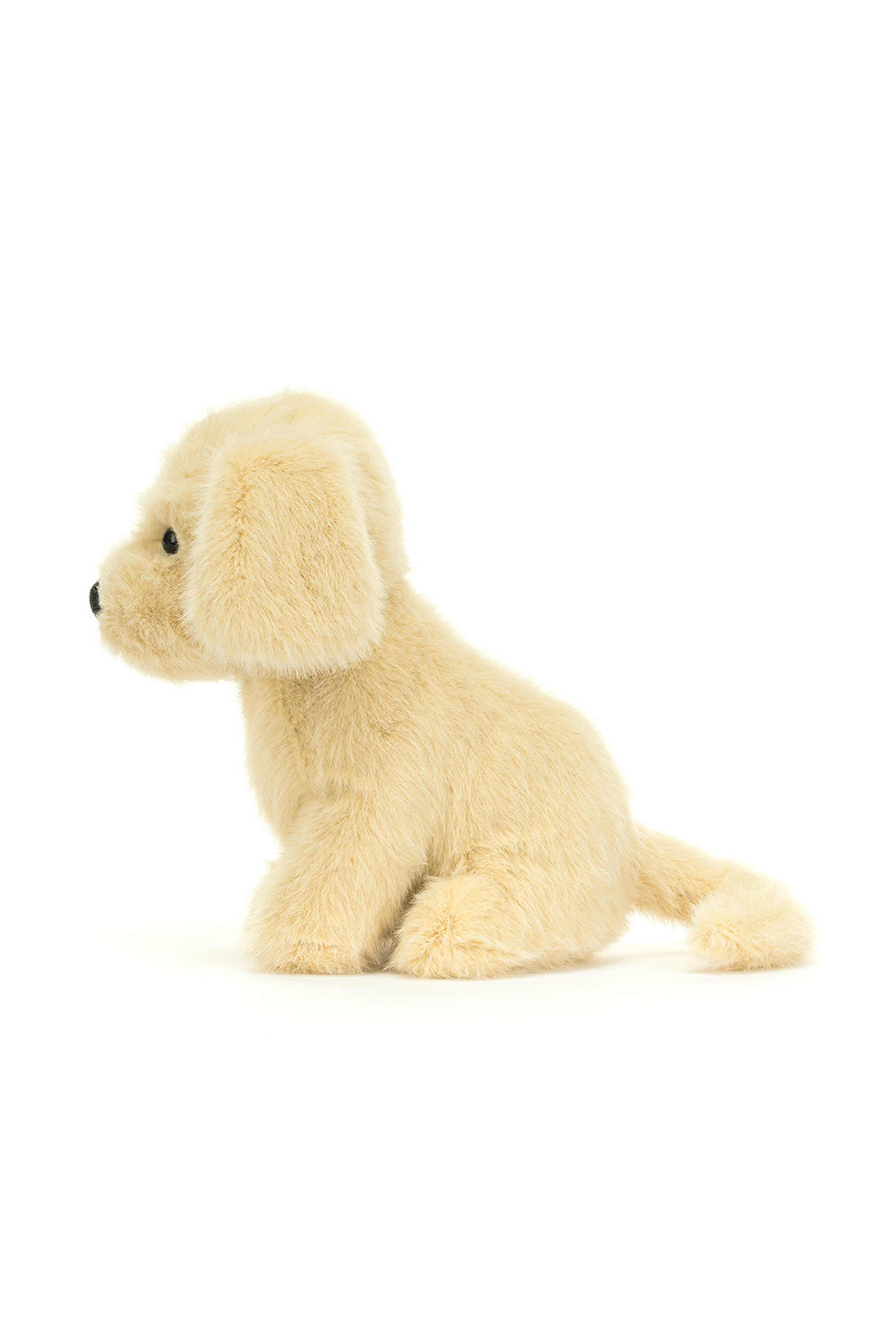 Main Materials: Polyester. Inner Filling: Polyester Fibers, PE Beans. Golden Puppy walks. Everywhere. Morning strolls, evening rambles, detours purely for the joy of it – he’s a firm believer that every path deserves exploring. He’s got a gentle, steady pace – the sort that invites conversation, or quiet thought, depending on the company. Rain, shine, drizzle, or downpour, Golden Puppy’s motto never wavers: there’s no such thing as bad weather, only the wrong attitude. (And maybe the wrong shoes!). Hard eye. Made in London. Dimensions: 8.3” x 3.9” x 3.5”. Sitting Height: 8”. Care Instructions: 86 degree Fahrenheit wash only. Do not tumble dry, dry clean, or iron. Check all labels upon arrival of purchase.