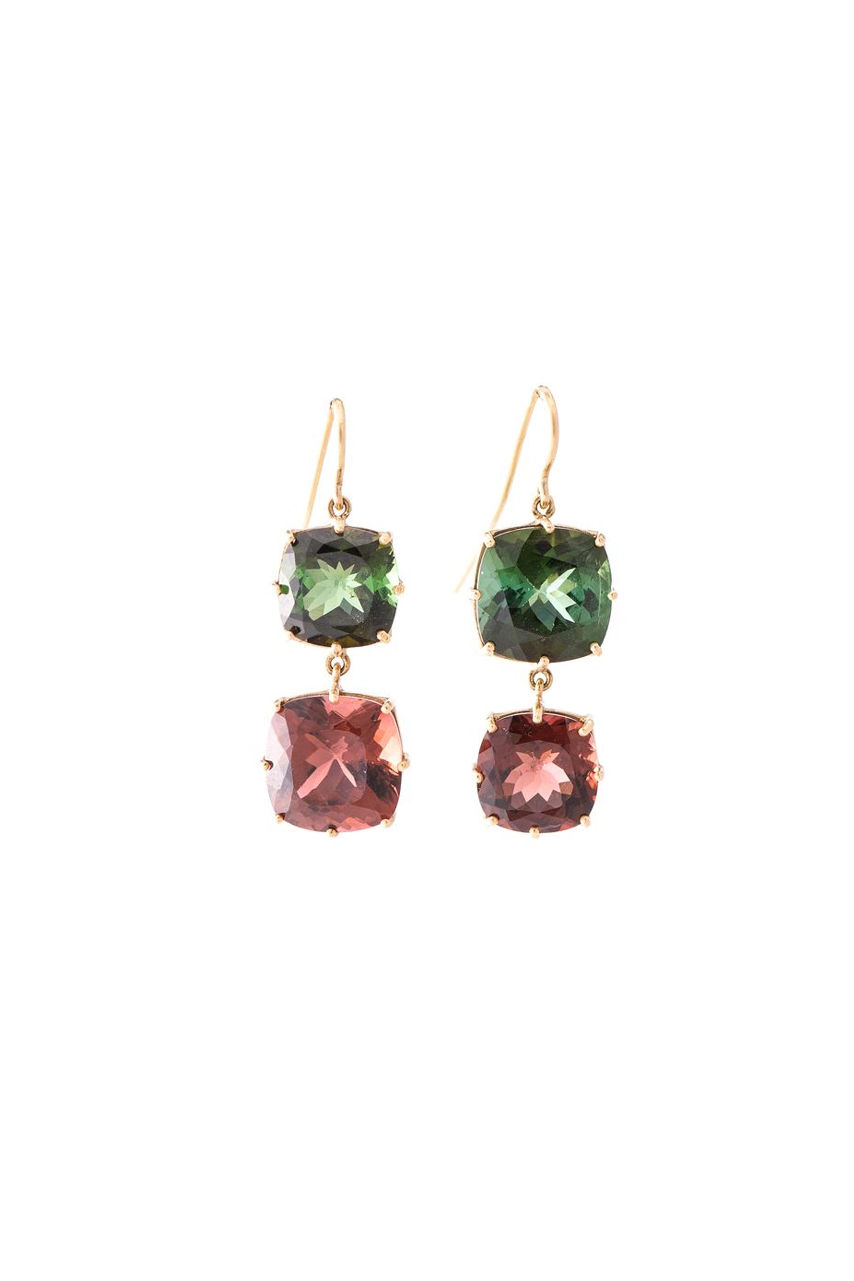 Green & Pink Tourmaline Double Drop Earrings