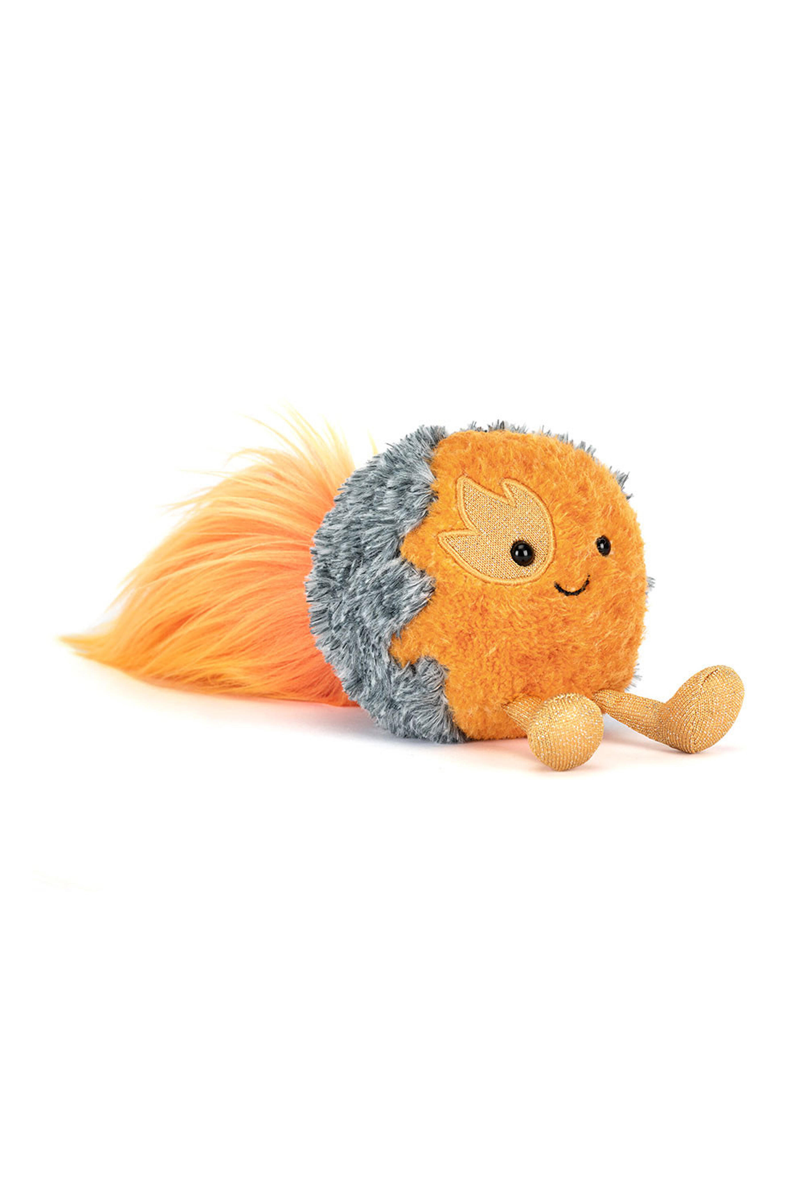 Main Materials: Polyester. Inner Filling: Polyester Fibers, PE Beans. Trusted across the galaxy to deliver urgent messages – and maximum fluffocity – bang on time, fiery courier Amuseables Space Comet has no shortage of work. The long-distance commuting doesn't bother her... as long as she has regular opportunities to put her feet up for a breather – and chance to enjoy a calming cup of chamomile tea. And every four years, like clockwork, she takes a short sabbatical exploring the rings of Saturn. Bliss.. Hard eye. Made in London. Dimensions: 4.3” x 3.5” x 9.1”. Sitting Height: 3”. Care Instructions: 86 degree Fahrenheit wash only. Do not tumble dry, dry clean, or iron. Check all labels upon arrival of purchase.