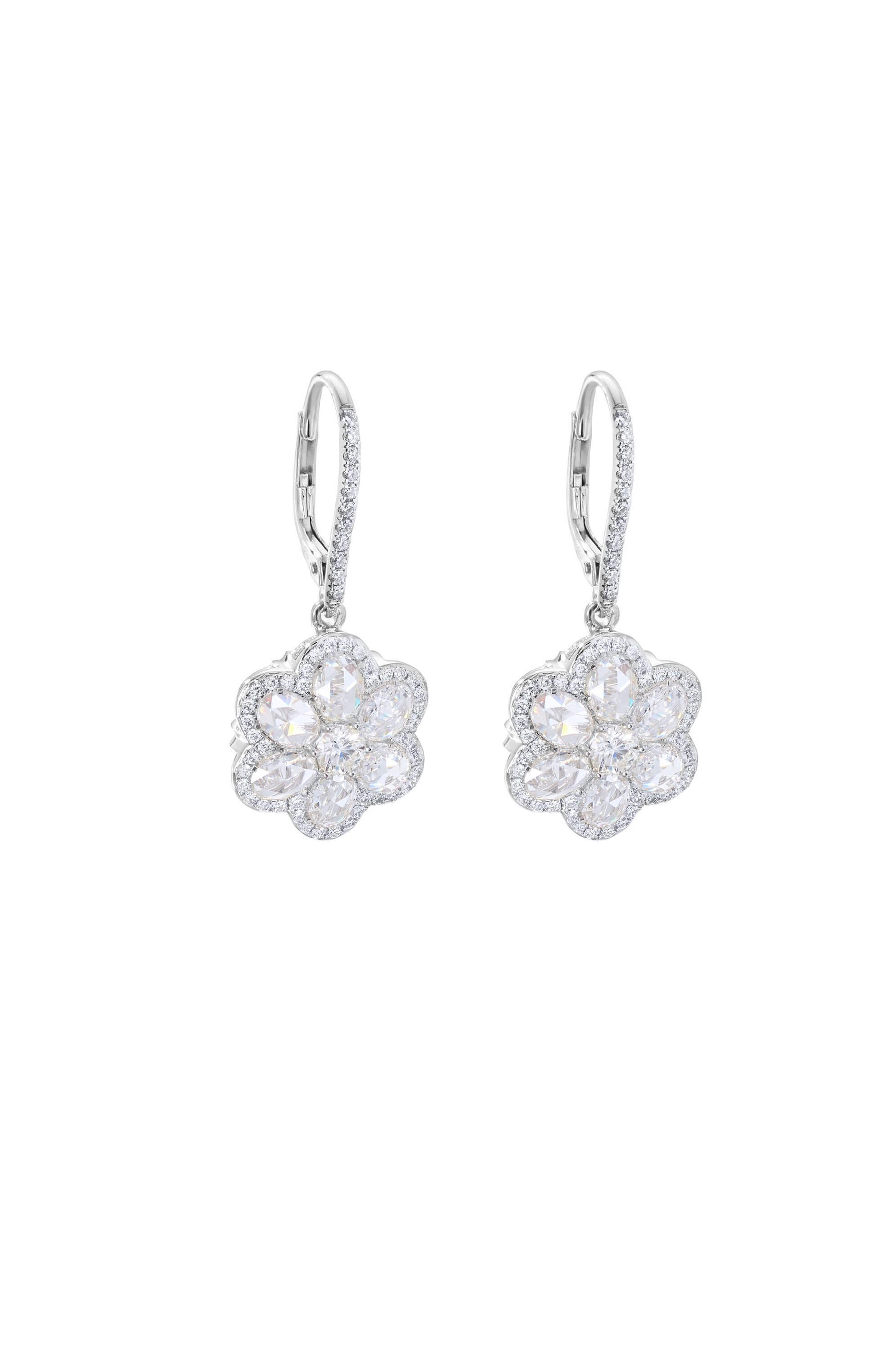 White Diamond Flower Drop Earrings