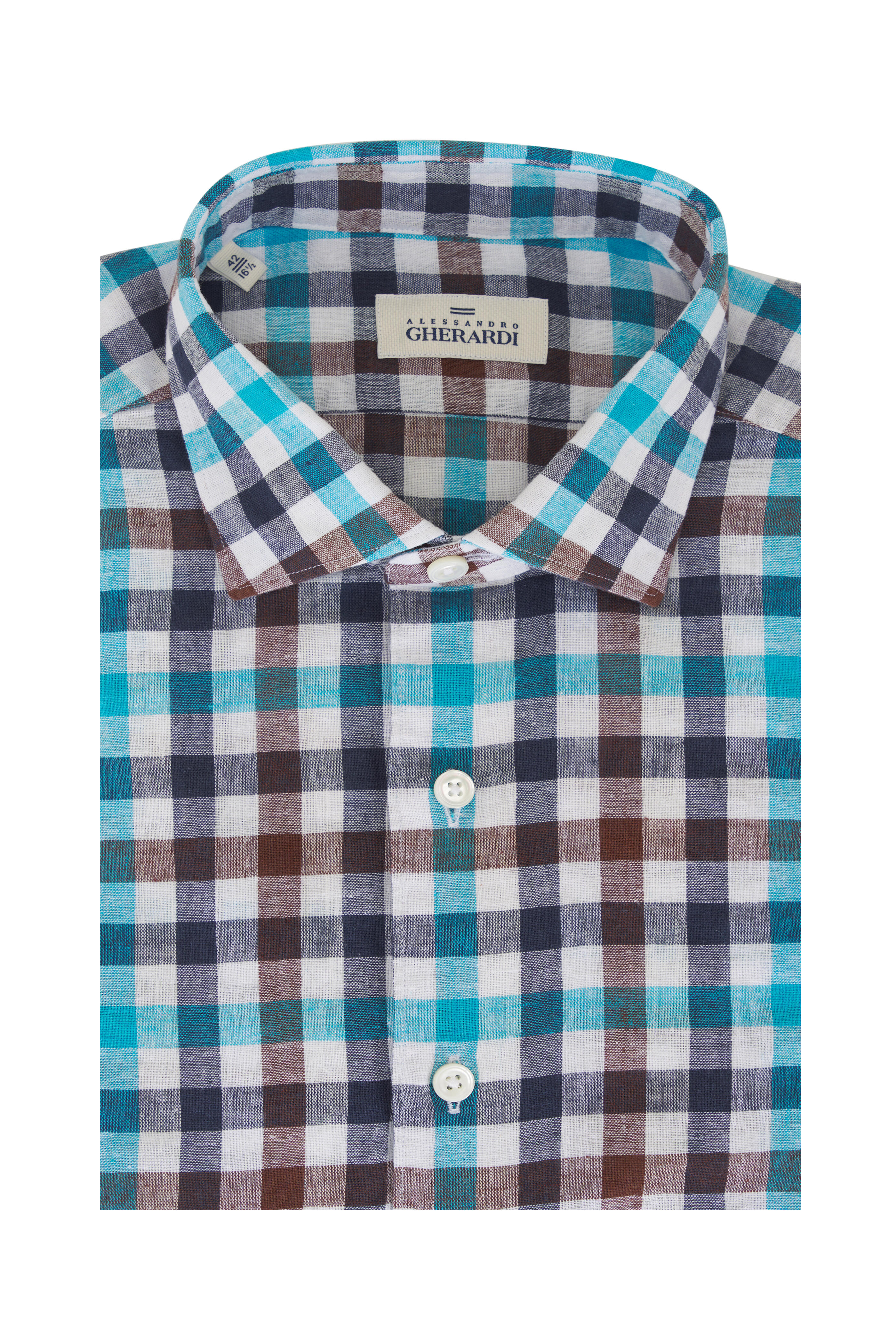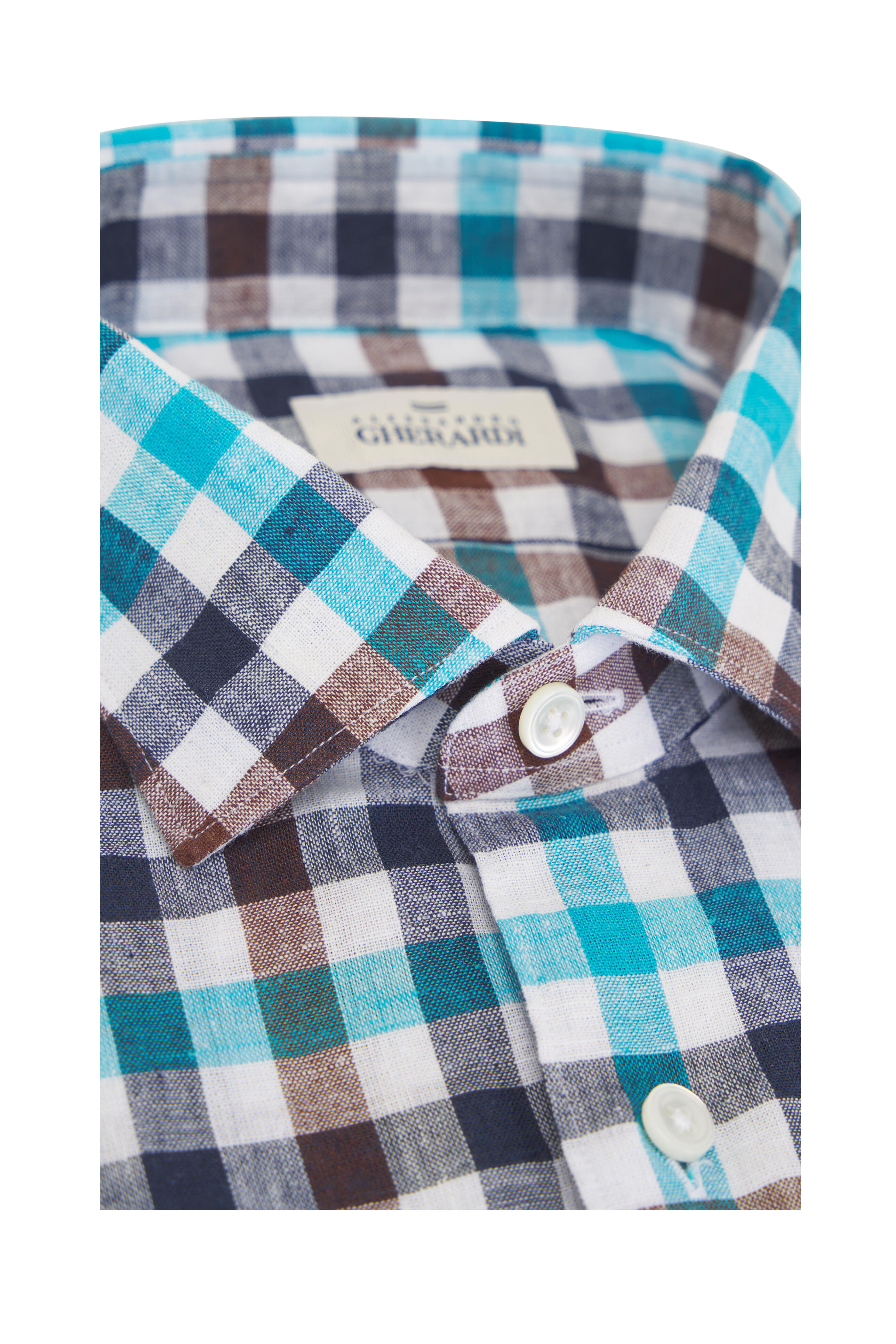 Cutaway collar. French front button placket. Single-button adjustable barrel cuffs. Imported. 100% linen. Machine wash.