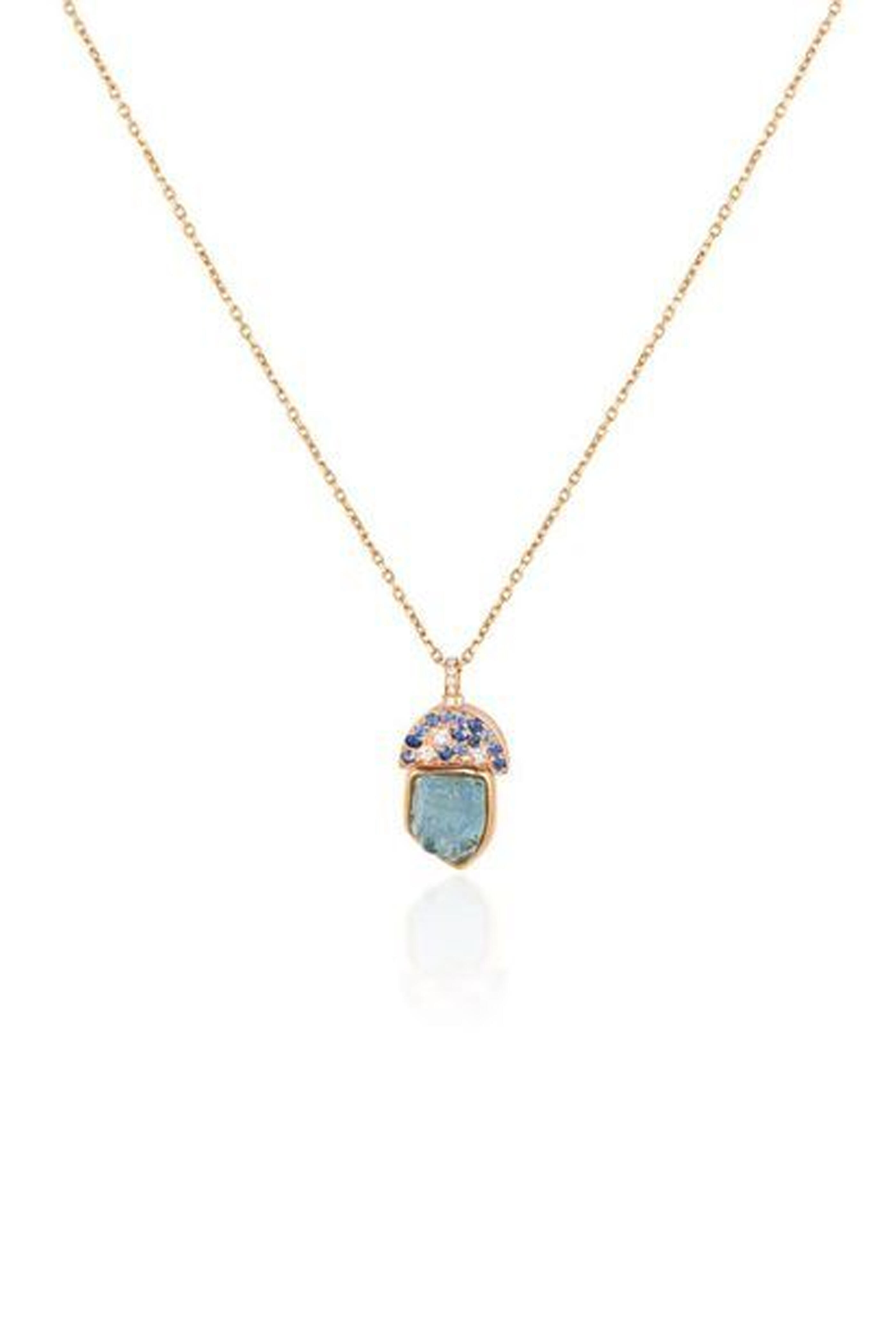 18k rose gold. Diamond. Aquamarine. Blue sapphire. Cable chain. Diamond bezel. Lobster claw clasps. Imported.