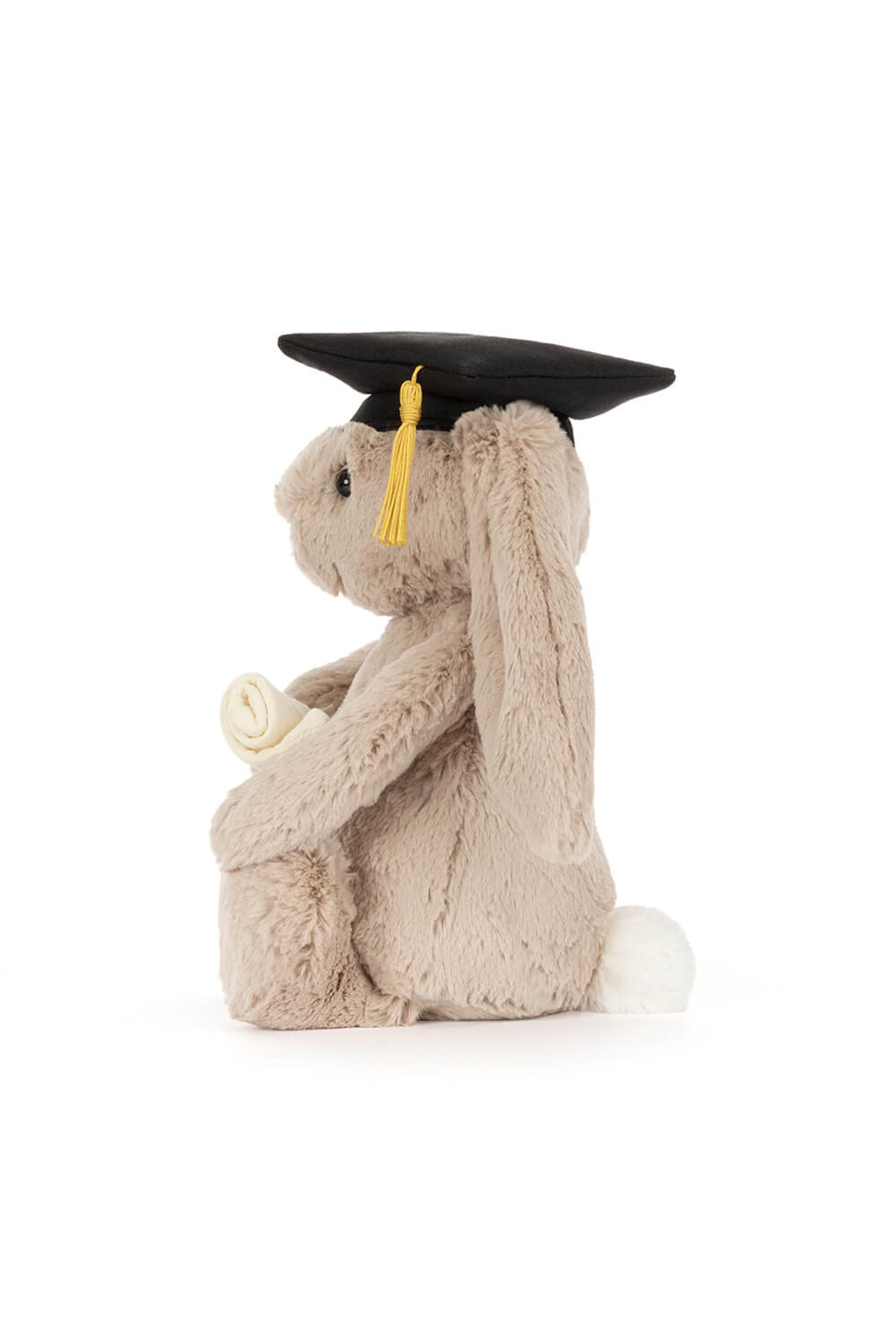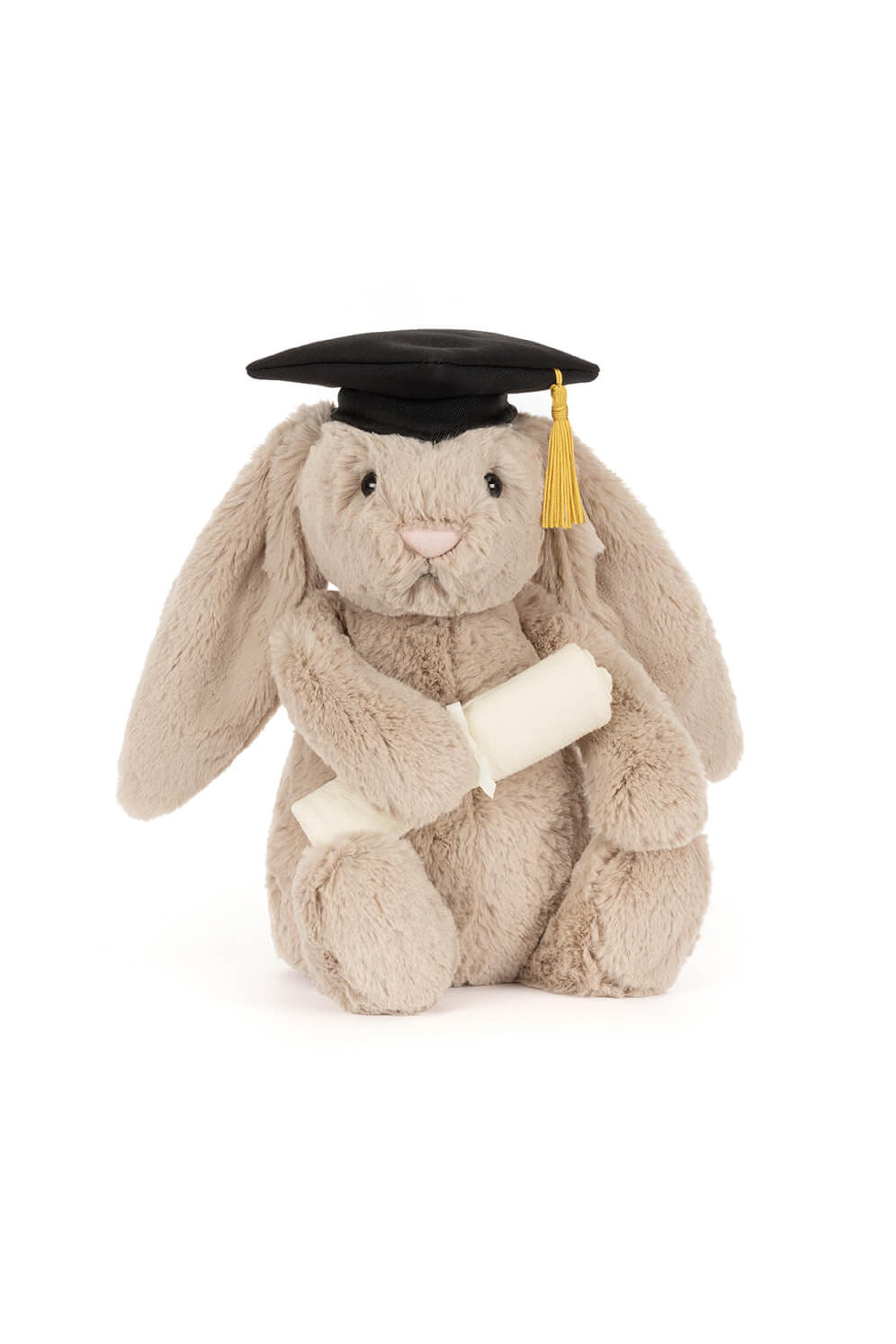 Main Materials: Polyester. Inner Filling: Polyester Fibers, PE Beans. Bashful Bunny’s graduated! Bartholomew Bear was thrilled to be her plus-one – any excuse to dress up and photobomb the official shots of Bashful in her mortar board sounds grand to him! He was slightly befuddled by her dissertation title – The Art of Cuddle-Induced Emotionality – until Bashful translated: “Why hugs help.” Much better. It's always great to celebrate big achievements with your best friend – especially when they inspired you to write 80,000 words in the first place.... Hard eye. Made in London. Dimensions: 12.2” x 4.7” x 3.5”. Sitting Height: 9”. Care Instructions: 86 degree Fahrenheit wash only. Do not tumble dry, dry clean, or iron. Check all labels upon arrival of purchase.