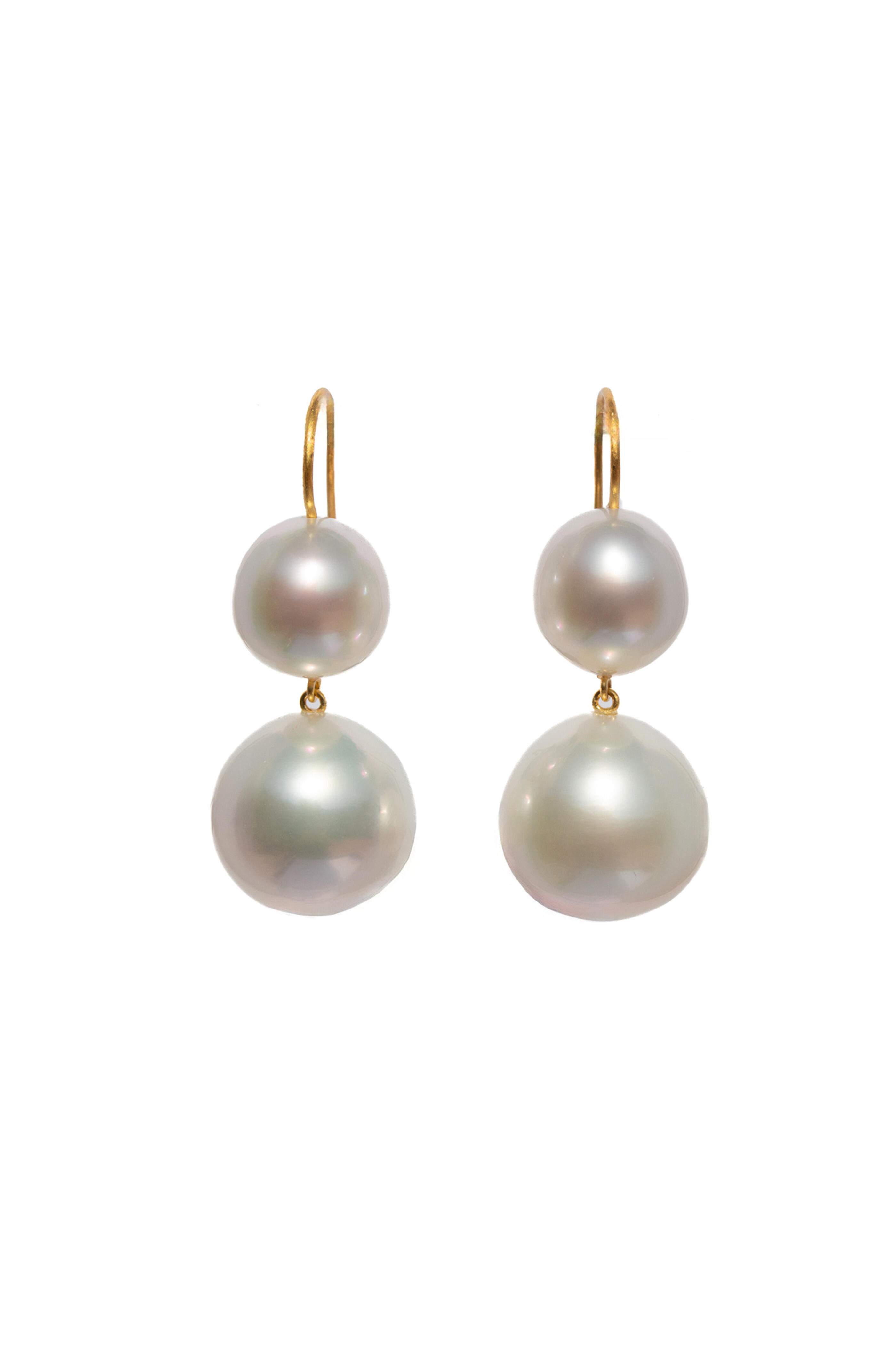 22k gold. Pearl. Double drop design. Drop style. Wire back. Made in India. Length: 3.4cm.
