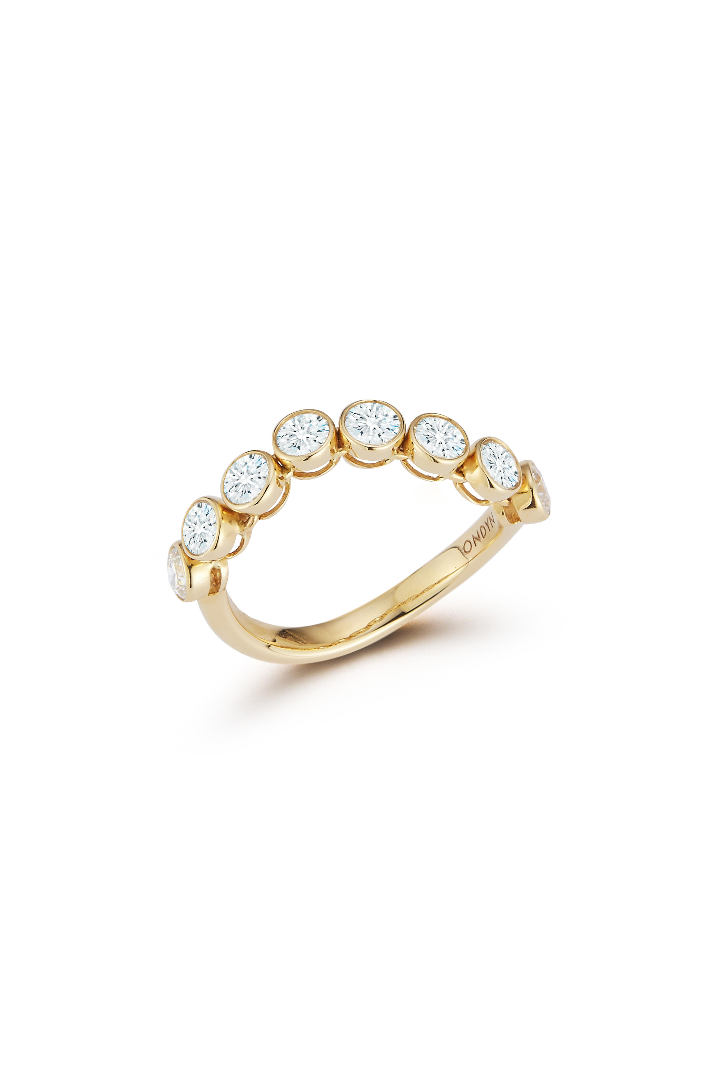 A bold reinterpretation of a timeless design, the Large Capri Ring elevates the classic bezel-set diamond band with a fully articulated structure. Designed to drape gracefully around the finger, this statement piece allows each diamond to move freely, catching and reflecting light with every motion. Whether worn alone or stacked, this stackable ring embodies Ondyn’s signature fusion of elegance and fluidity, making it an essential addition to any fine jewelry collection.