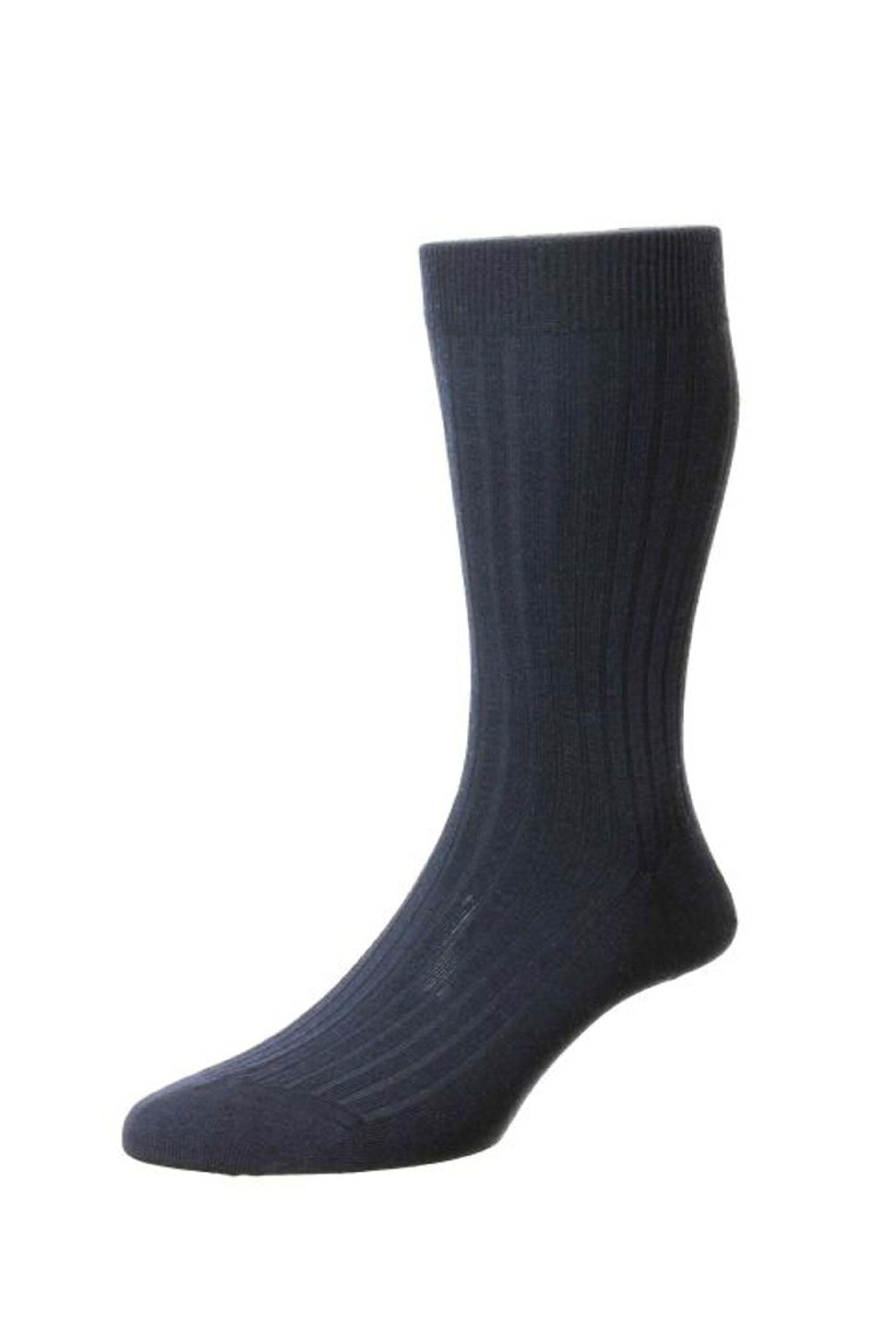 Pantherella Navy Laburnum Wool Over The Calf Sock. Classic collection. Seamless toe. Over the calf. Made in England. 70% Merino wool, 30% nylon.