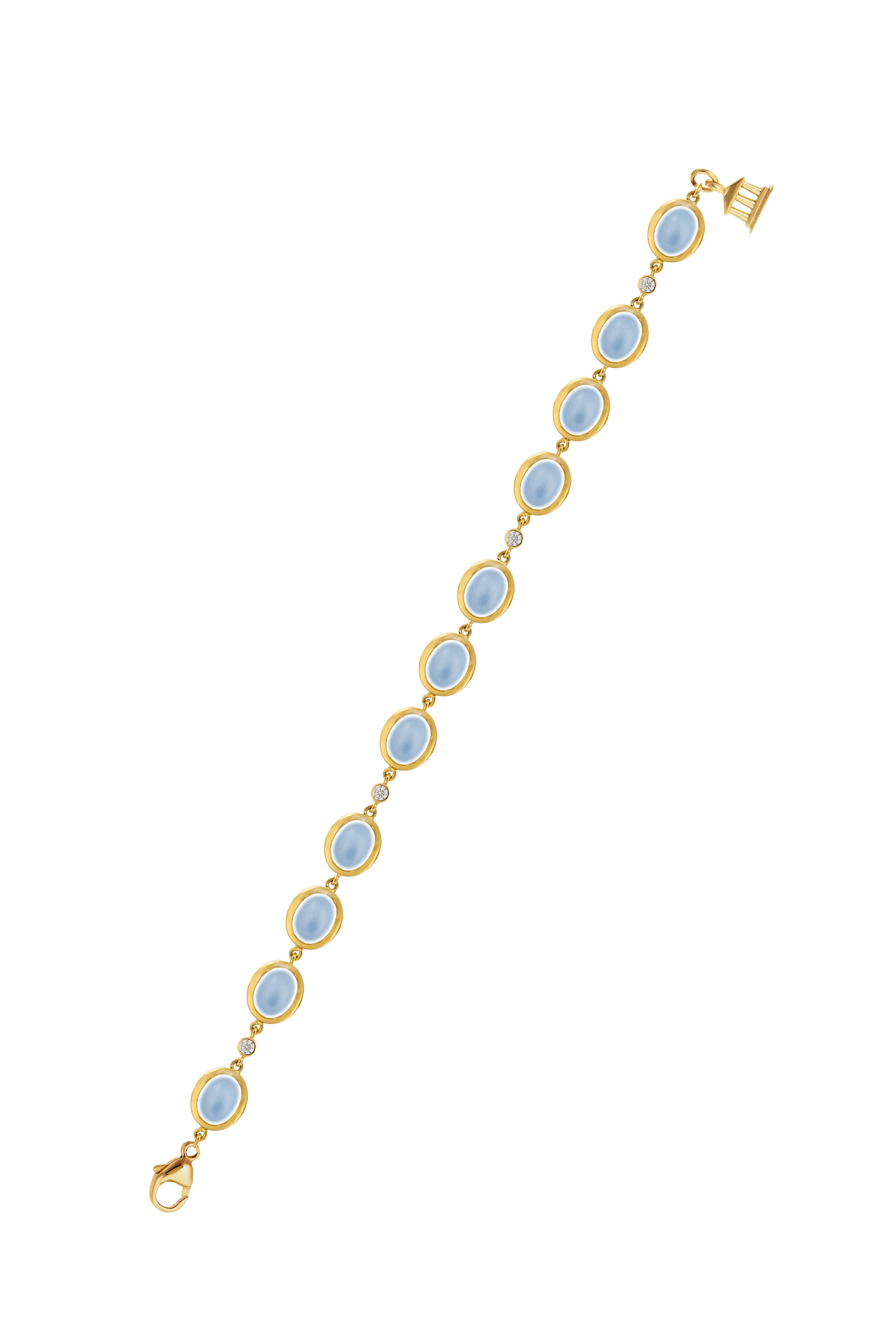 18K yellow gold. Blue moonstones, 14.40 total carat weight. Diamonds, 0.593 total carat weight. 7" L.