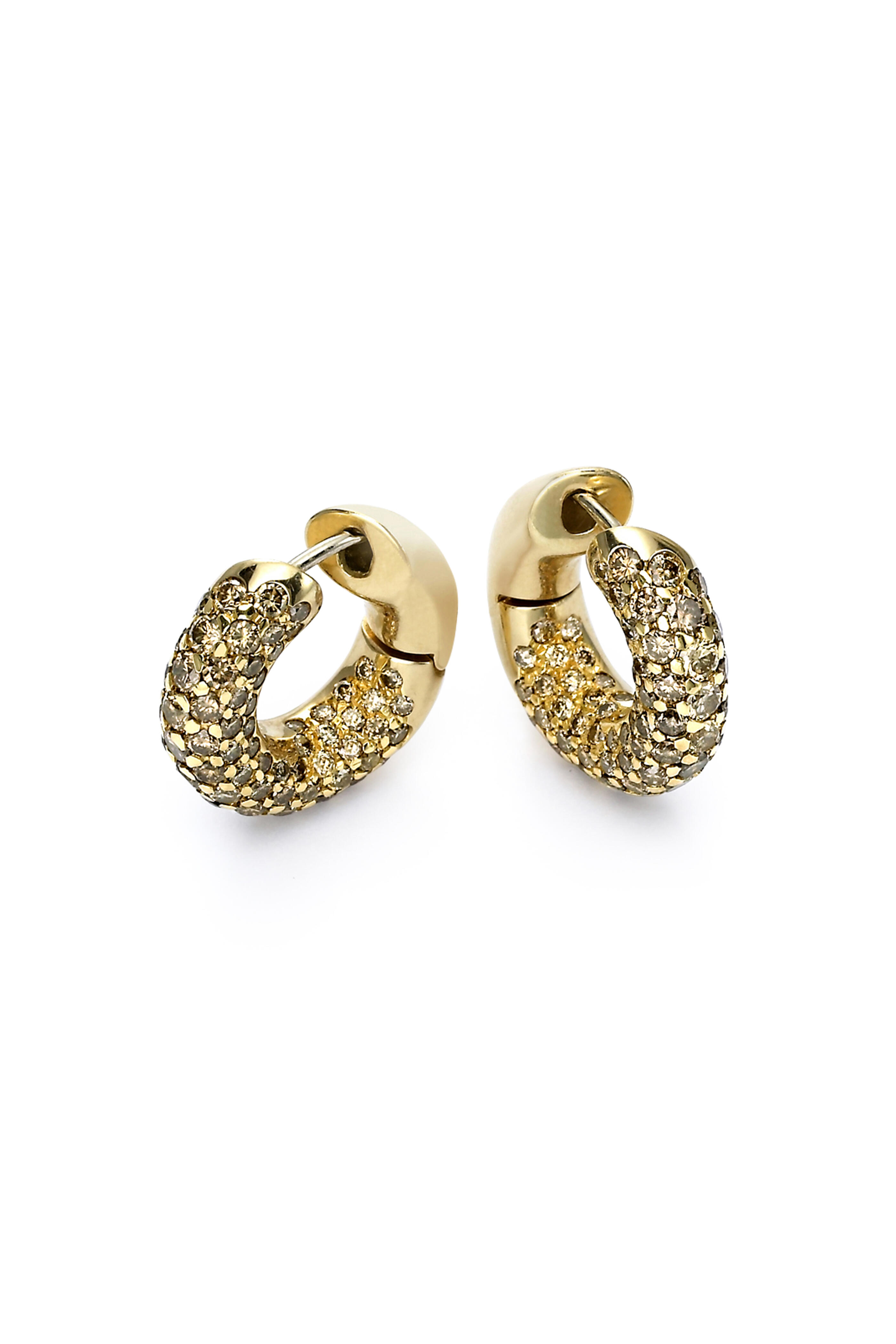 Yellow Gold Cognac Diamond Huggie Hoop Earrings