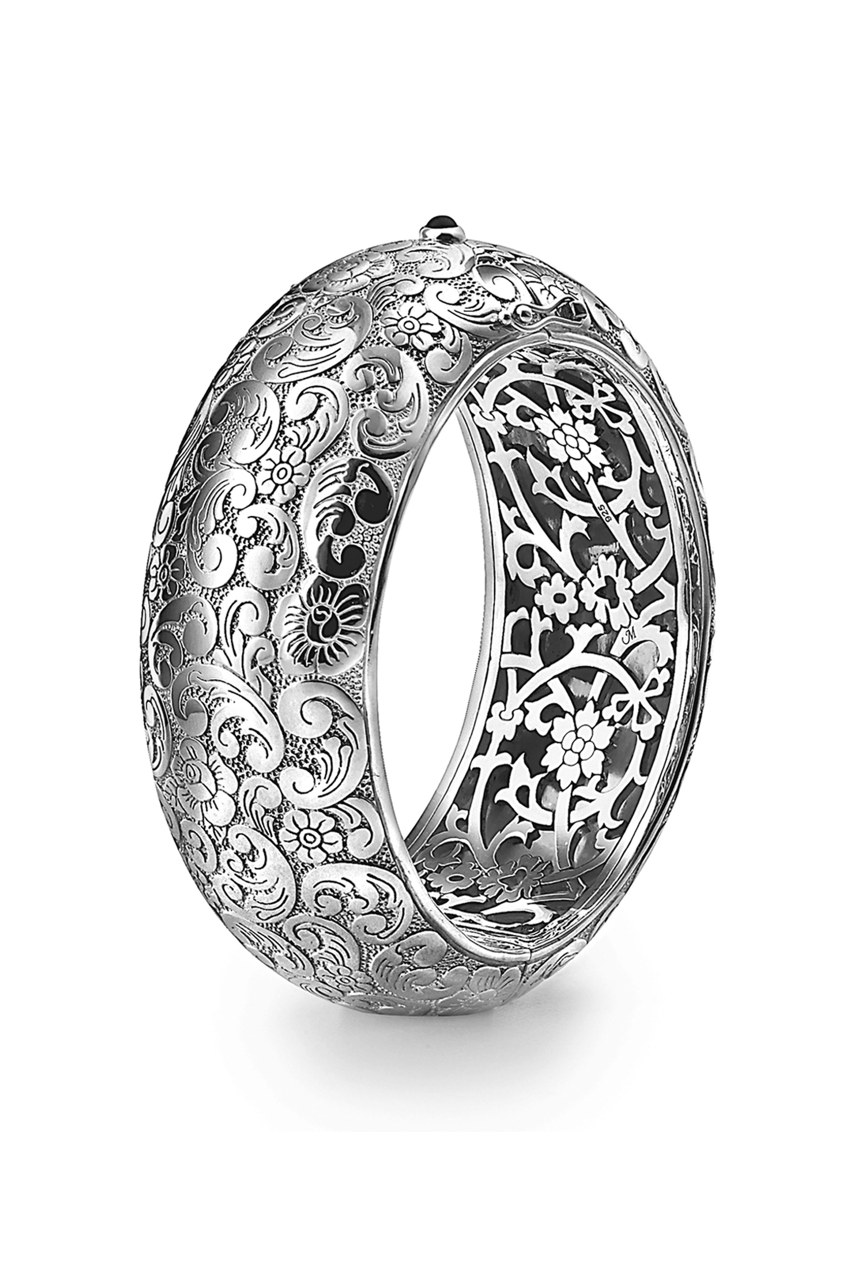 Sterling Silver Black Onyx Patterned Cuff Bracelet