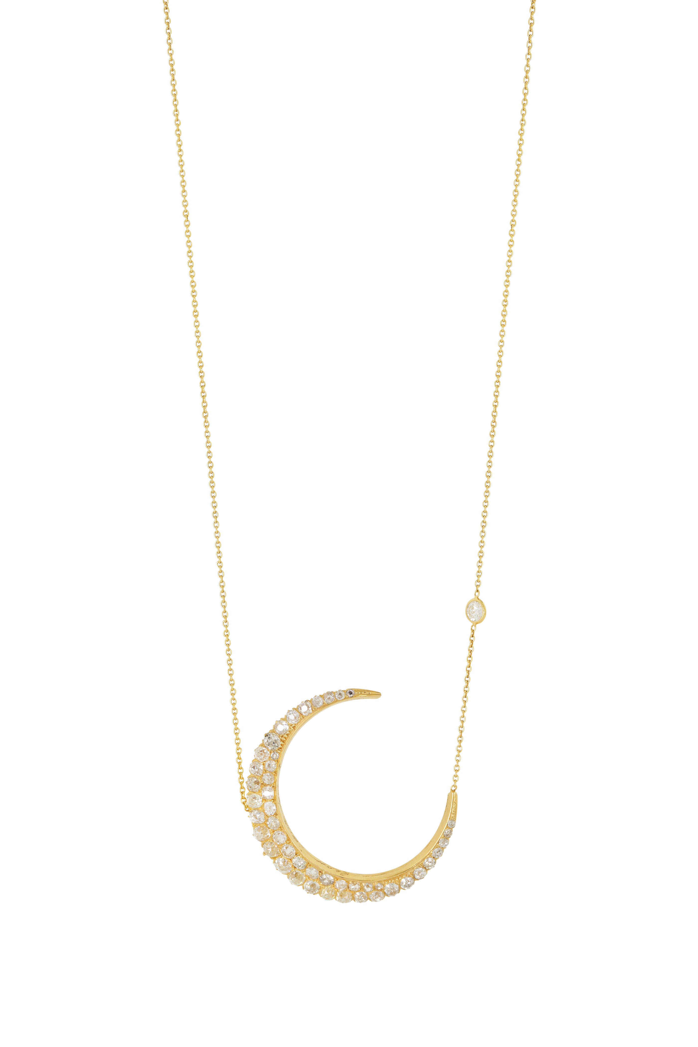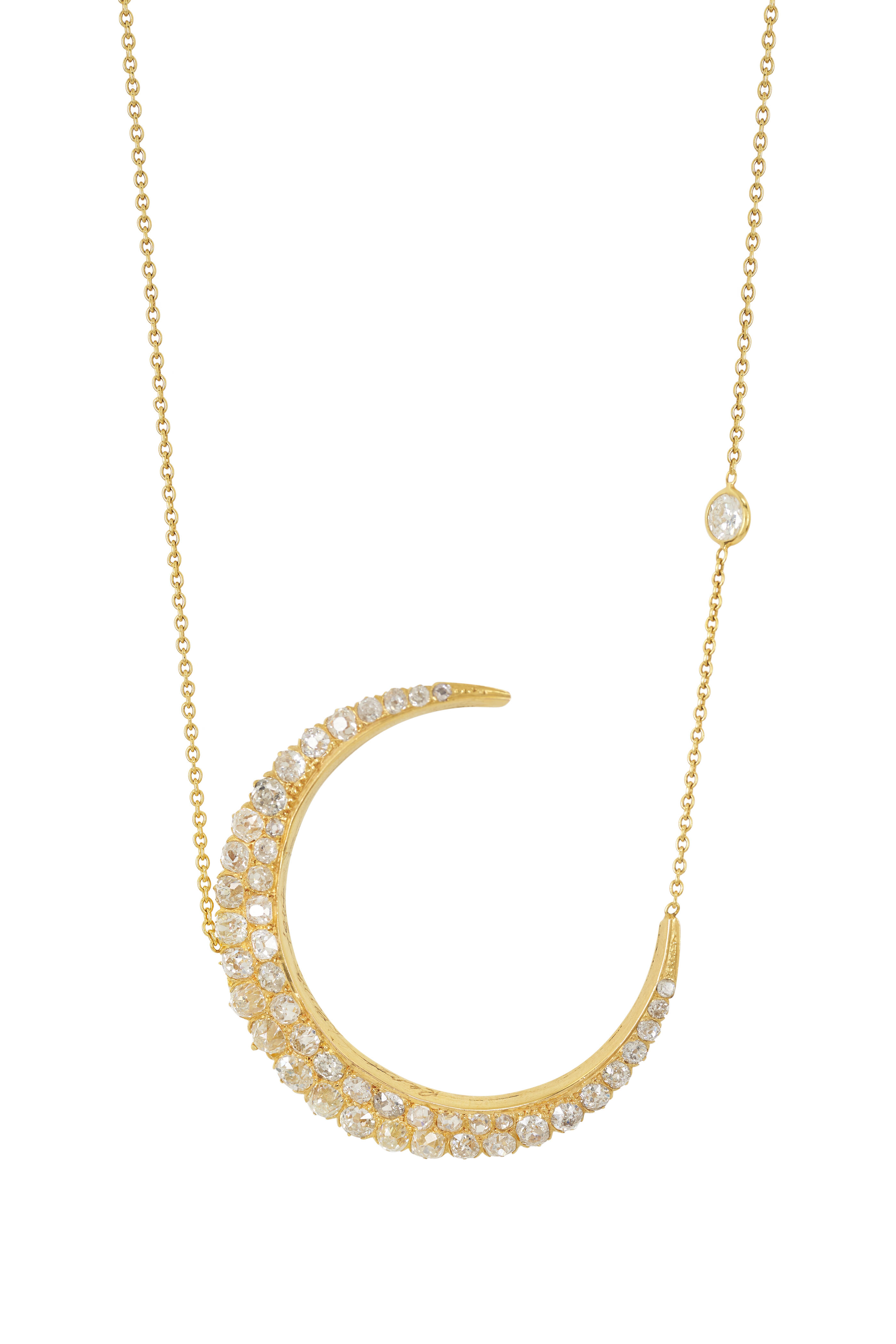 Large Antique Diamond Crescent Necklace