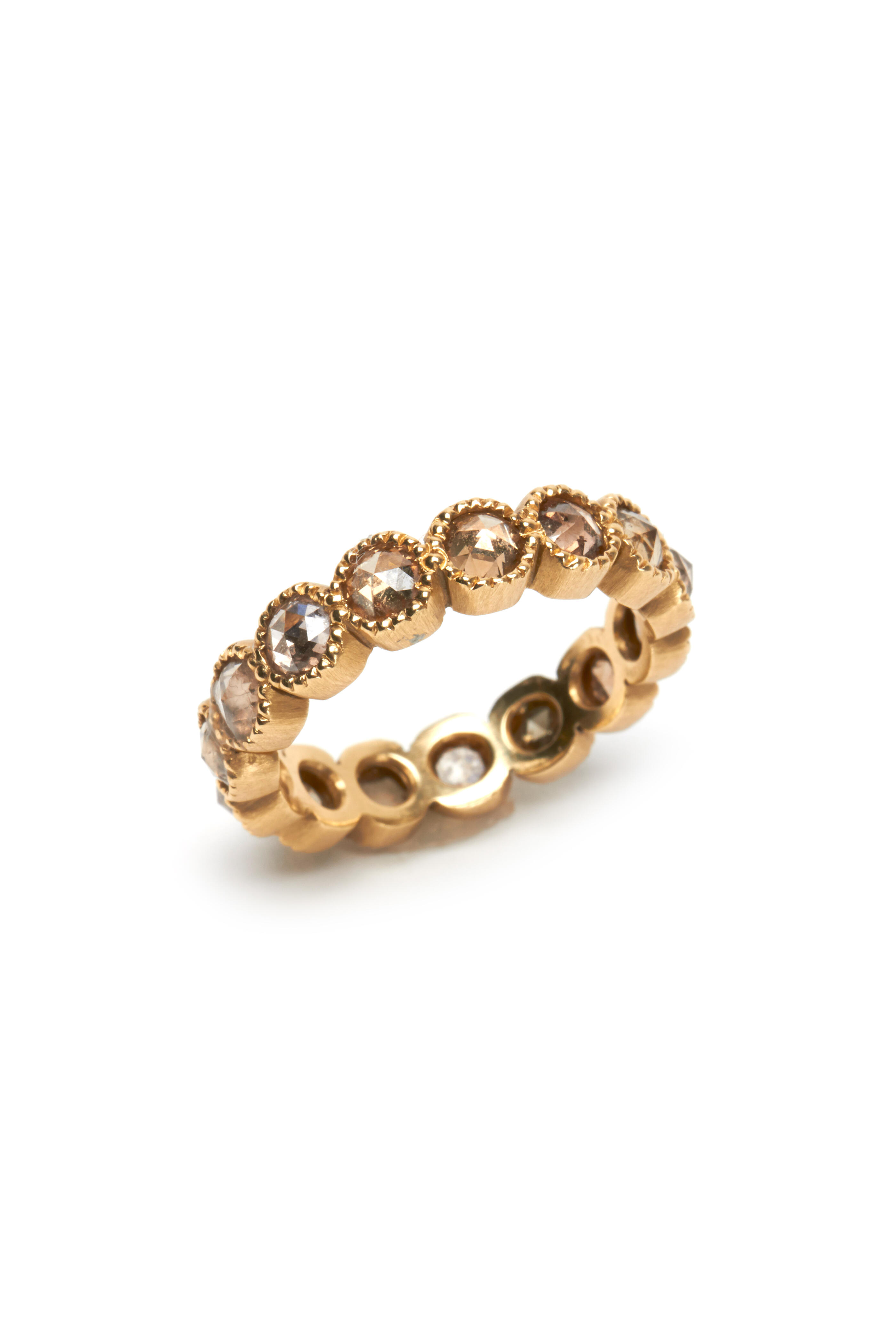 14K yellow gold. Rose cut champagne diamonds, 2.30 total carat weight. 3.5mm wide.