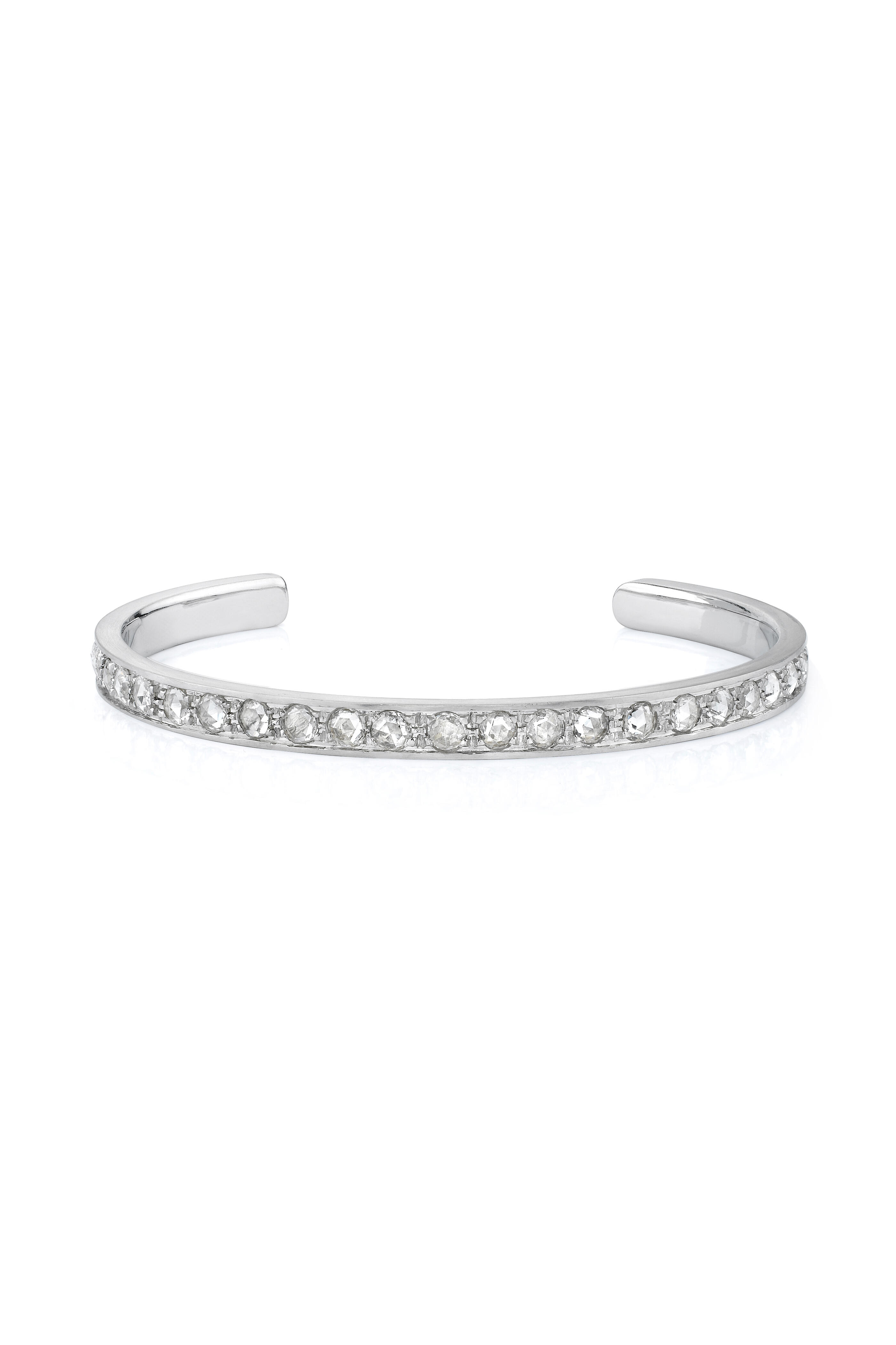 Dare to dazzle with this impeccable bracelet. It is fashioned from 18k white gold exhibiting 2.72ct of 3mm rose-cut white diamonds.