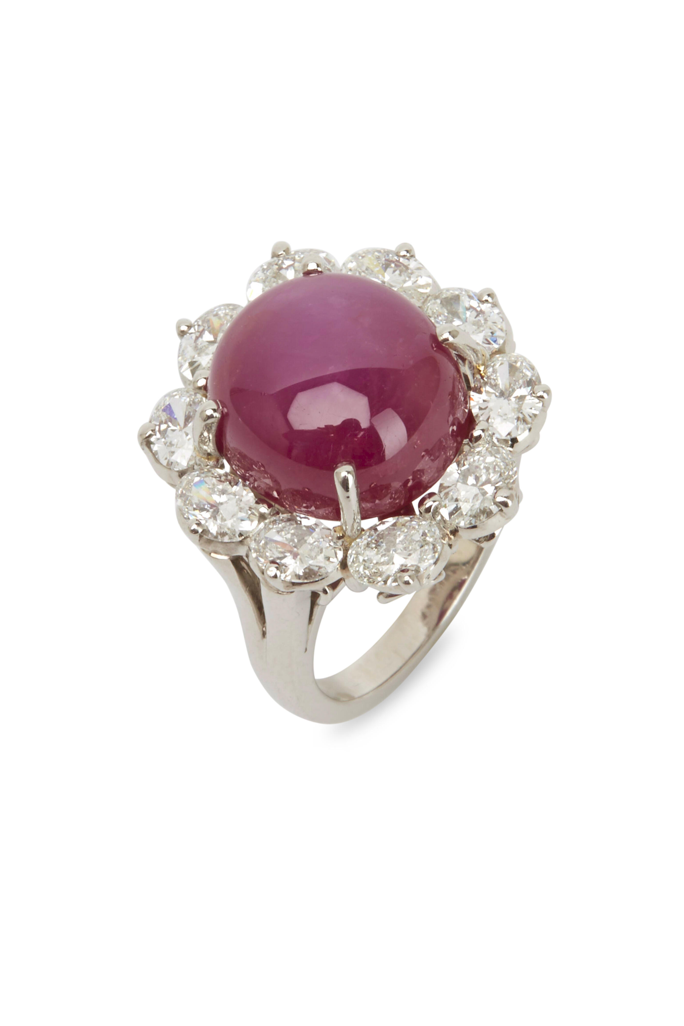 Platinum. 2.39cts white diamonds. 14.75ct ruby.