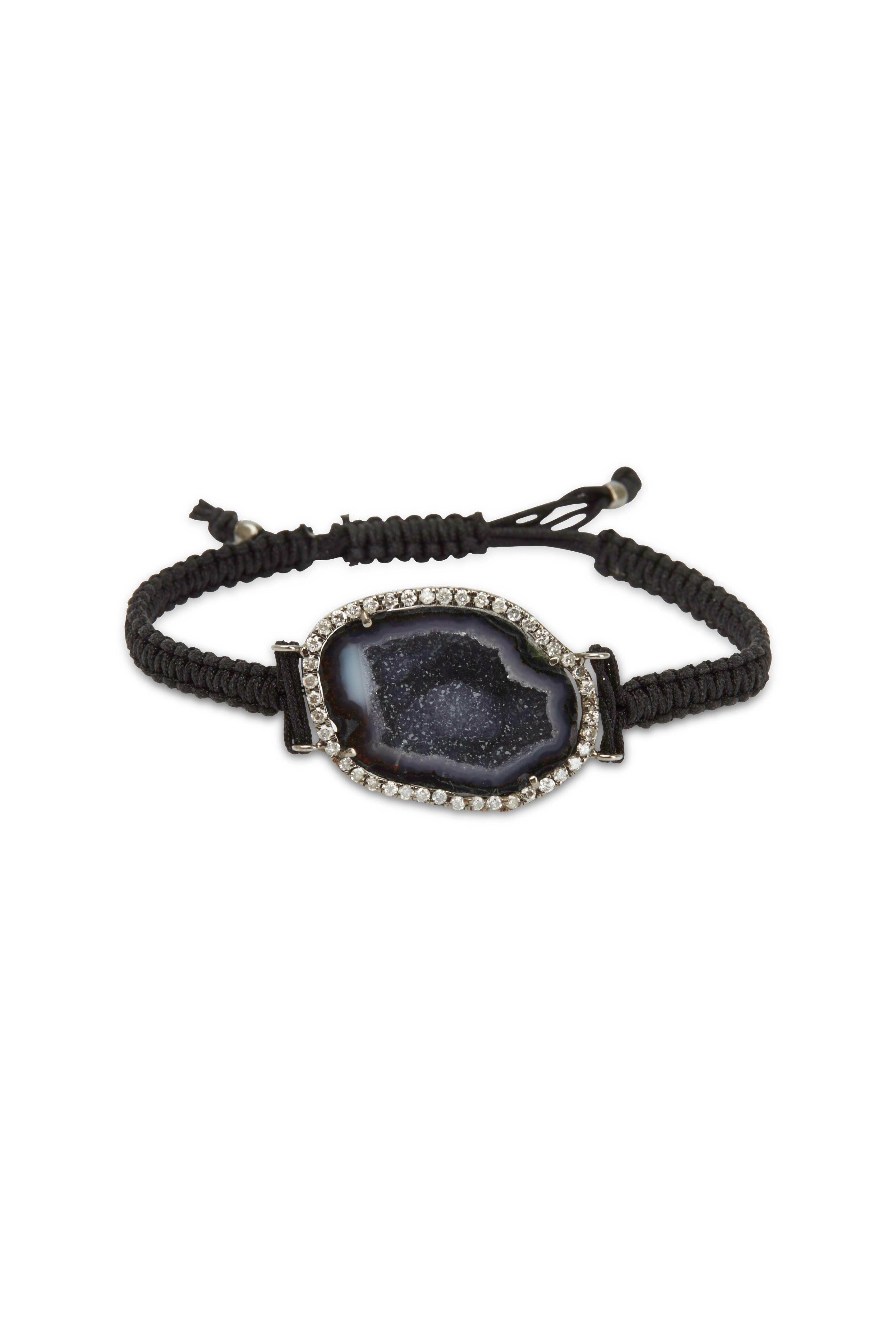 A dark dream, this gorgeous bracelet is a romantic choice. The beautiful black geode shimmers with the iridescence of the night sky. Haloed by sparkling white diamonds, this design is truly exquisite.