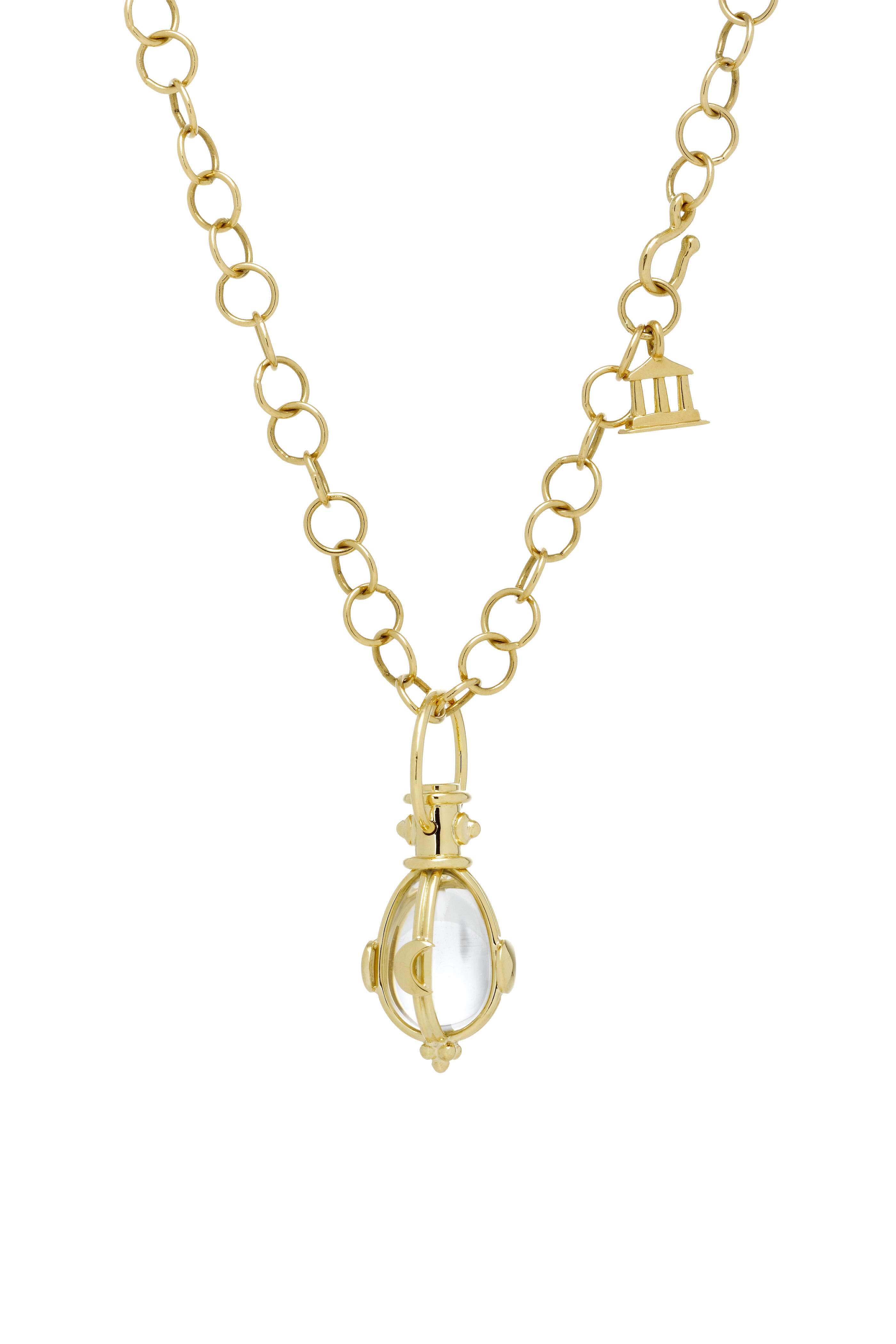 18k yellow gold. 16mm x 11mm rock crystal gemstone.