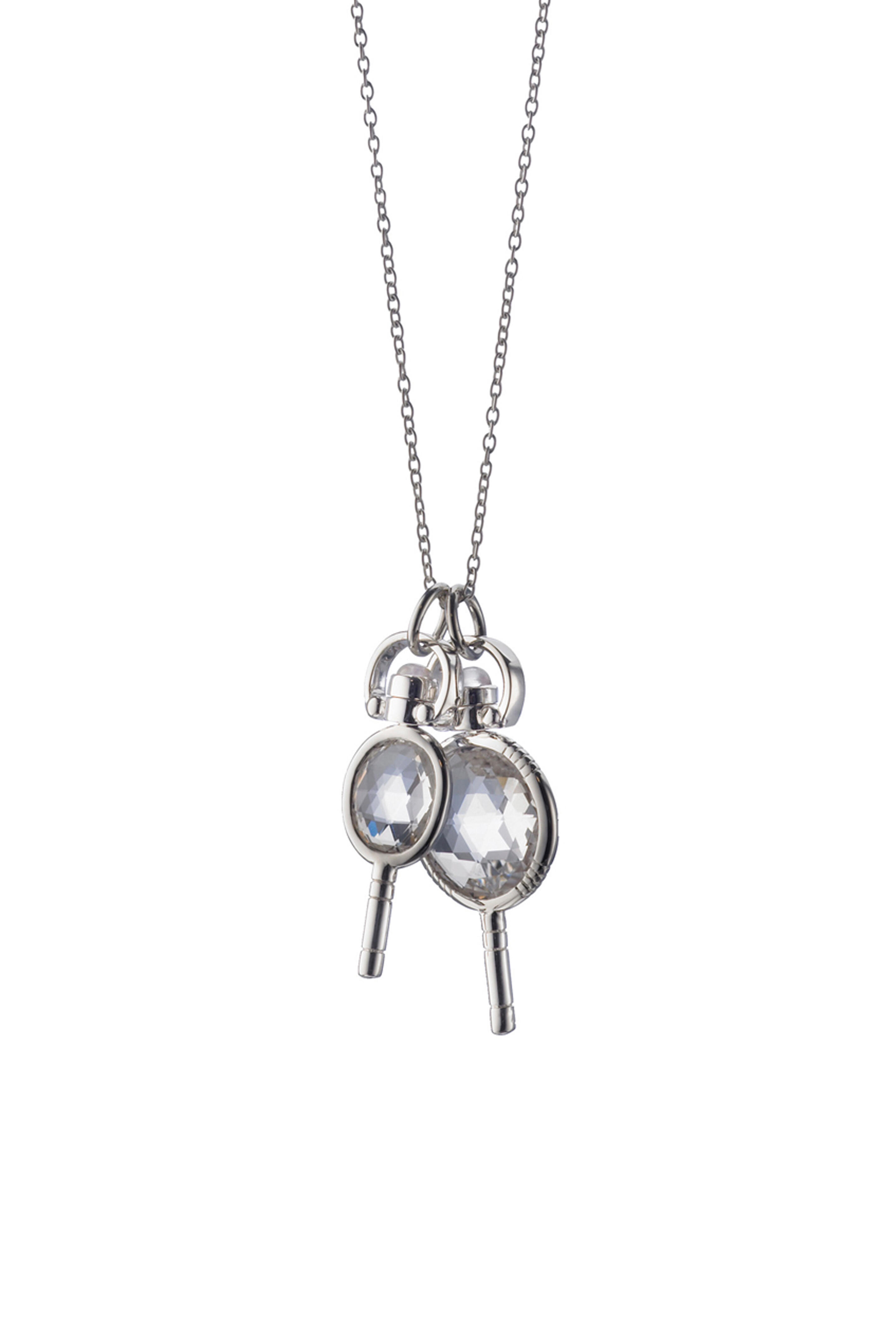Sterling silver. Rock crystals. Pocketwatch key design. 30" length.