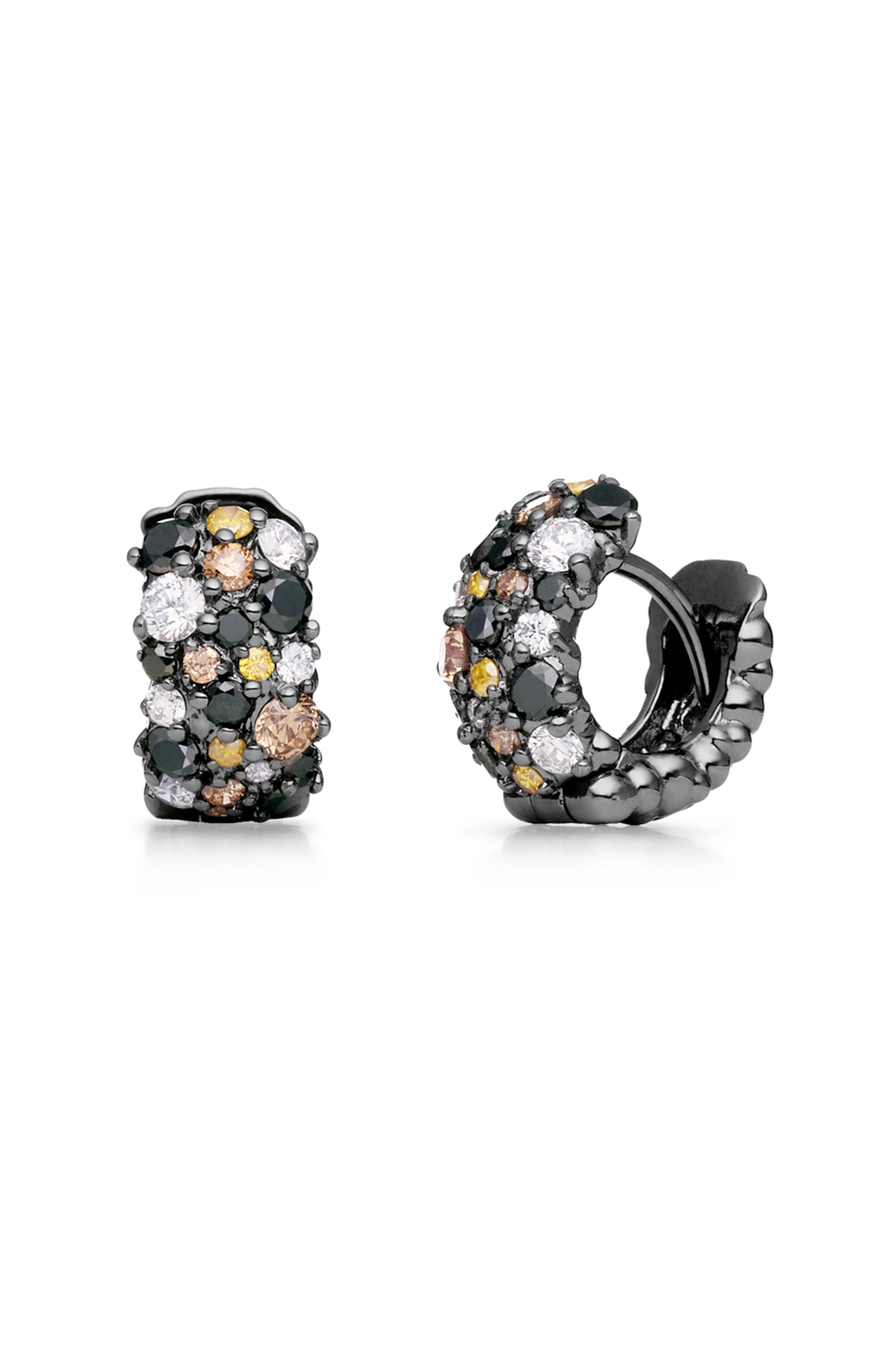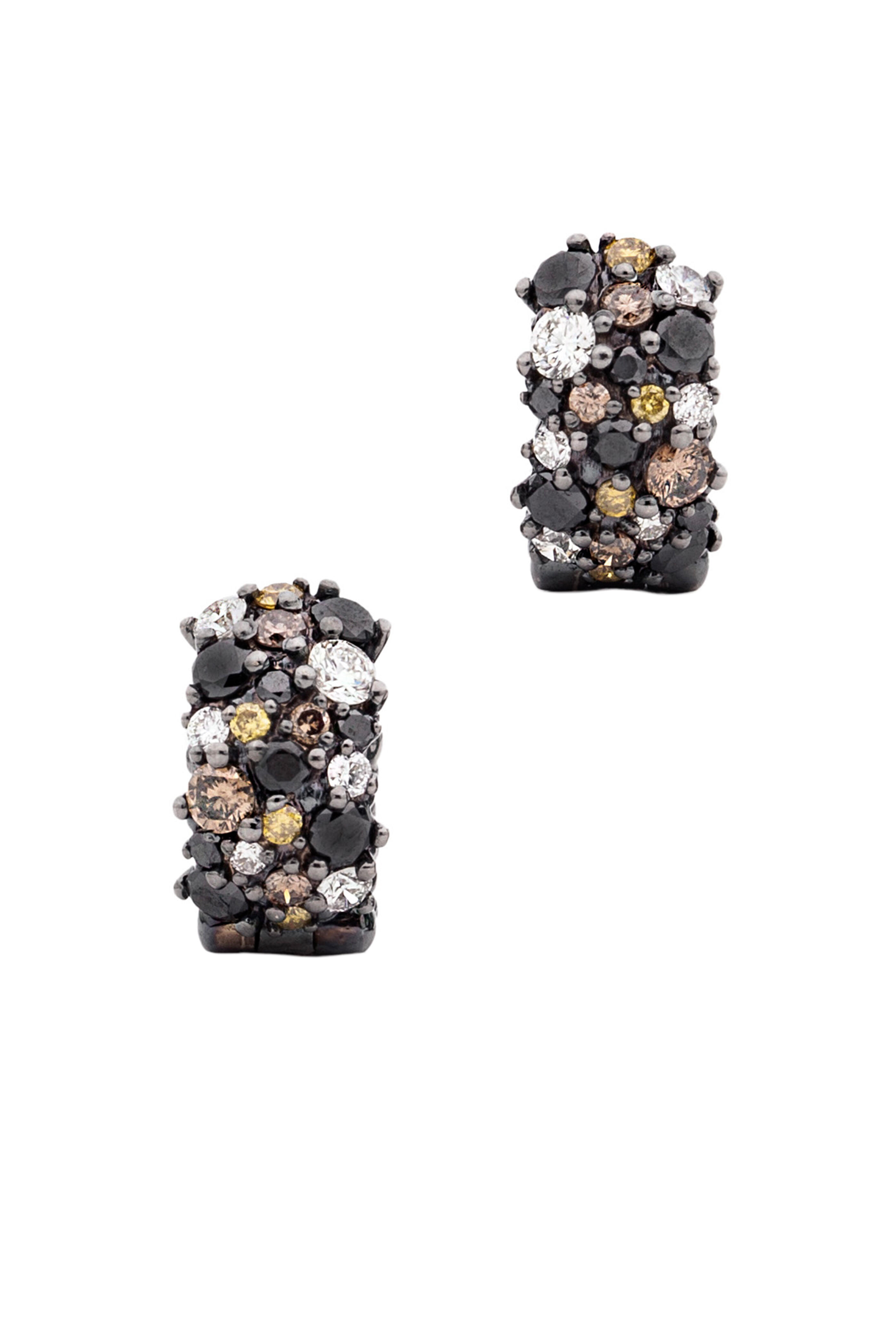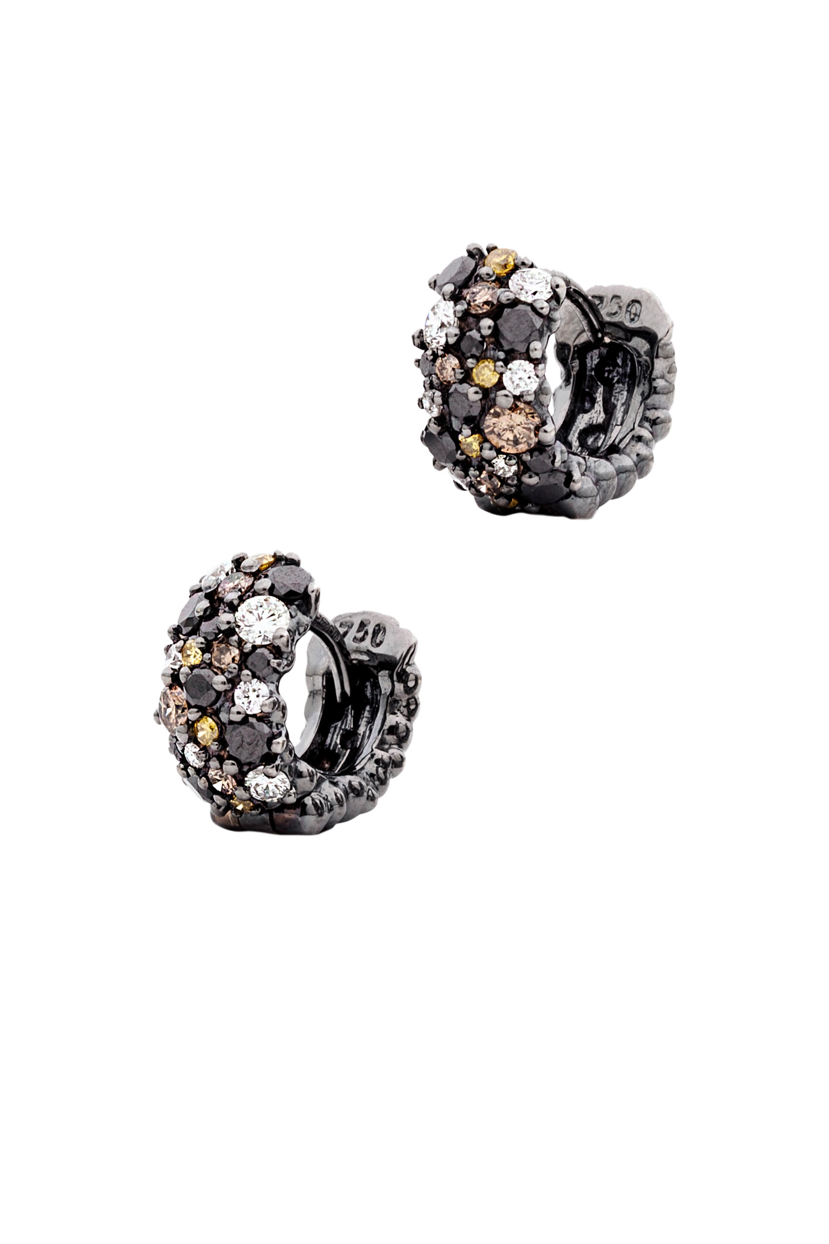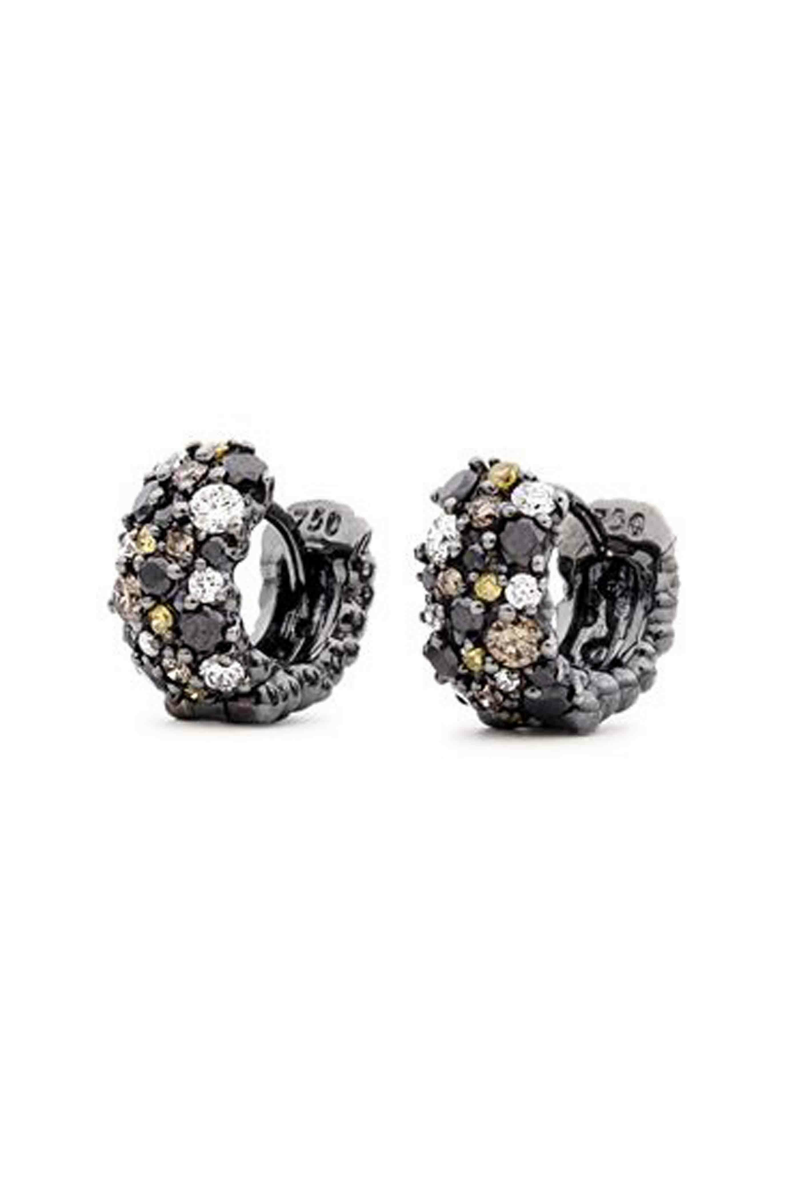 These rustic, eye-catching earrings are crafted from 18k white gold and feature black and white diamonds.