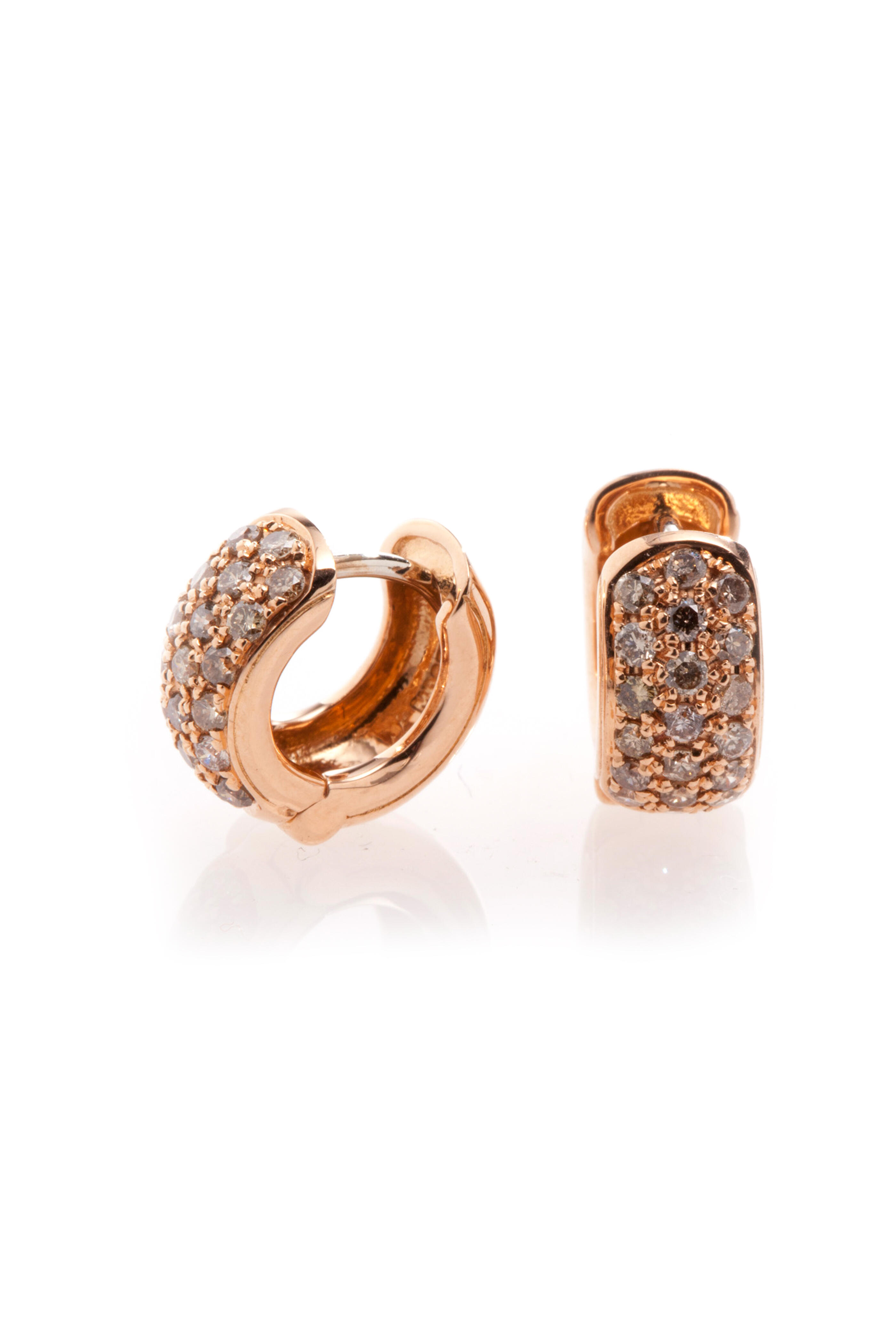 20k pink gold. Cognac diamonds. Huggie earrings.