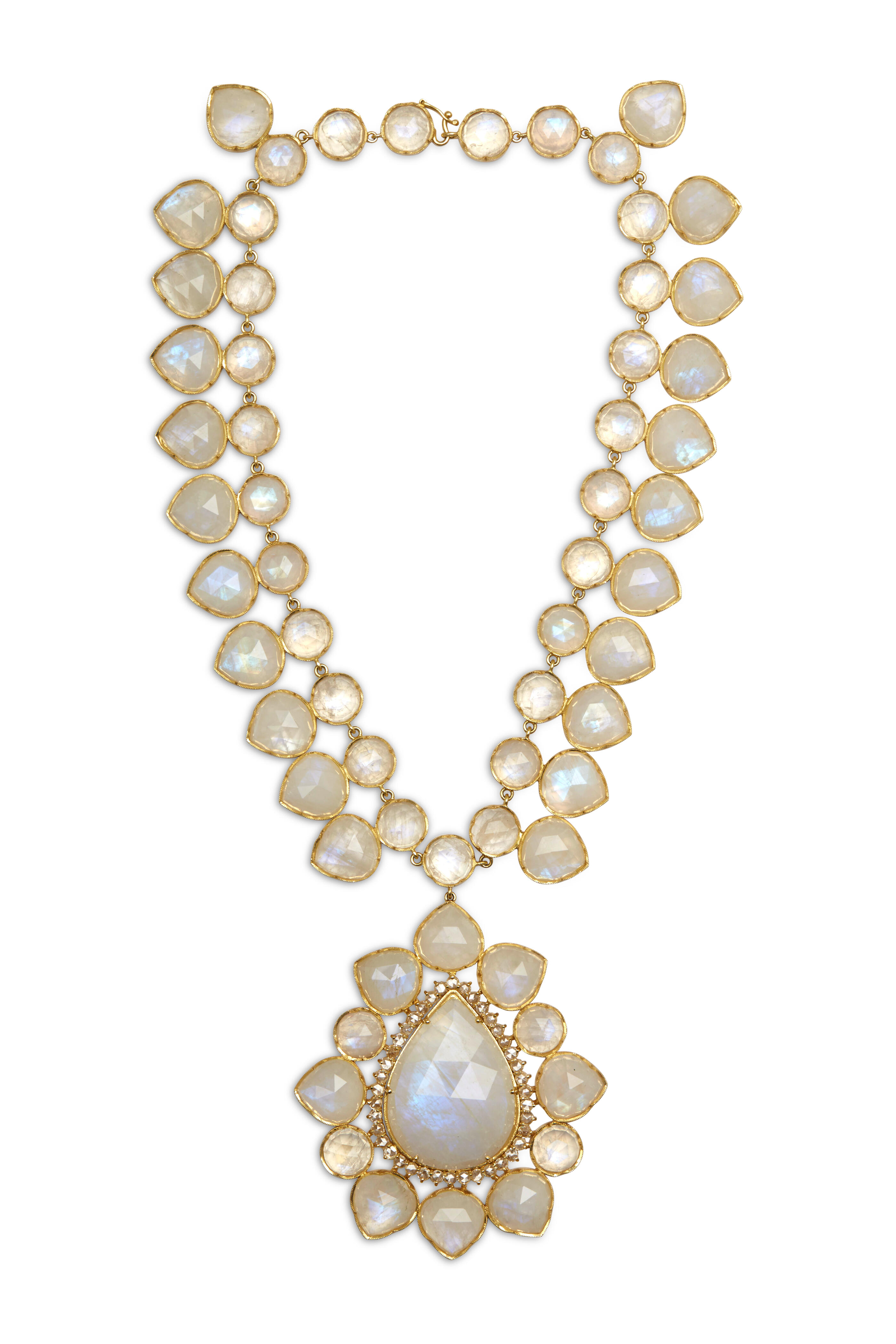 18k rose gold. Moonstone cabochons. 22" length.