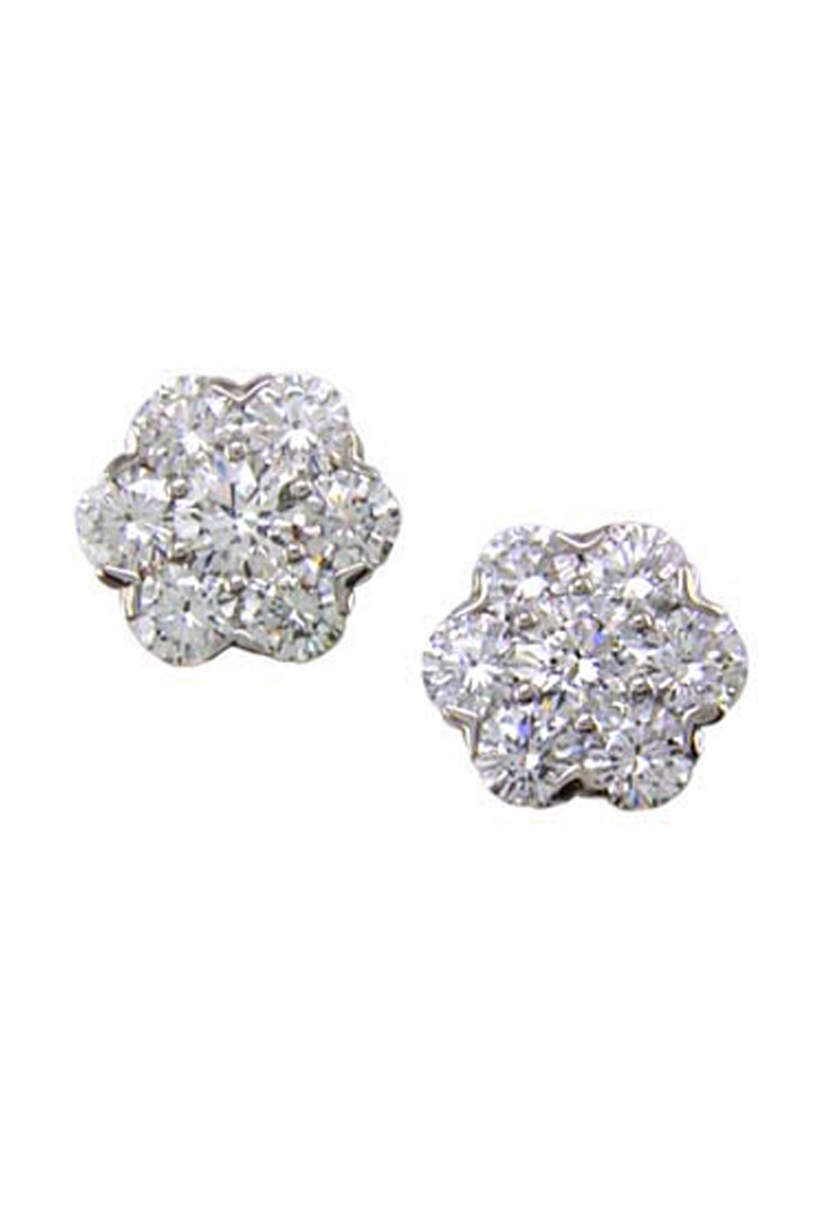 Platinum Diamond Cluster Stud Earrings