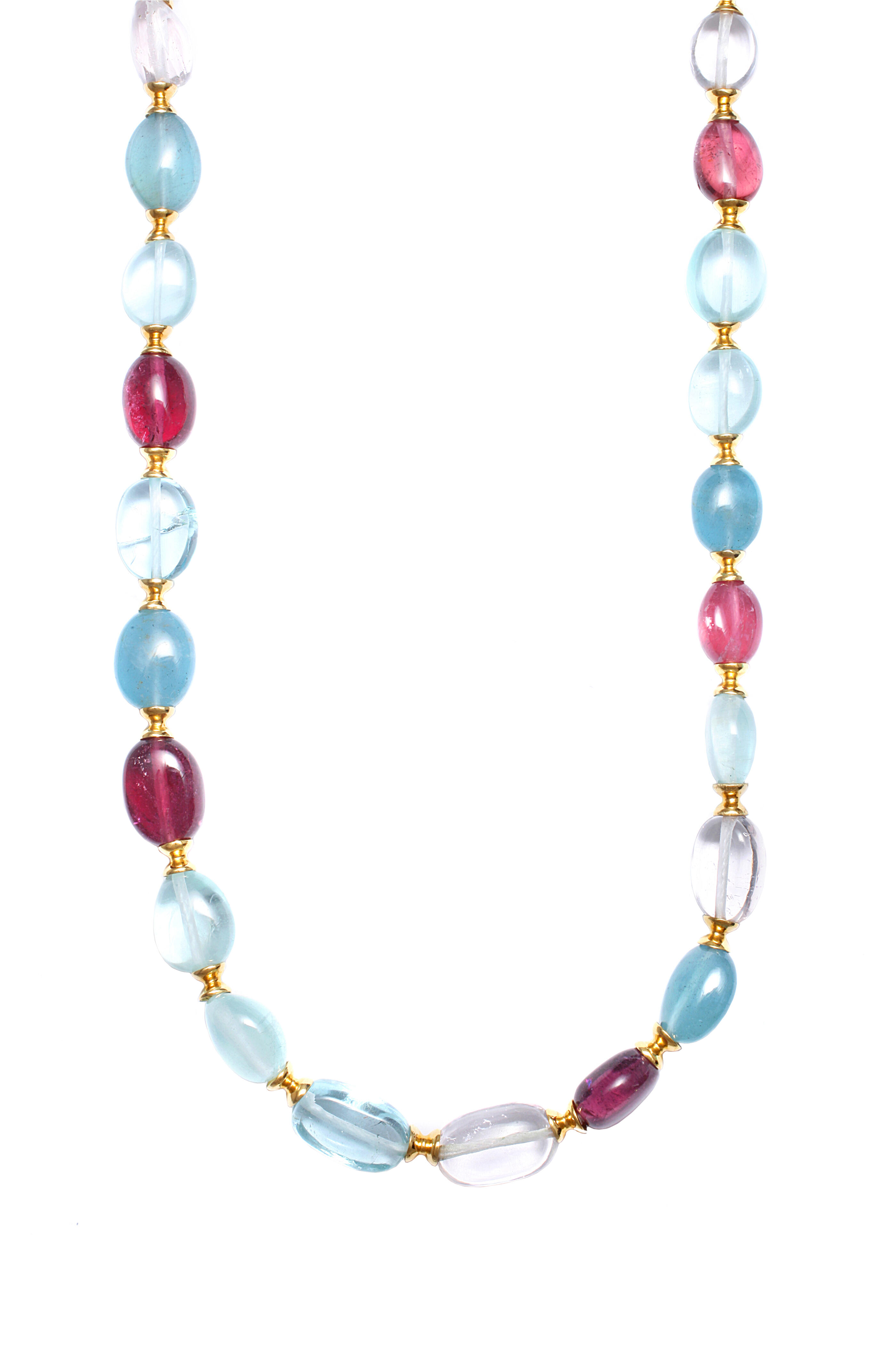 Yellow Gold Aqua & Pink Tourmaline Bead Necklace