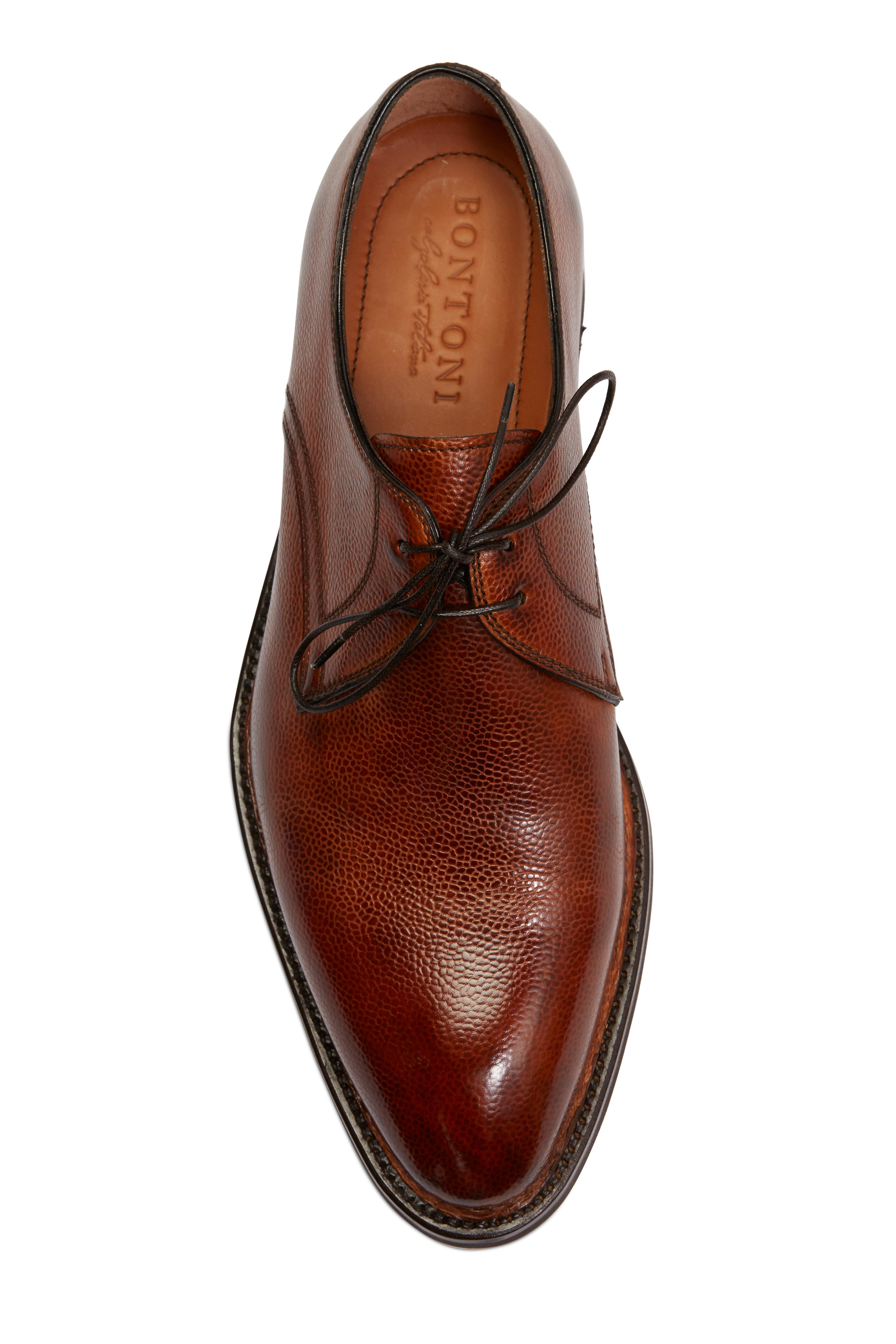 Grain leather upper. Pointed toe. Lace-up. Rubber sole. Handmade in Italy.