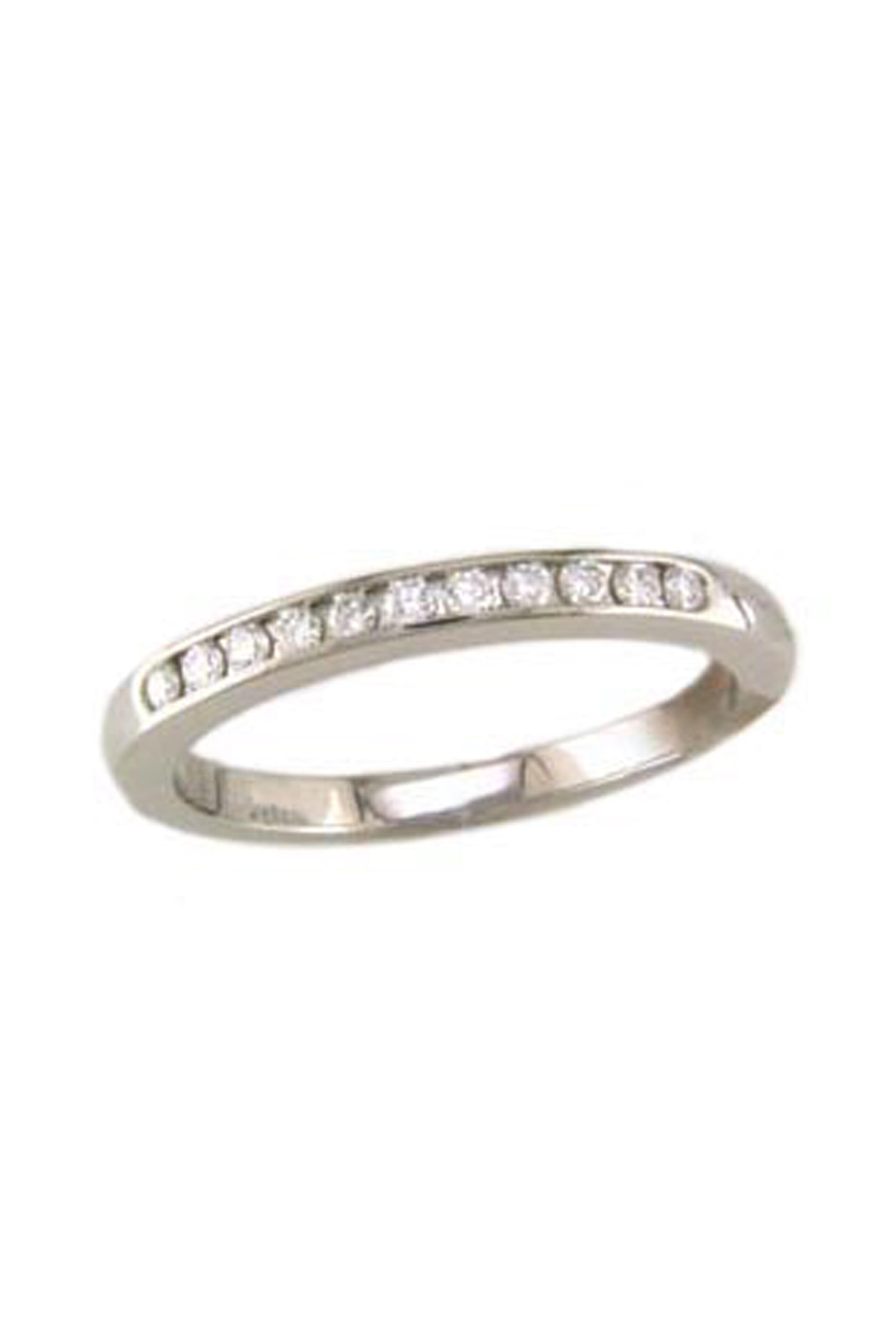 This beautiful ring is fashioned from platinum with 11 round-cut diamonds (.16ct). Size 6.5. Available to special order.