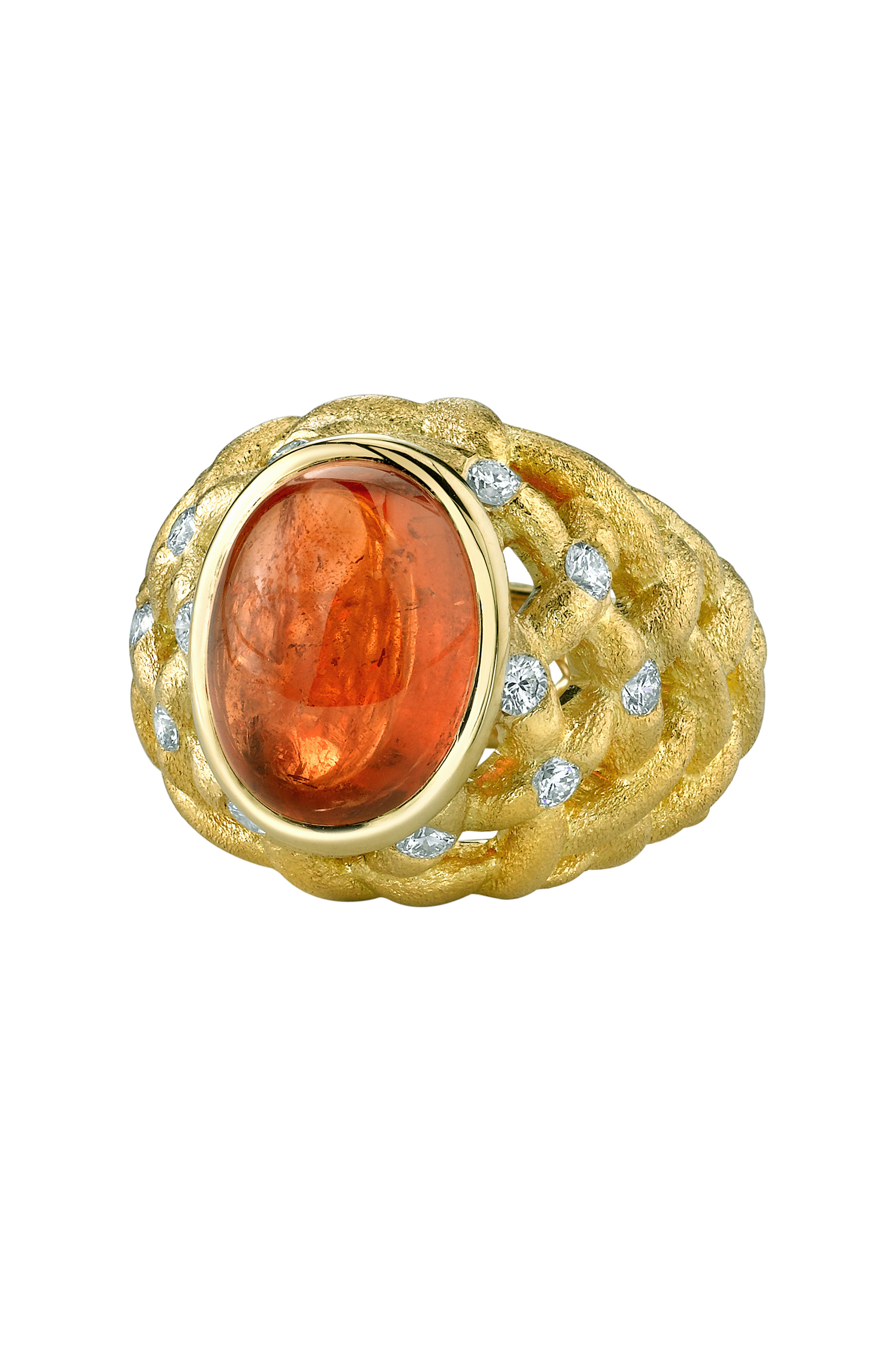 18k white gold. 8.96ct spressarite garnet. .48ct diamonds.