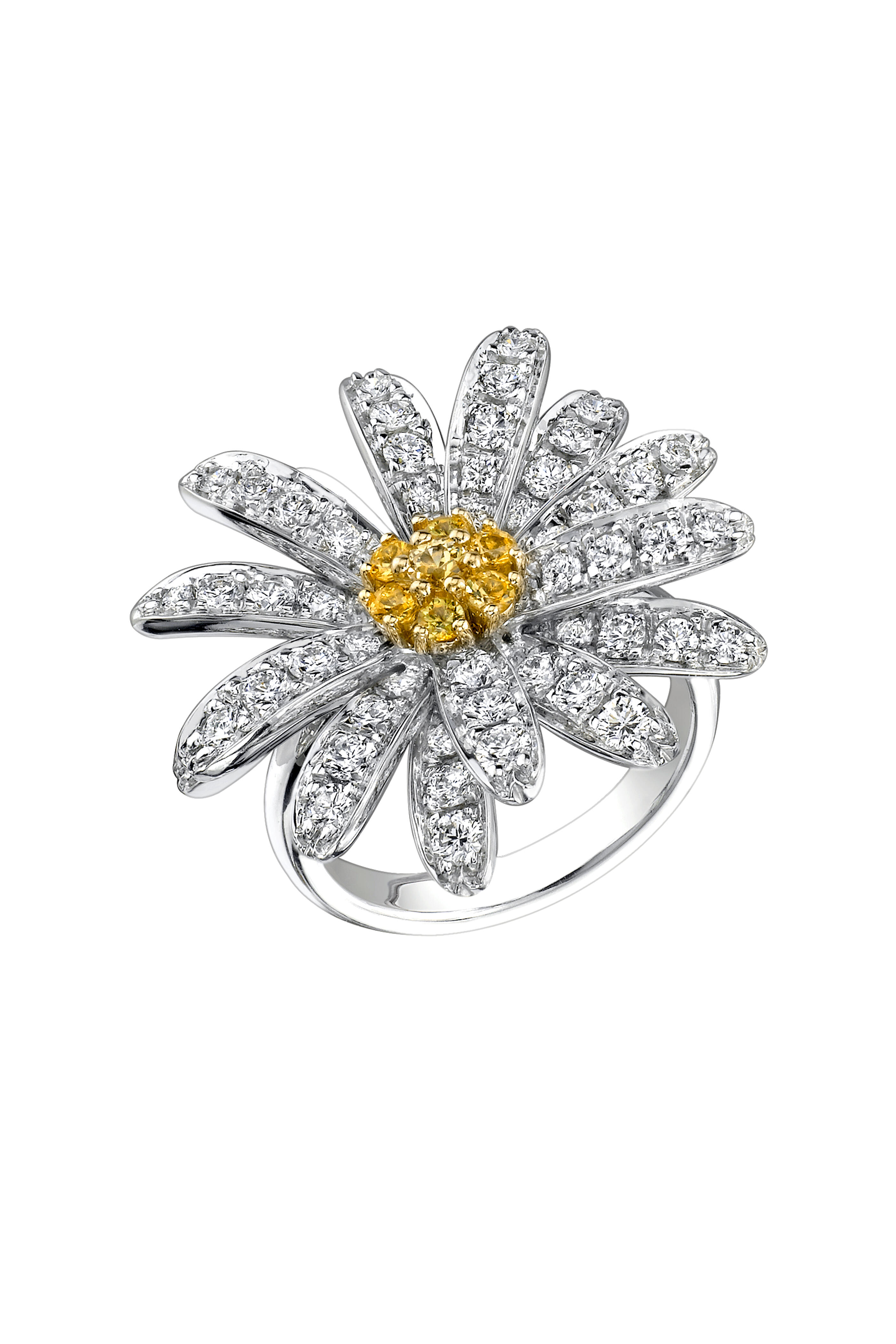 18k white gold. 1.80cts white diamonds. .35cts yellow sapphires.