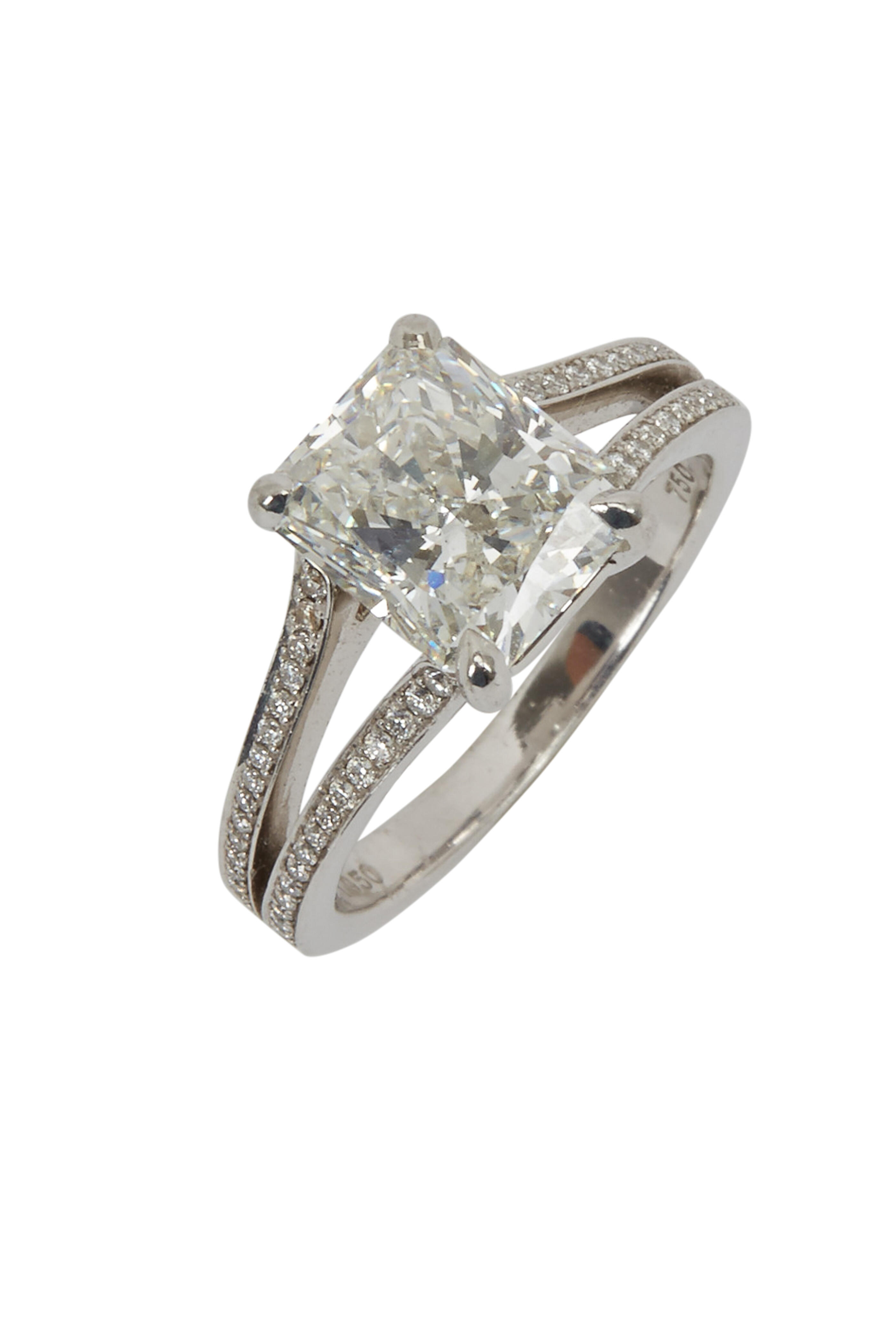 - 3.02cts color: F; clarity: VS2; GIA-certified, radiant-cut white diamonds