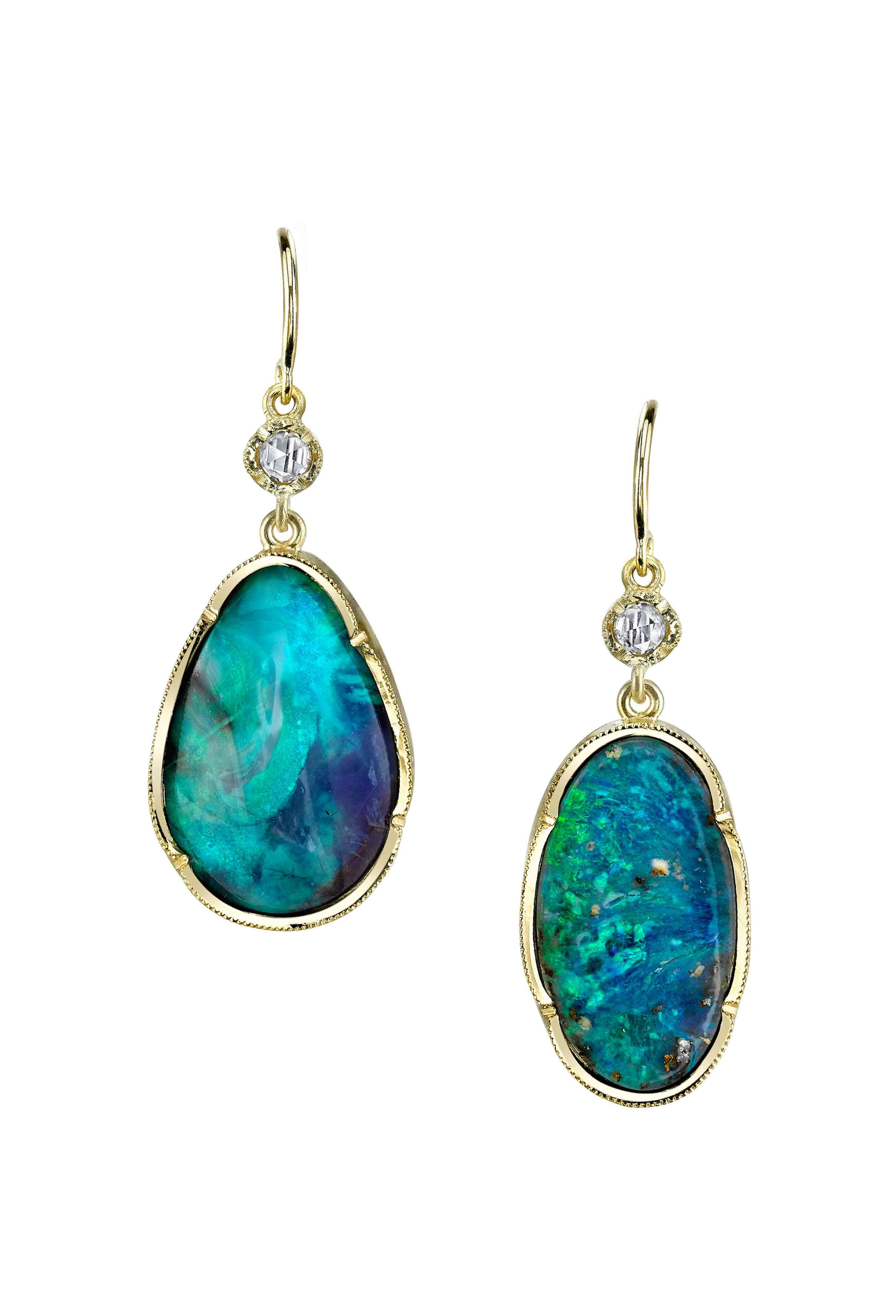 Gold Opal Diamond One-Of-A-Kind Dangle Earrings