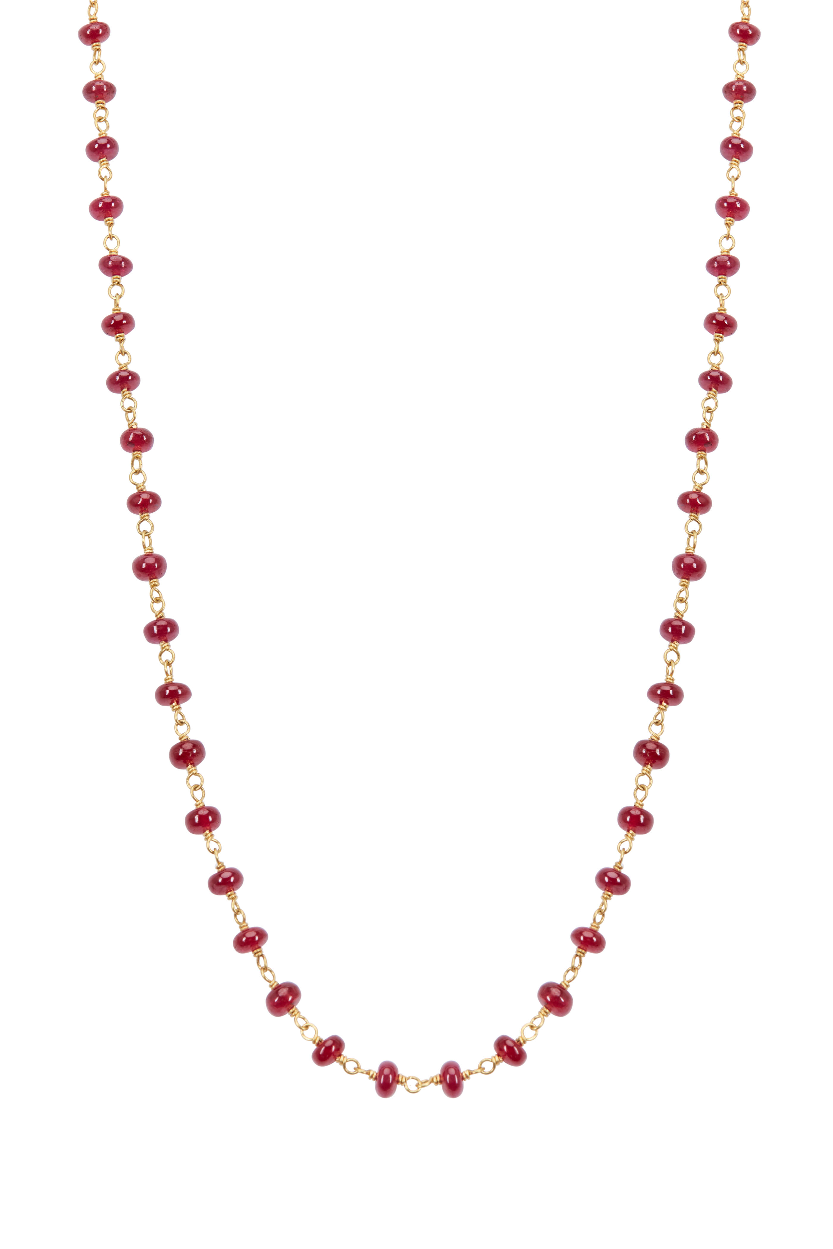 Yellow gold. Red ruby gemstones. Wrap necklace.