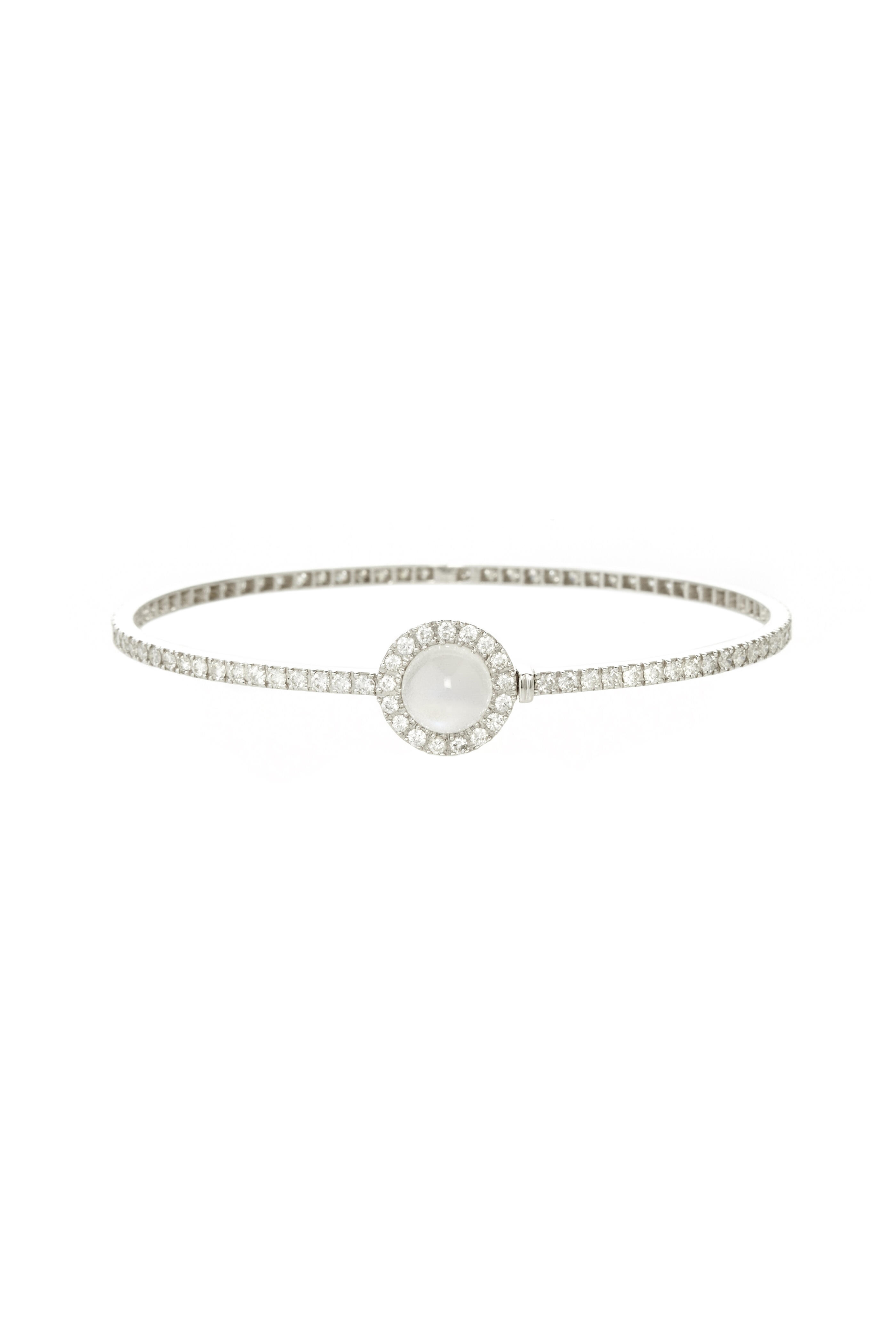 18K white gold. Moonstone 2.50 total carat weight. White diamonds 2.40 total carat weight.