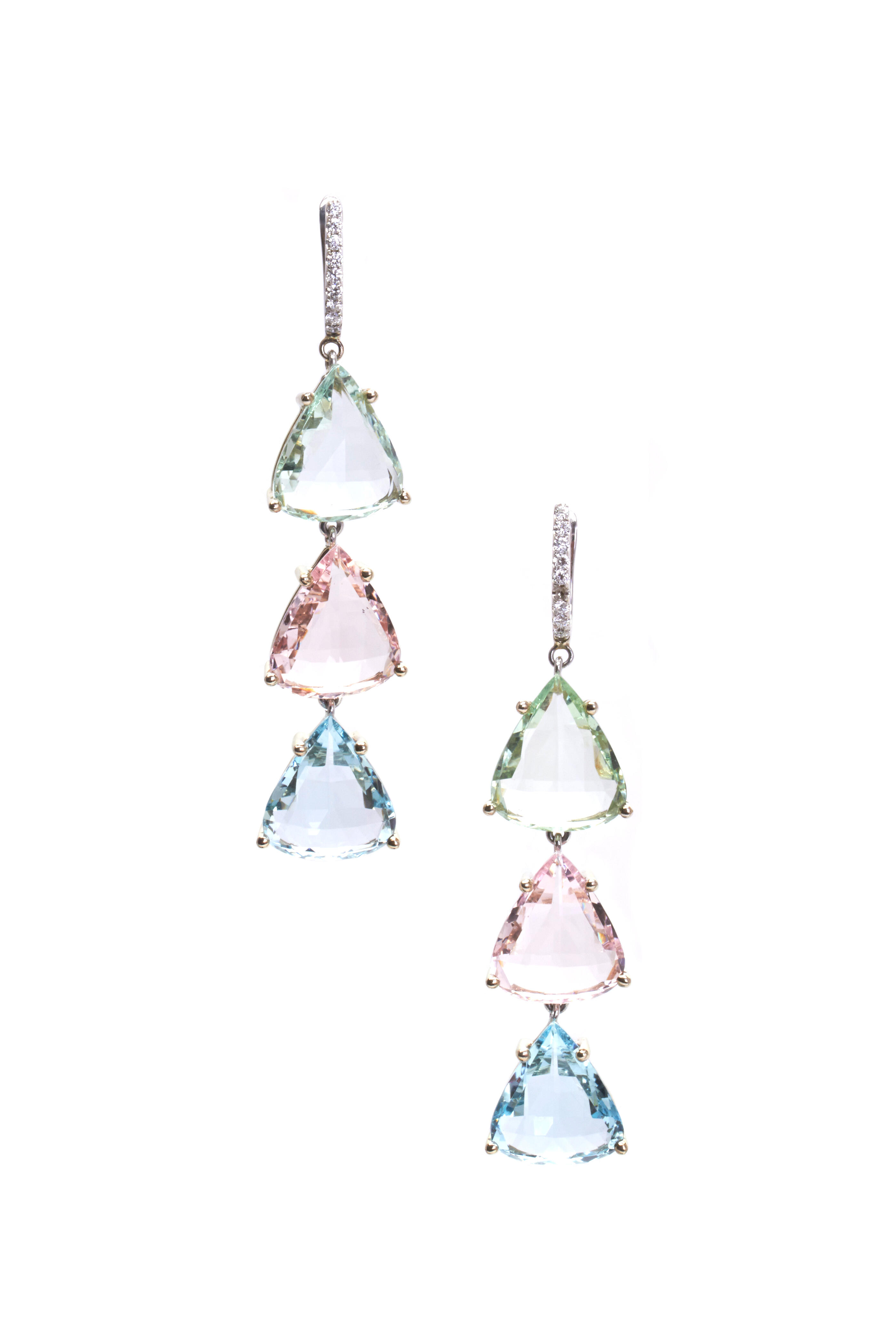 Aqua, Morganite & Green Beryl Diamond Earrings