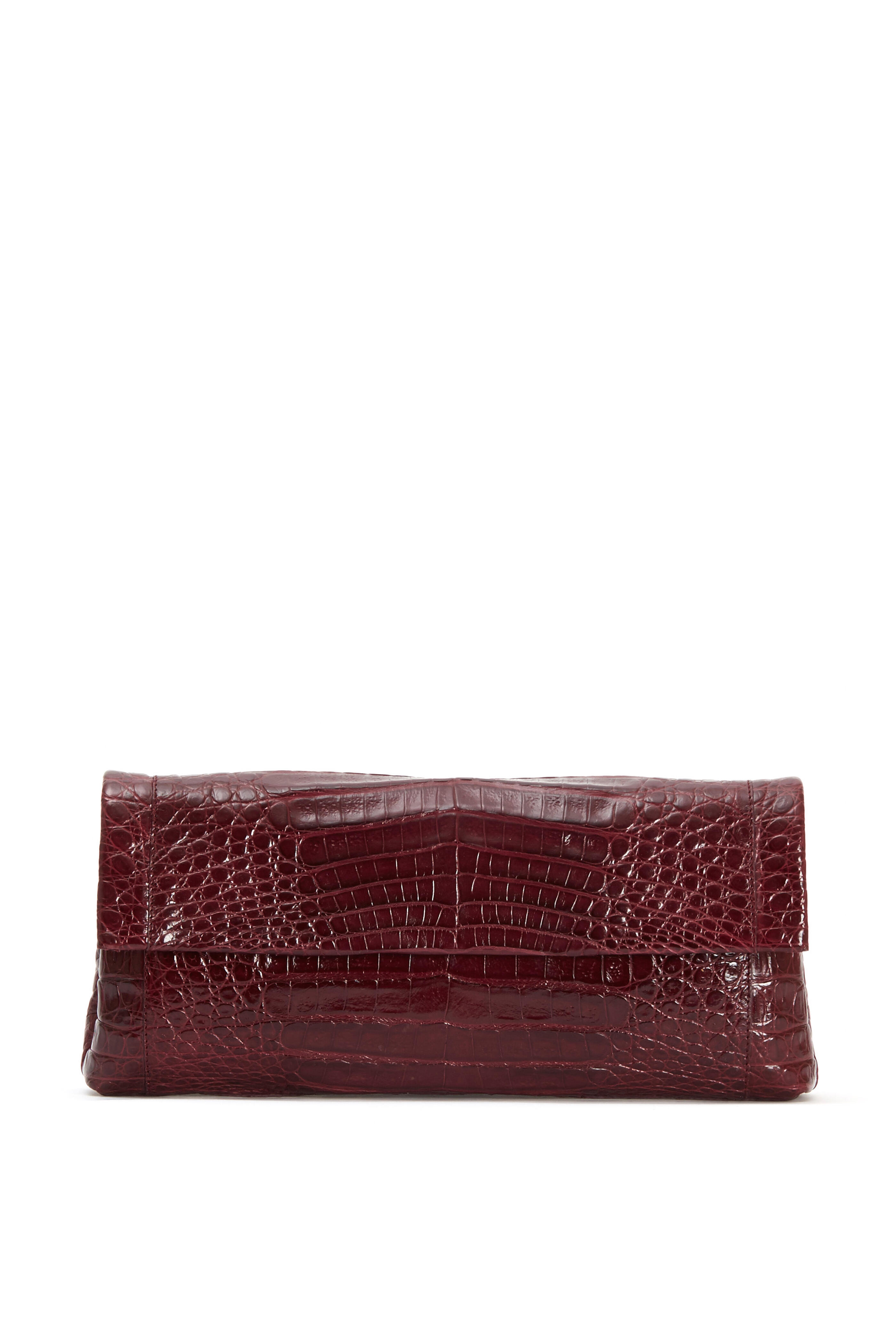 Burgundy Crocodile Front Flap Clutch