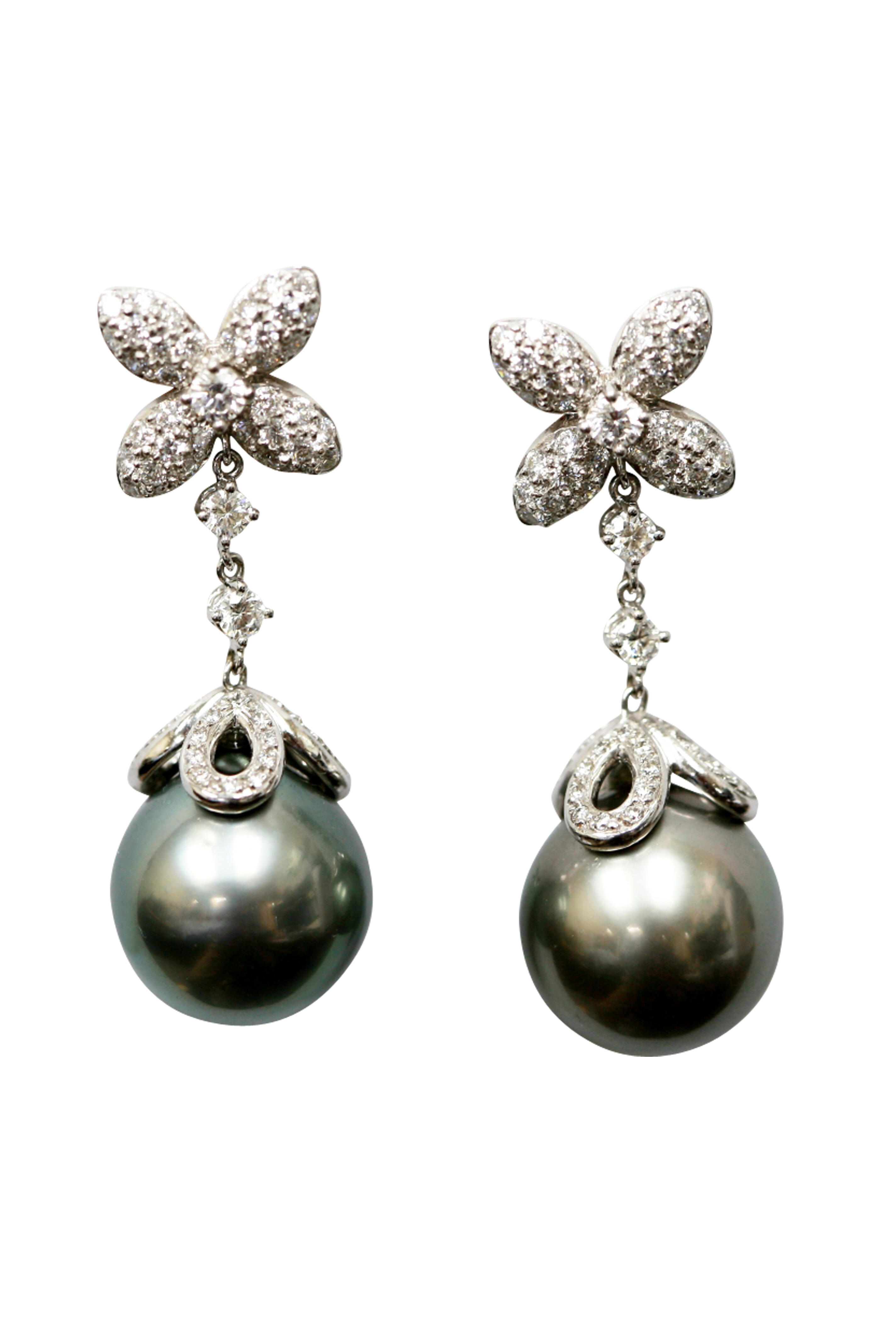 Exude elegance with these 15.2-13.4MM sterling silver pearl drop earrings, made with 138 diamonds (2.15CT).